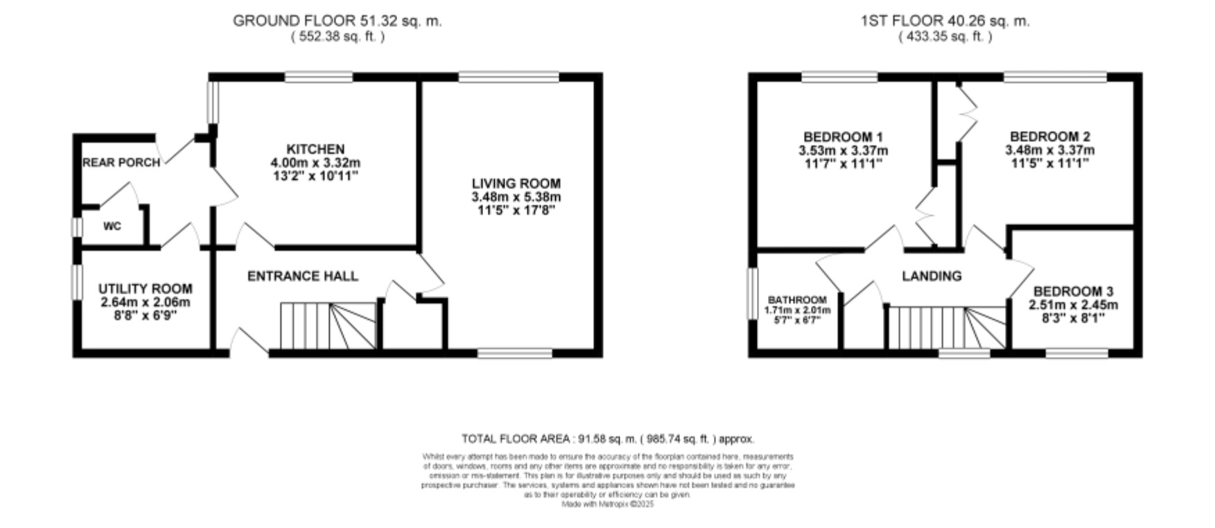 Step inside to the welcoming entrance hall, where a charming wooden staircase sets the tempo for the rest of the home. The spacious living room takes centre stage, complete with a feature open fireplace, large light-loving windows and neutral décor, perfect for setting a cosy, family-friendly rhythm. The kitchen is a true headline act, showcasing sleek modern units, a colourful tiled splashback and integrated appliances. Original exposed brickwork and a rustic wooden beam add the perfect touch of vintage vinyl vibes. A rear porch, cloakroom and utility room link seamlessly from the kitchen, keeping daily life in tune and offering easy access to the garden.
