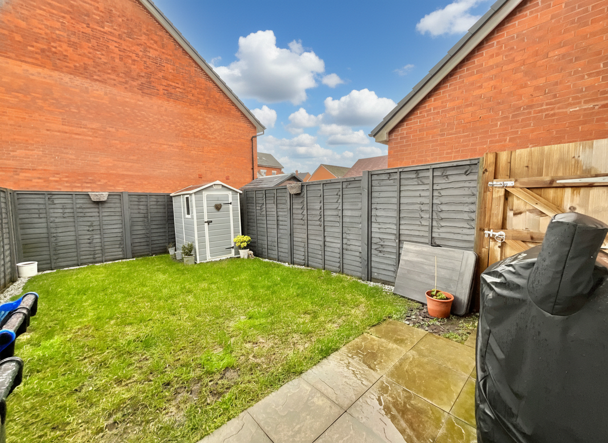 - Outdoor Arena & Parking – A fully fenced rear garden with lawn and paved area for summer barbecues, plus two side by side parking spaces, like having prime supporter parking right at the stadium.