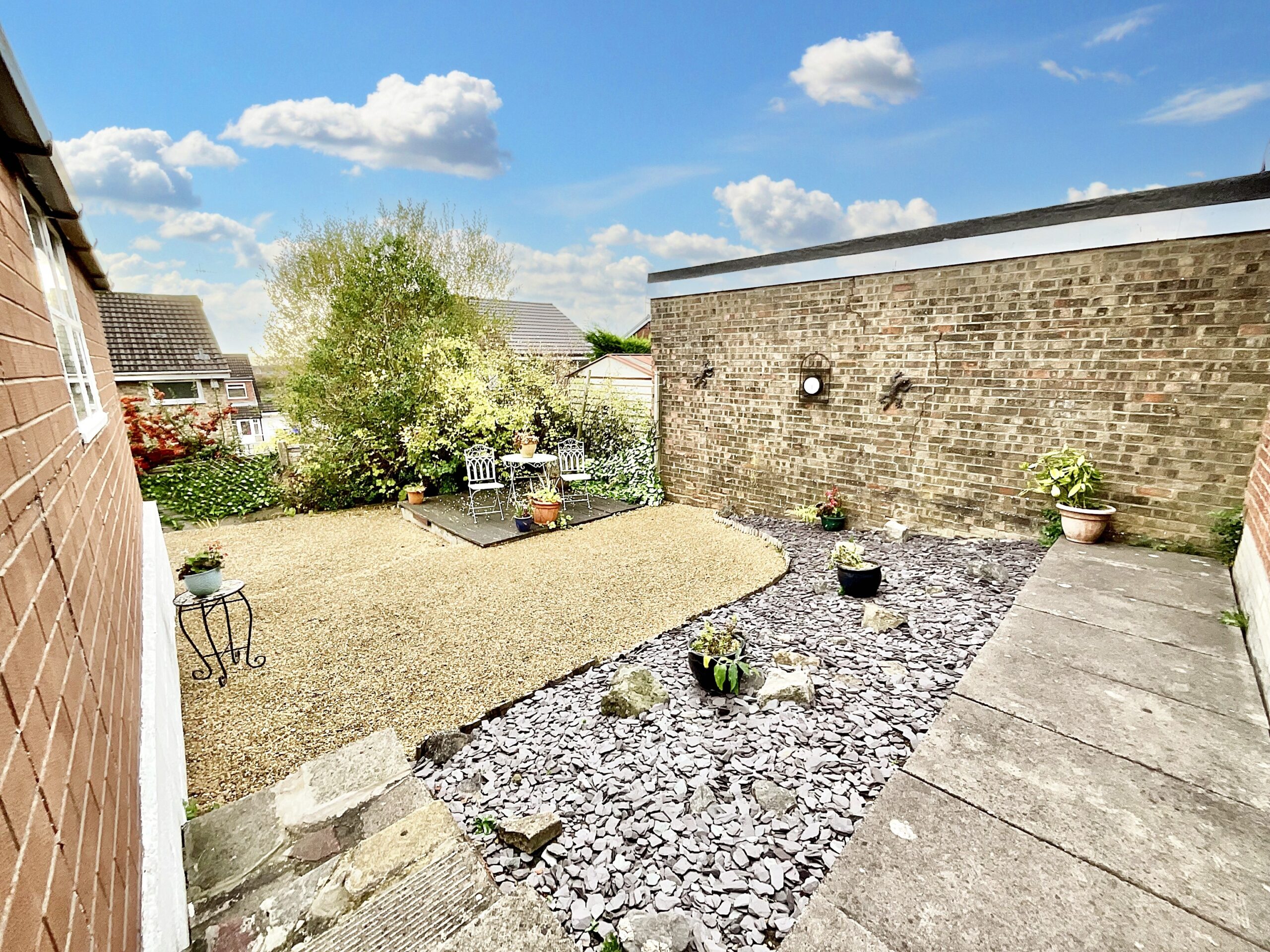 This charming bungalow, tucked away in a peaceful cul-de-sac, stands proudly above the rest, offering spectacular views from the spacious living room that overlook the lush front lawn and tree-lined horizon. It’s your own private retreat. Step inside and to your immediate left lies the heart of the home: a bright, modern kitchen. Featuring sleek white cabinetry topped with black worktops, it creates a striking monochrome aesthetic. With ample space for all your appliances, it’s the perfect place to whip up a feast fit for a king. After a long day, unwind in the generous living room—flooded with natural light from the bay window and complete with an electric fire surround that adds warmth and a cozy ambiance. This beautifully designed bungalow offers three bedrooms in total, two spacious doubles and a well-sized single, ideal for a guest room, nursery, home office, or dressing room. The family bathroom is well-appointed with a practical bath and shower combination. Step outside to the rear and discover a low-maintenance garden laid with gravel and slate, perfect for setting up outdoor furniture and enjoying your favourite brew in the afternoon sun. At the front, a lush green lawn framed by mature shrubs creates a peaceful sanctuary of greenery. Parking is no issue, thanks to a tandem driveway and a garage with room for an additional car, ideal for those chilly mornings when you’d rather not scrape the windscreen. Location-wise, you’re just moments from the stunning Park Hall Country Park, a haven for nature lovers. And just a fifteen-minute drive takes you to Stoke-on-Trent, where you’ll find everything from supermarkets and shops to restaurants, bars, and great transport links including easy access to the A50. So, if you're ready to trade traffic for tranquillity, stairs for single-storey serenity, and neighbours for nature, this might just be your happily ever bungalow. Don’t just dream it… key it.