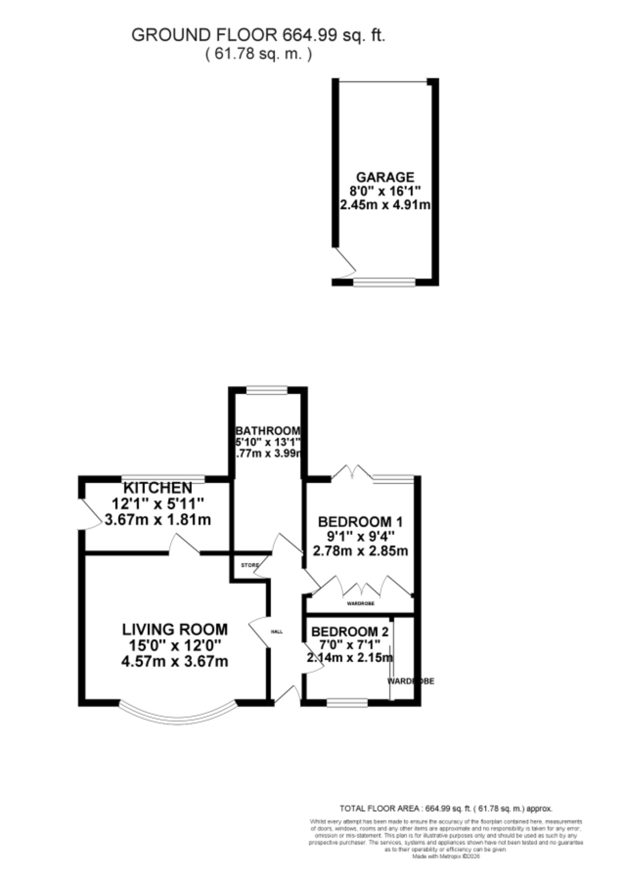 - South-facing rear garden, handy garage for storage or parking. Front lawn with paved pathway and driveway providing off-street parking for convenience.
