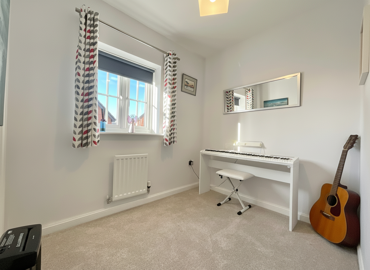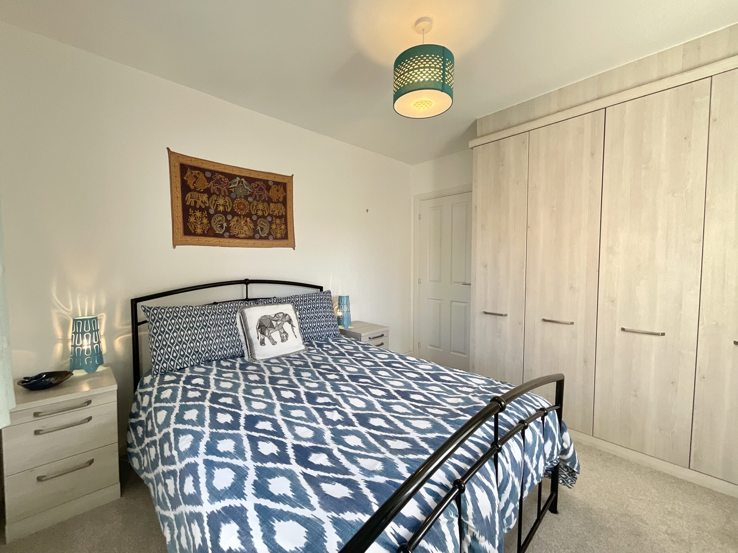 The second bedroom is another bright double room, equipped with its own set of built-in wardrobes and dual-aspect windows that allow natural light to flood the space. Bedroom three is similarly sized and also includes built-in wardrobes, easily accommodating a double bed. Bedroom four is a smaller, versatile room currently used as a hobby space, but it would also make an ideal guest room, home office, or nursery.