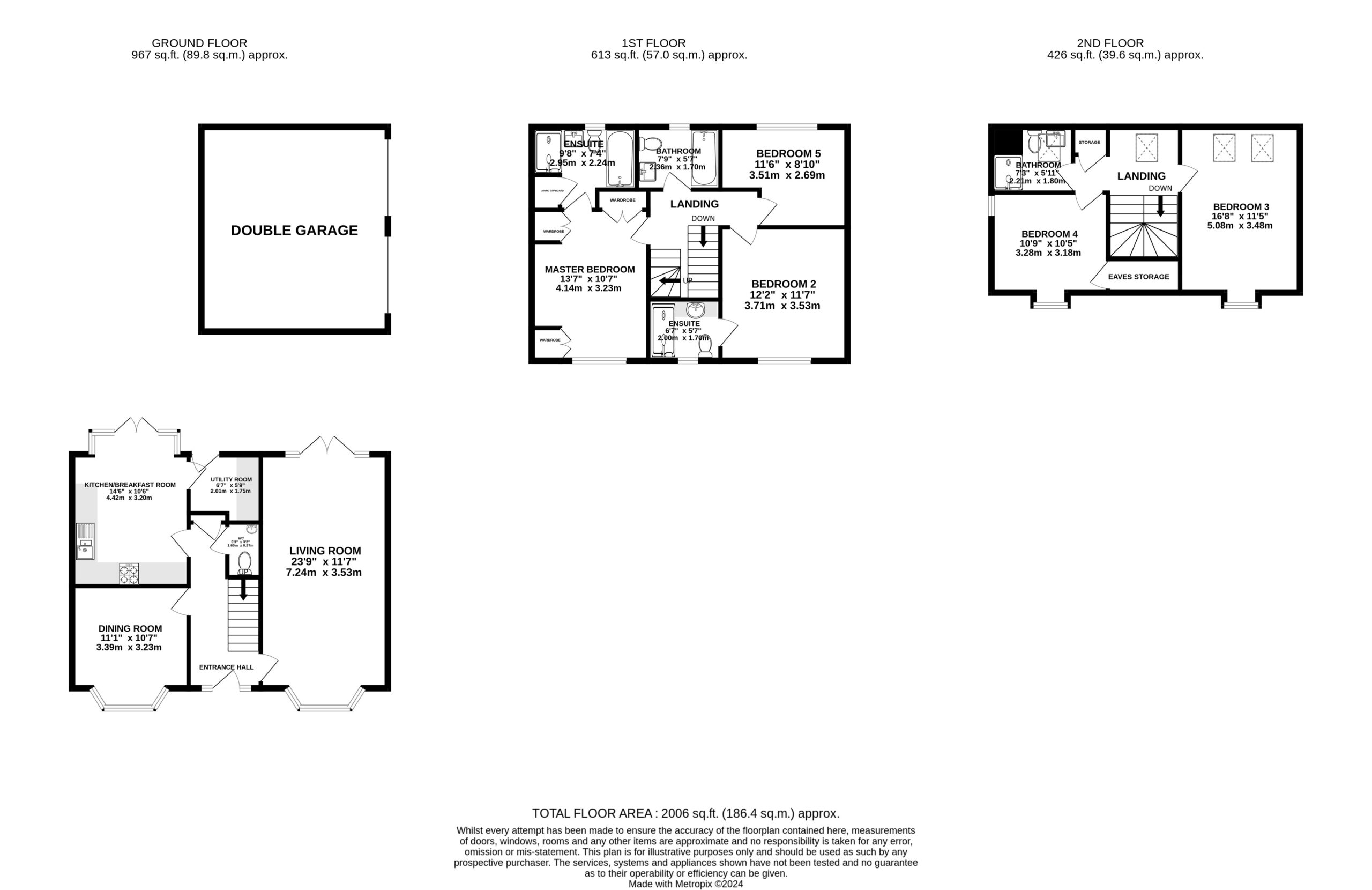 Ascend the stairs to the first floor, where three generously proportioned double bedrooms await, each exuding an air of relaxation and comfort. The master and second bedrooms boast luxurious en-suite facilities, while the main family bathroom offers a haven of indulgence. The master bedroom is a sanctuary of elegance, complete with a lavish four-piece suite bathroom and three double fitted wardrobes that cater to the most discerning of tastes.