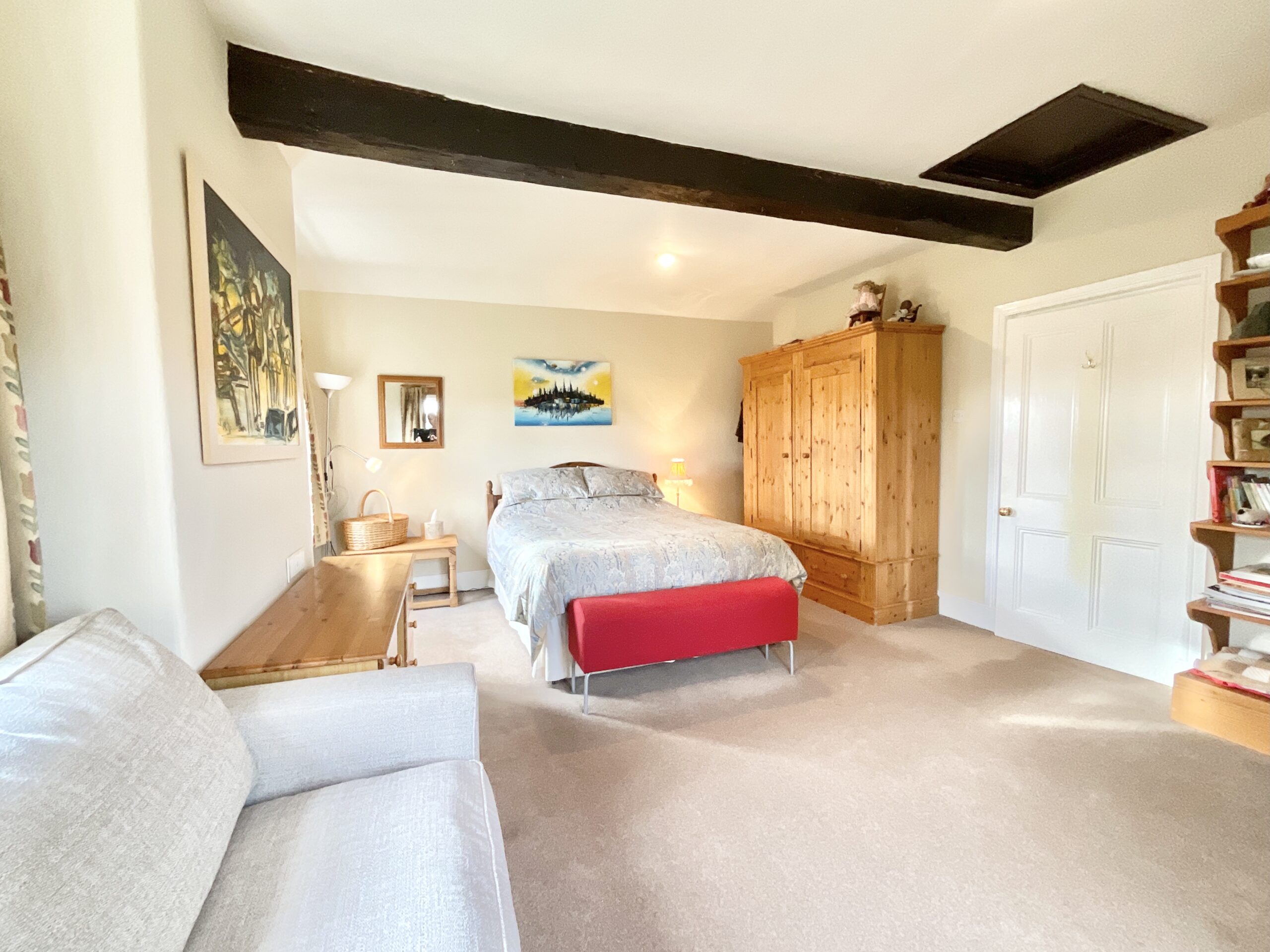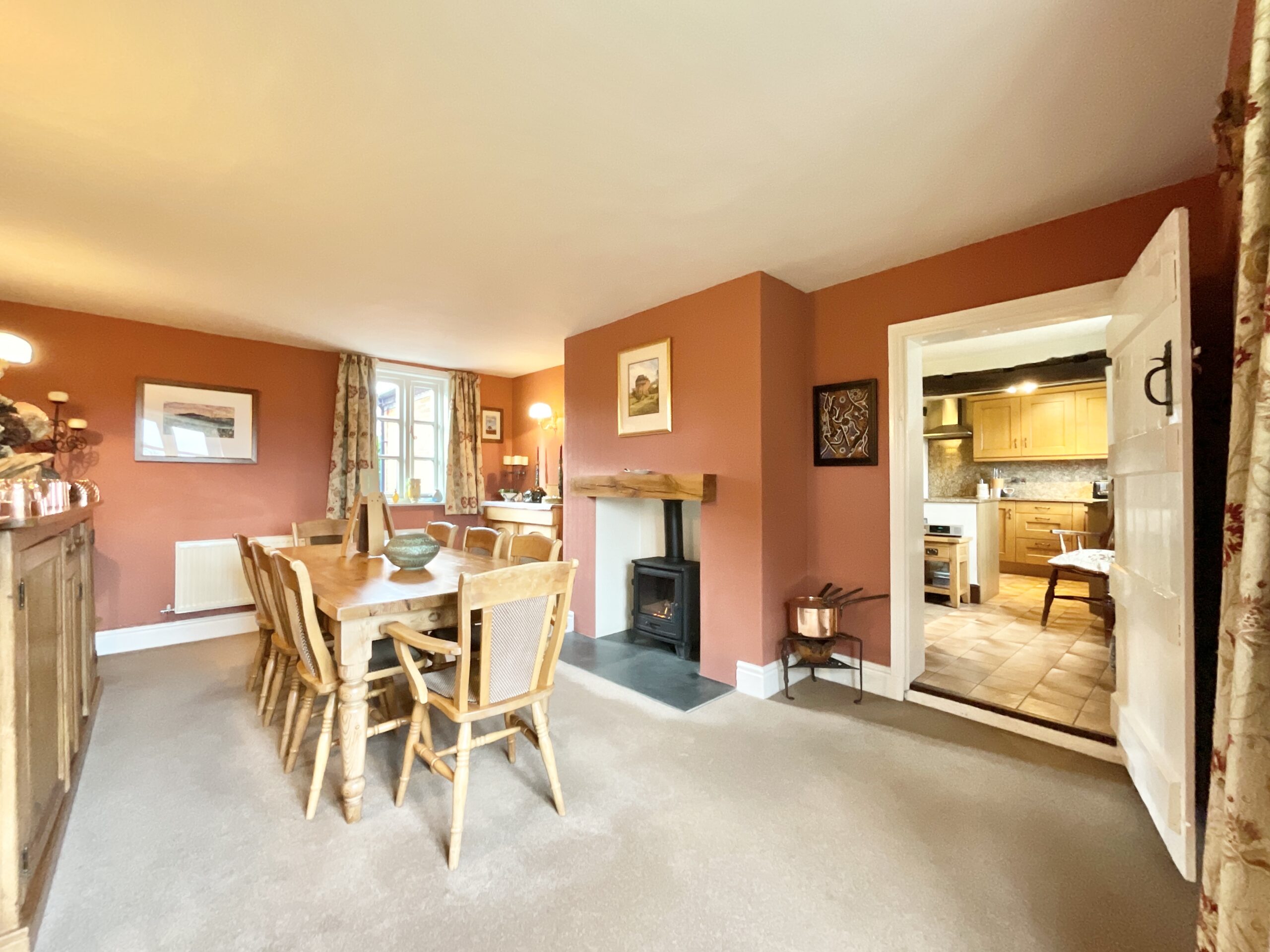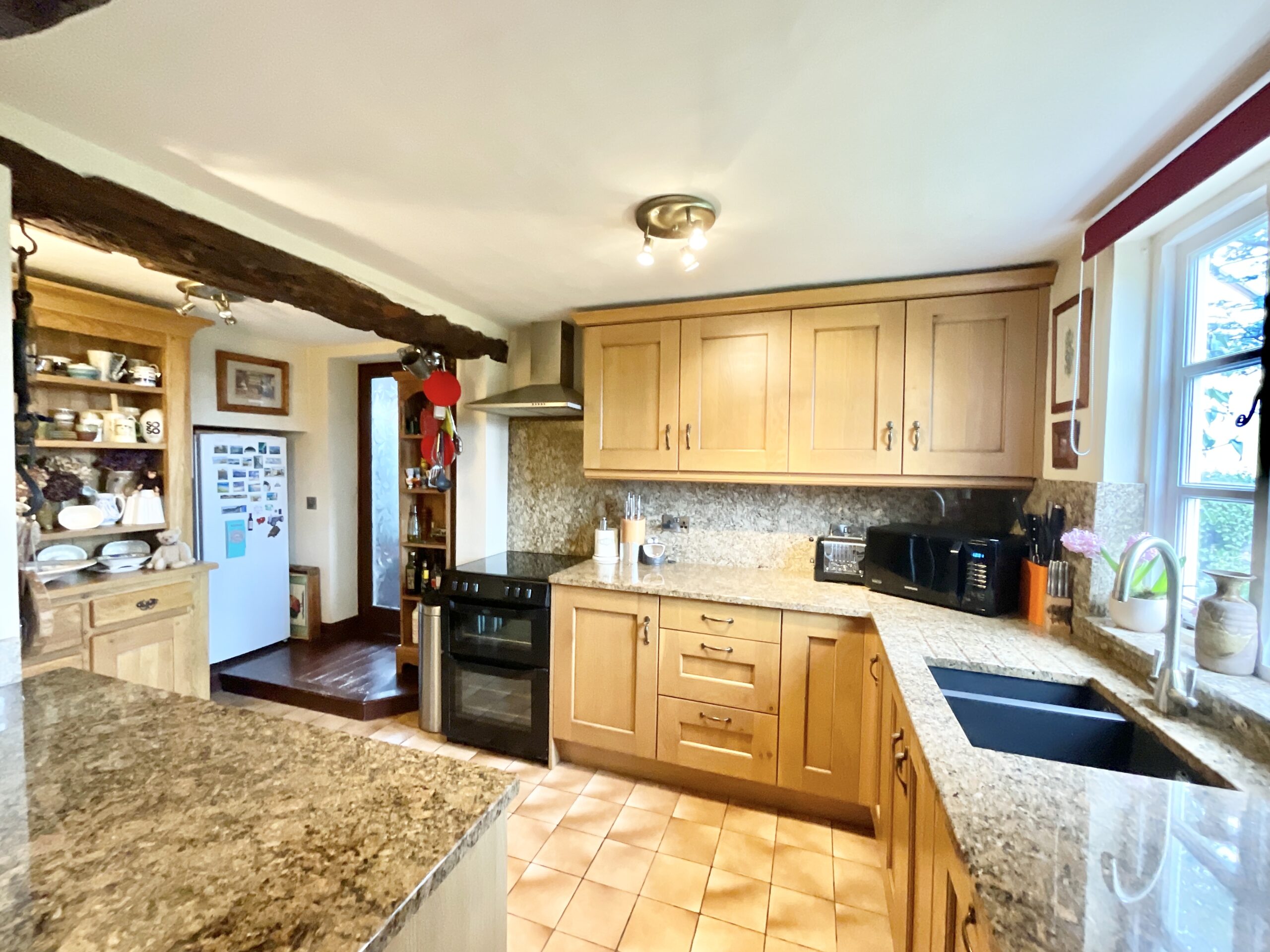 Entering the property from the rear you will first come across the utility/boot room which is most helpful if you have muddy boots or paws to remove and dry off first. This very useful room provides the space for your white goods, with a sink and extra storage space as well. From here you’ll continue through to the kitchen/breakfast room which can be used as you so wish, once having a dining table for the family to sit and enjoy time together talking about their day over supper, but now is home to a sofa to sit and enjoy the warmth from the fireplace. The kitchen is separated by a breakfast bar adorned by granite worktops providing the ideal workspace for preparing dinner or baking sweet treats. The Handmade bespoke kitchen units offer storage along with a sink, integrated dishwasher, freestanding oven and original beams to the ceiling. A door from this characterful kitchen area takes you through to a hall which in turn has another door out to the rear driveway along with a 2nd door to the fourth bedroom and ensuite shower room. This second rear door and hall provides ideal private access to the forth bedroom which could work well as an annexe for a parent or teen, although you may find this rooms is an excellent space for a home office or hobbies room, the opportunities are endless!
