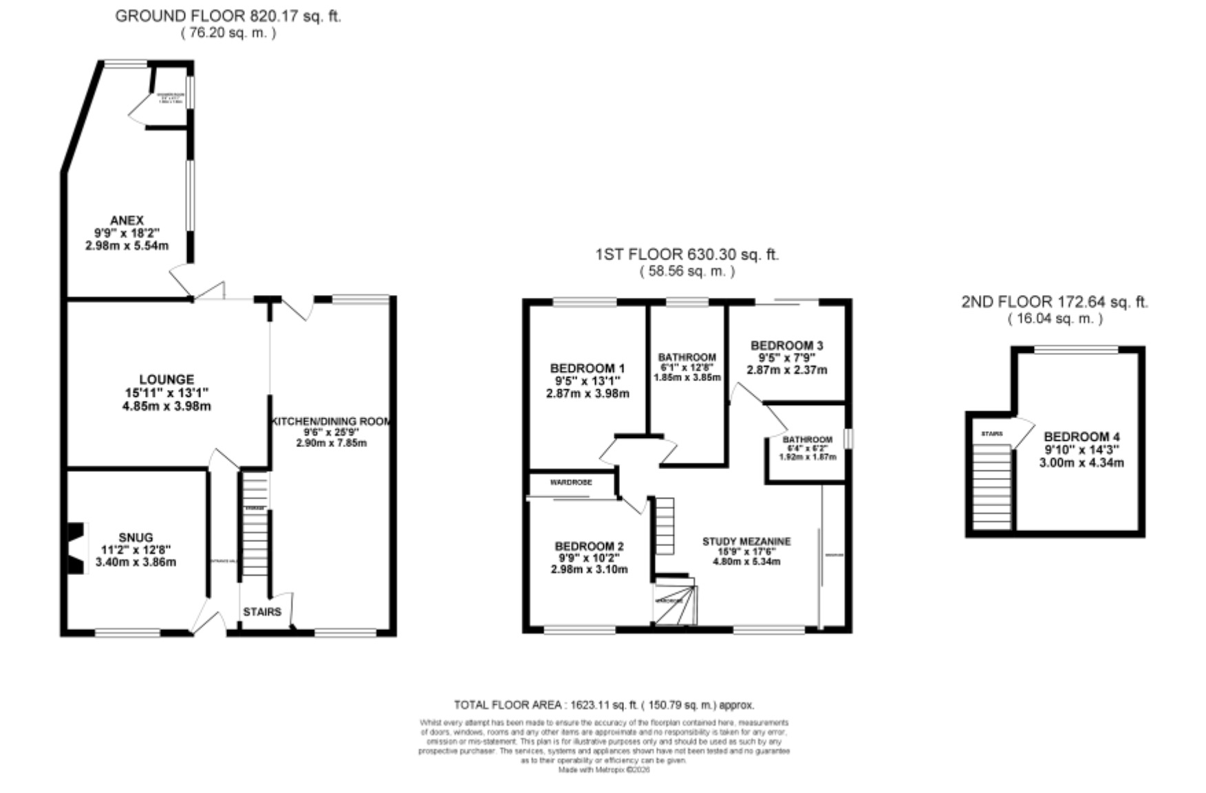 When two become one, something truly magical is created and this love story is no different. Once stood two houses, joined at the hip, walls were slowly let down and then the magic began. The result is a charming home filled with character, warmth, and a story of its own. Set over three floors in the delightful village of Kingsley, number 53 High Street enjoys breathtaking field views to the rear, providing the perfect backdrop to this gorgeous home. Step through the front door and into the welcoming hallway. To your left sits a cosy snug, a versatile space that could serve as a study, playroom, or quiet retreat. To your right, you enter the spacious open-plan lounge and dining area where the home truly begins to flow. Mosaic tiles and sage green cabinetry create both style and practicality, offering plenty of storage while forming a beautiful kitchen space where you can cook up a feast and gather around the dining table with family and friends. When the evening draws to a close and the plates are cleared away, retire to the inviting sitting room. Here you can relax beside the charming log burner with a warm drink in hand, or in the warmer months open the glazed bifold doors and step out onto the garden patio. Hosting family or welcoming visiting guests is effortless. With its own access from the patio, the property also benefits from a self-contained annex, ideal for multi-generational living or guest accommodation. Complete with a shower room, kitchen area and versatile reception space, it offers independence while remaining part of the home. The first floor hosts three generous double bedrooms along with two bathrooms, helping make busy mornings that little bit easier. The spacious landing also doubles as a practical area with fitted storage, perfect for a study space or somewhere for homework. On the second floor you will find the fourth bedroom, continuing the home’s theme of generous living space. To the rear, the garden perfectly complements the home, offering mesmerising views across rolling hills and open countryside. Whether you choose to sit on the patio or relax on the decking, it’s the ideal place to take in the scenery. The multi-level garden adds depth and character, featuring a pond at the bottom, a lush green lawn, and mature shrubs and planting, making warm summer days all the more inviting. To the side of the property there is a convenient driveway, providing easy off-road parking and a further driveway just a stones throw away. All of this is set within the sought-after village of Kingsley, a rural setting with beautiful countryside views to the rear. For everyday convenience, the town of Cheadle is just a 10-minute drive away, offering a wide range of supermarkets, shops and eateries.
