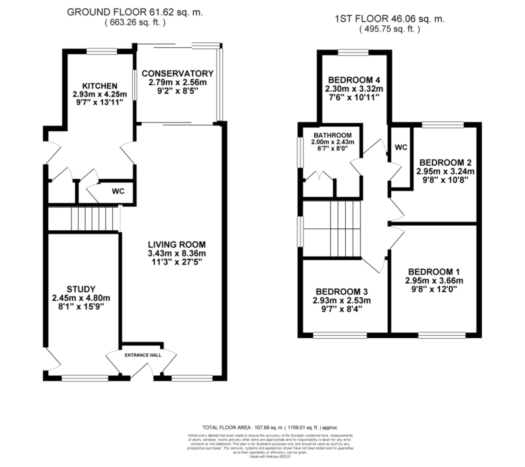 Step inside and admire the generous proportions, with three versatile reception rooms offering endless creative possibilities. The main living room is flooded with natural light from expansive windows, setting the scene beautifully. A separate study provides the ideal spot for working or creating, while the bright conservatory, complete with sliding doors, blends indoor living seamlessly with the garden beyond. The kitchen is bursting with character, featuring ample cabinetry, green tiling and a whole lot of potential, ready for you to add your own signature style. A ground-floor W.C neatly completes the picture. Upstairs, the composition continues with four well-proportioned double bedrooms, each awash with natural light and finished in neutral tones, the perfect palette for personalisation. A family bathroom offers both a bathtub and shower, along with built-in storage, while a second W.C adds practicality to this well-balanced layout.
