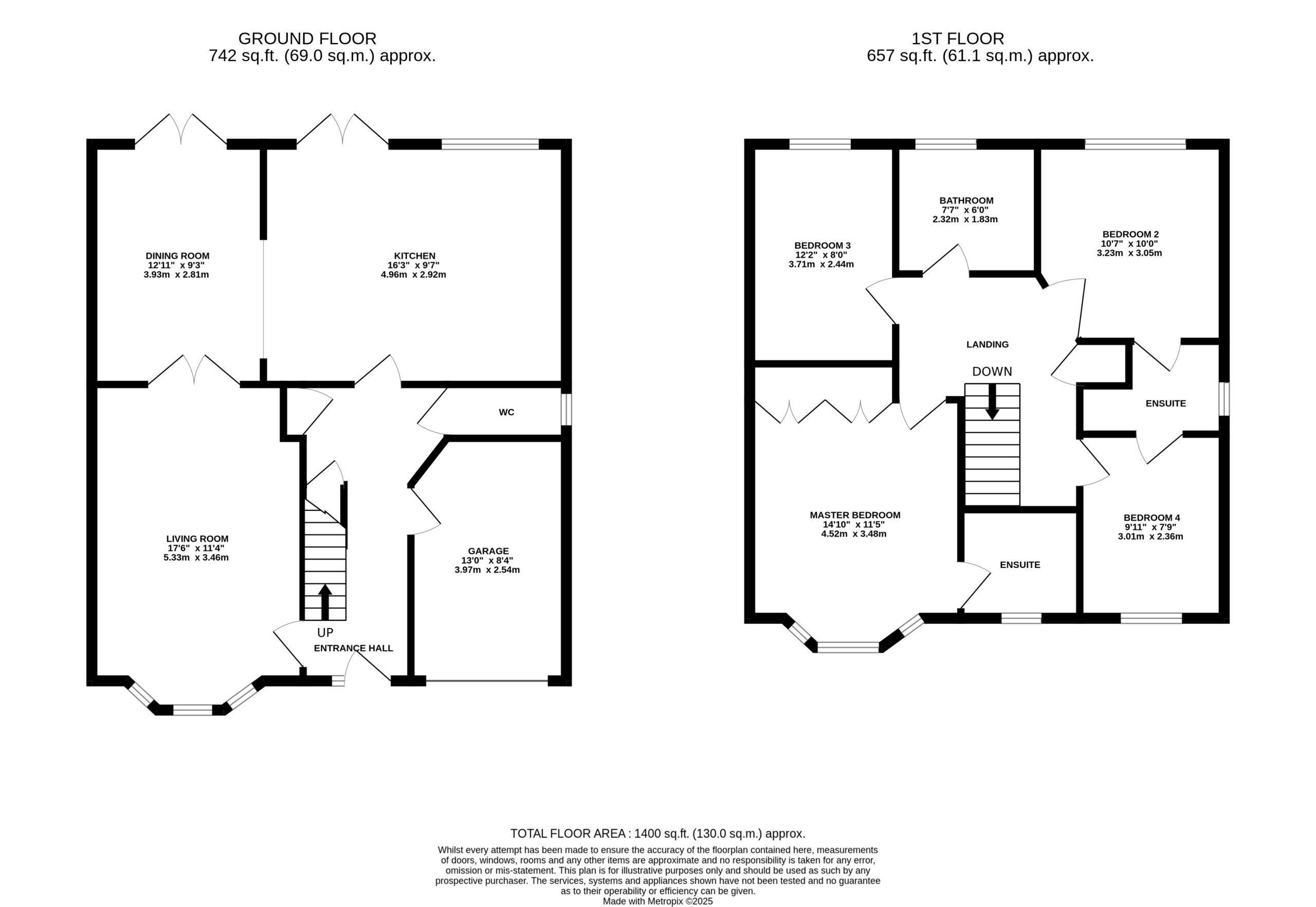 - Four Well-Proportioned Bedrooms – Master with ensuite and wardrobes, large second bedroom, flexible third used as a study, and fourth overlooking the garden.