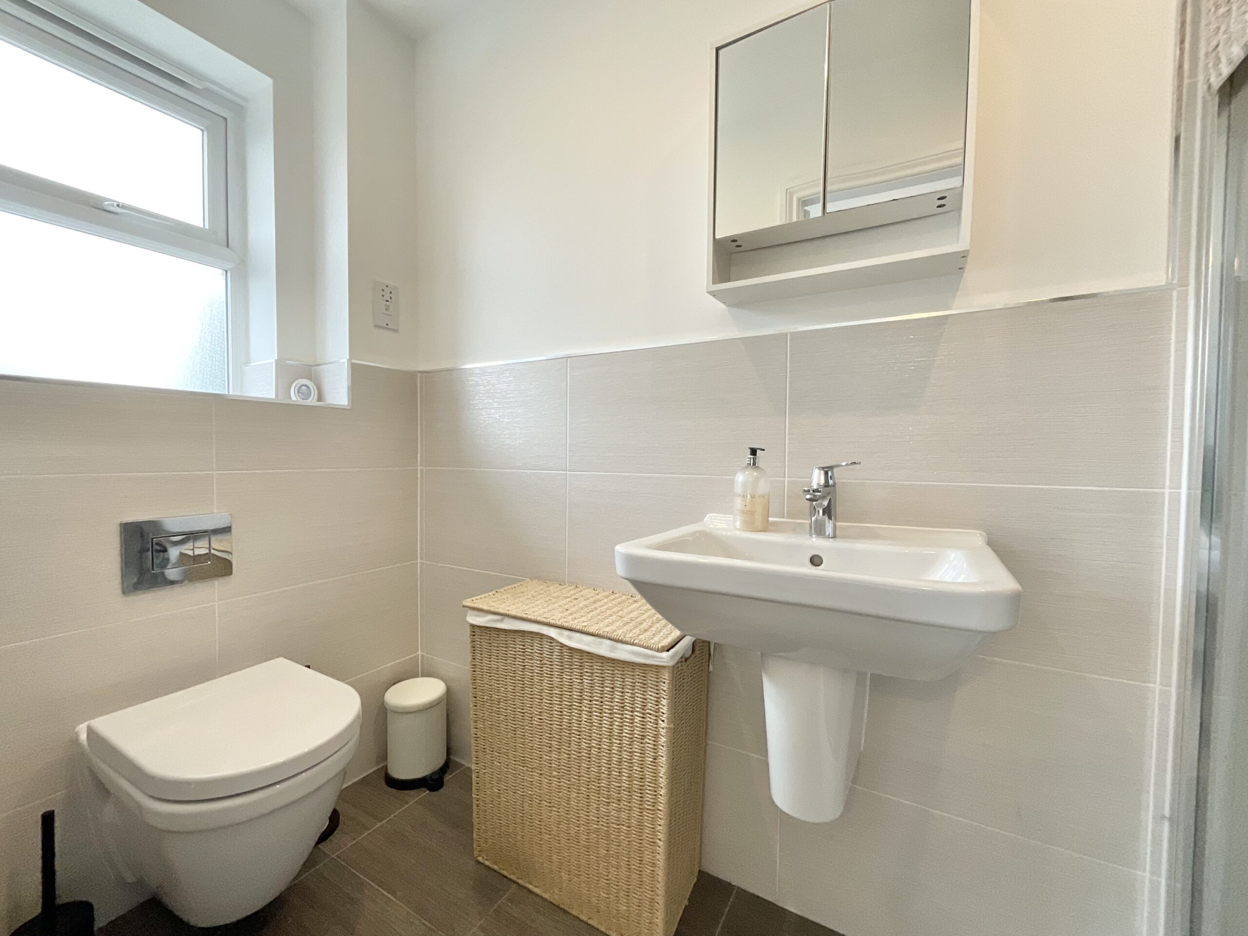A contemporary family bathroom serves the additional bedrooms and is fitted with a bath and overhead shower, offering both practicality and flexibility for everyday use.