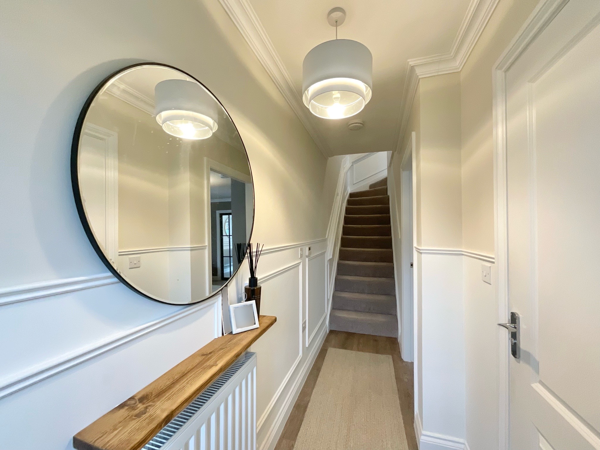 Upon entering the property, you are welcomed by a bright entrance hallway which immediately sets the tone for the home’s clean and modern aesthetic. From here there is access to a convenient ground floor WC and the staircase leading to the first floor.