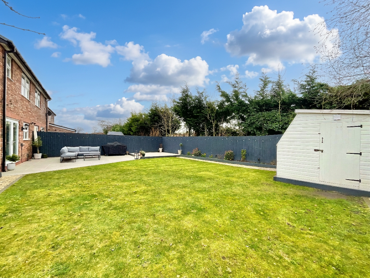 - Private rear garden with patio area, lawn and garden shed.