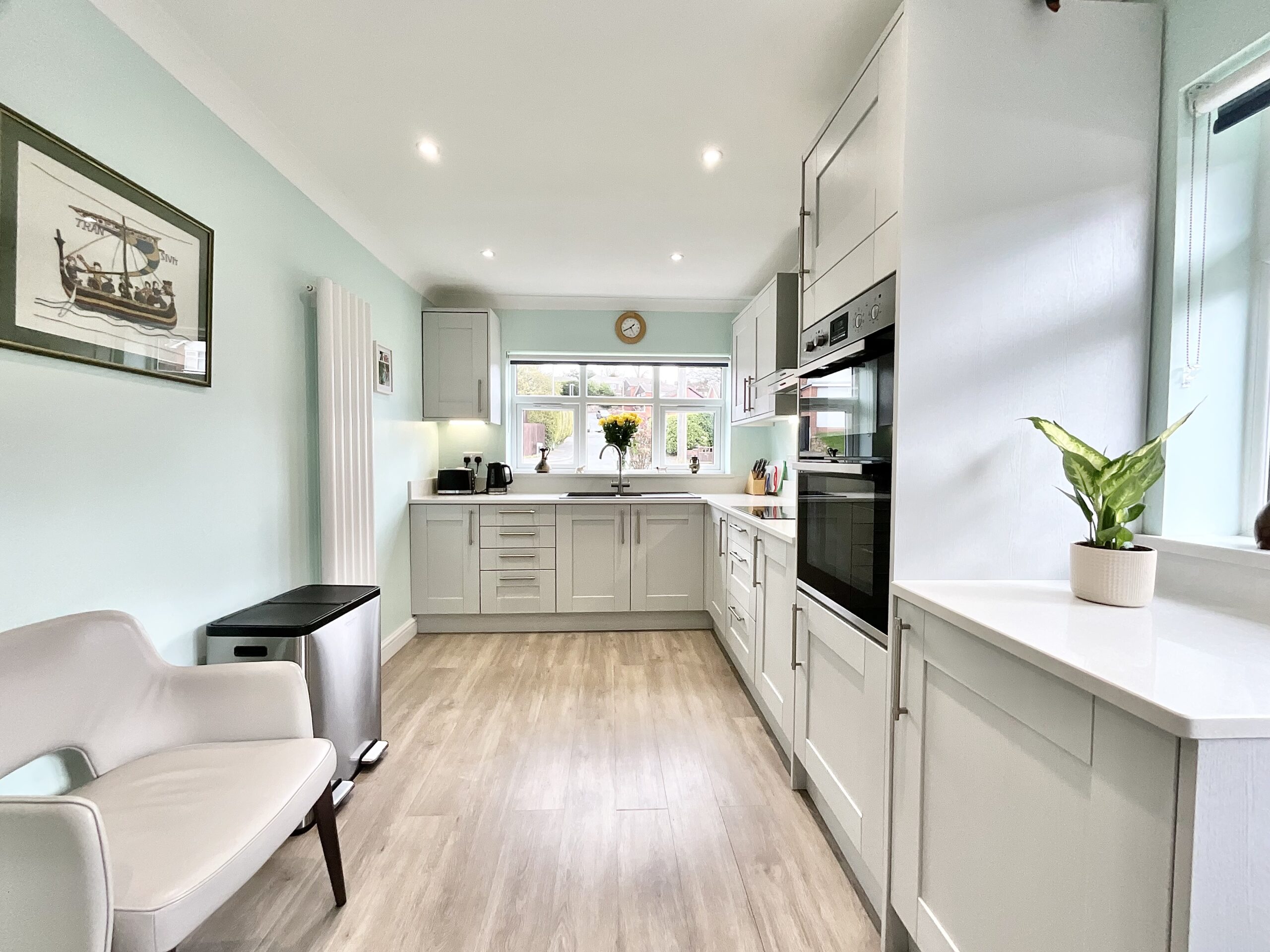“Build me up, Buttercup” and this beautiful bungalow in Endon does exactly that. This stunning four-bedroom, turnkey home is nestled in the sought-after village of Endon, just south of Leek in the Staffordshire Moorlands, offering a modern touch with practical yet rural lifestyle. You’re welcomed by a floral-trimmed front lawn and a generous driveway. Step inside through the low-threshold entrance (a thoughtful feature throughout the home) into a spacious hallway. To your left, the lounge/dining room overlooks the front garden, bathed in sunlight, an ideal spot for breakfast in the morning sun or a relaxing reading spot to unwind. A log burner adds warmth and character, creating a cosy space. At the heart of the home is the beautifully updated kitchen, featuring dove grey shaker-style cabinetry, solid worktops, and integrated appliances. Designed with both style and practicality in mind, it’s a perfect space for cooking and entertaining with room for a breakfast table for family dining. Integrated appliances keep the space neat and stylish. When it’s time to rest, the property offers four well-proportioned bedrooms, three doubles and a single perfect as a home office, guest bedroom, nursery or utility. The master comes complete with fitted wardrobes and lovely garden views whilst a further double bedroom to the rear offers french doors on to the patio beyond. Don’t quite need four bedrooms? It’s currently used as a sitting room, a glorious spot to unwind. The single bedroom is versatile with plumbing, currently used as a utility room and offers plumbing facilities. A stylish family shower room features marble-effect panels, anti-slip flooring, and a sleek LED mirror cabinet for a modern finish. Outside, the South-West facing garden is an asset designed to make the most of warmer days. A patio area, elevated and separated by a glass balustrade, adds a contemporary touch. The garden continues with a beautifully manicured lawn, bordered by hedgerows, fencing, and colourful planting. A shed provides additional storage for garden essentials. A side patio offers convenient access between the front and rear of the property, while the spacious driveway accommodates multiple vehicles. A garage adds further storage or parking options, and the home also benefits from an electric vehicle charging point. Located within a quiet, friendly community and surrounded by picturesque countryside, this property offers a relaxed pace of life whilst community spirit and events is the norm here. For everyday conveniences, nearby Leek provides a range of shops, supermarkets, bars, and eateries, while larger towns and cities are within easy reach. If it’s schools you need then theres no place like Endon to be situated with some fantastic, well regarded schools within reach. If you’re looking for a peaceful place to call home, this charming bungalow could be just the one. Book your viewing today, don’t break my heart.