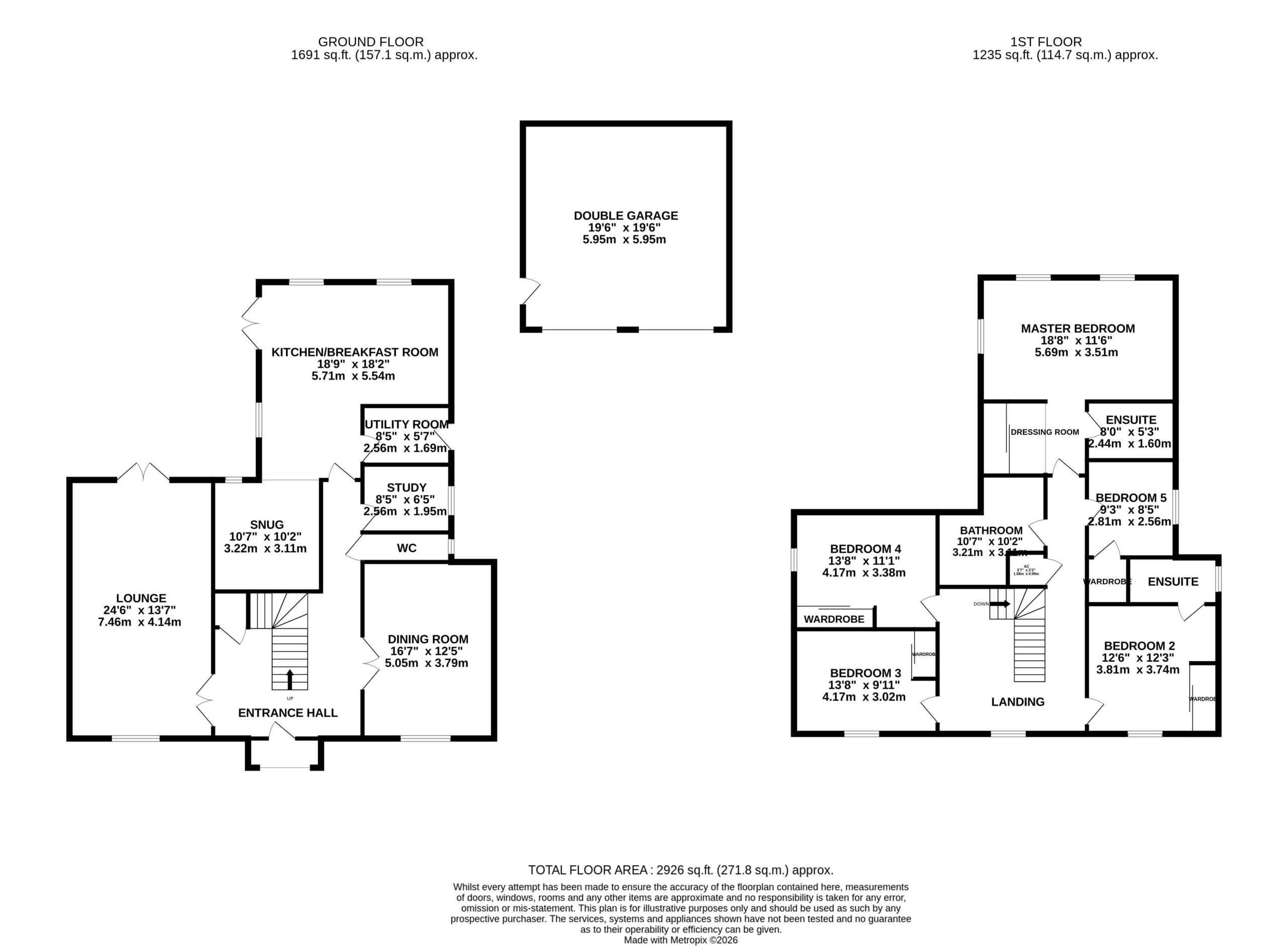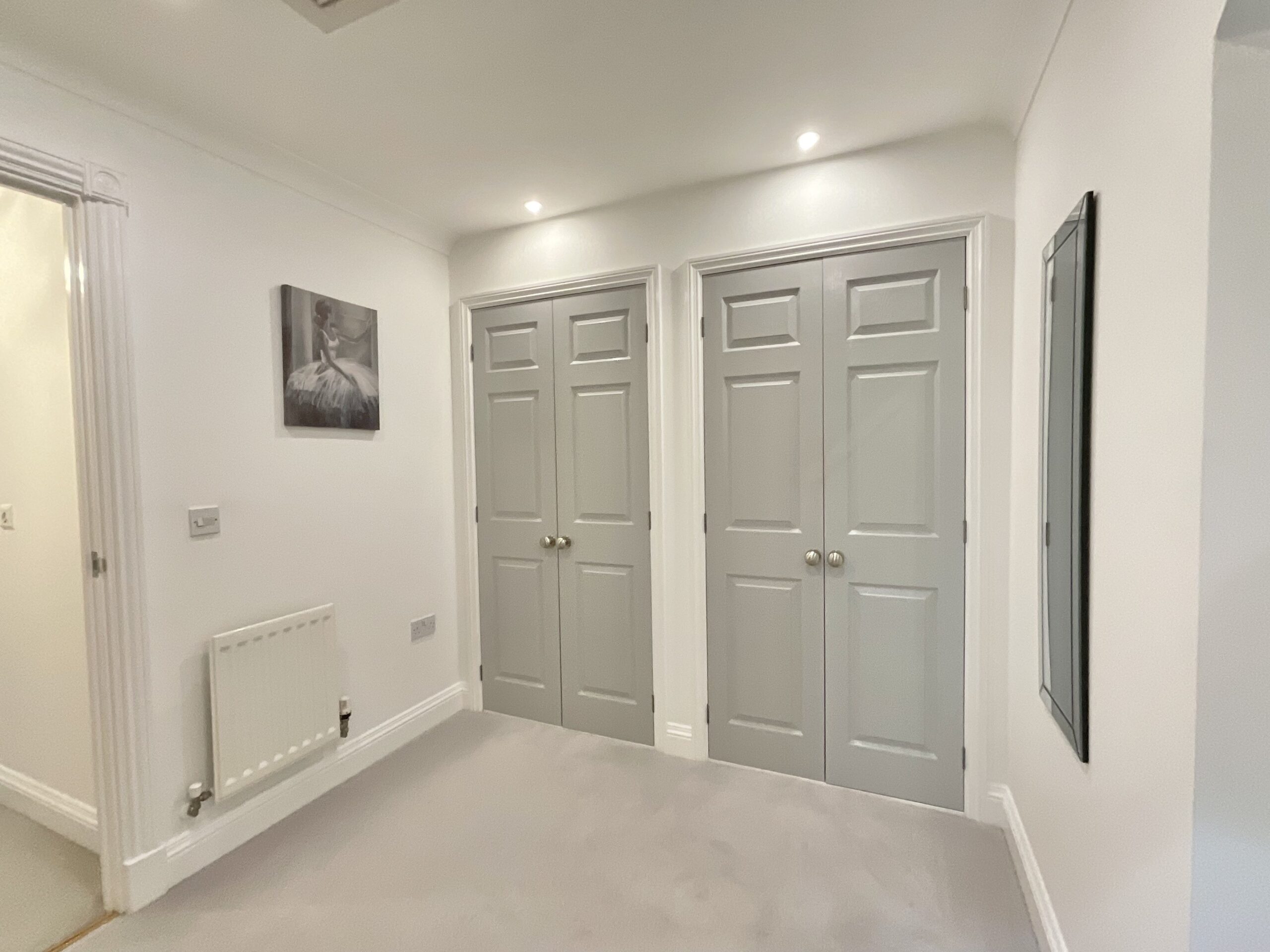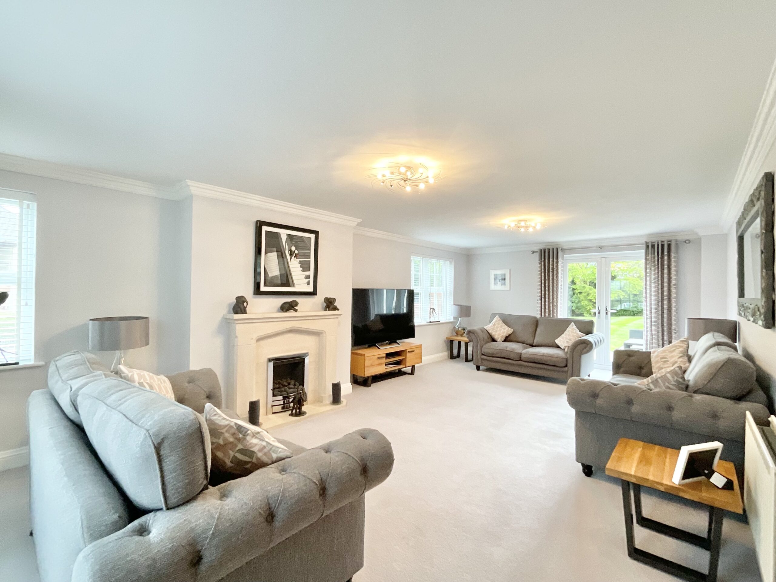 To the first floor, a galleried landing leads to five well-proportioned bedrooms. The principal bedroom suite offers a dressing area and a luxurious en-suite fitted with Villeroy & Boch sanitaryware, underfloor heating, a double shower with rainfall head, LED mirror and a heated towel rail. Bedroom two also benefits from fitted wardrobes and its own en-suite shower room, while the remaining bedrooms are all generously sized and include built-in wardrobes. The additional bathrooms are finished with high-quality Geberit fittings, and the family bathroom has been stylishly upgraded to include a freestanding bath fitted with a flexible pipe for ease of movement and cleaning, along with a wall-hung vanity unit, LED mirror and integrated speaker system.