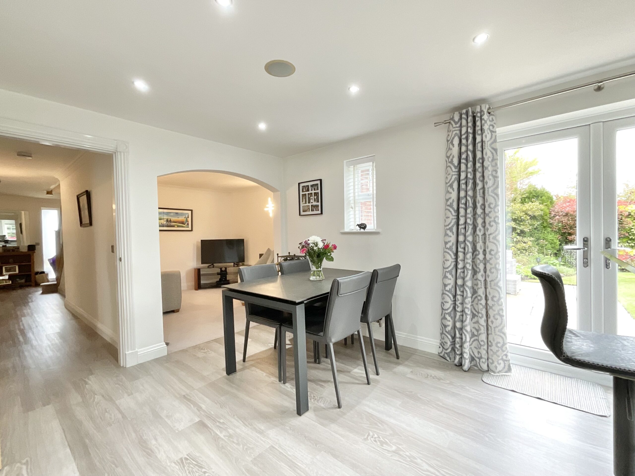 This beautifully renovated home has undergone a full refurbishment, including kitchen, bathrooms, flooring and décor, resulting in a stylish and move-in-ready property ideal for modern family living. The welcoming entrance hallway leads through to a range of versatile reception spaces, including a spacious triple-aspect lounge with French doors opening onto the rear garden, a formal dining room and an additional family room or snug, perfect for more relaxed living.