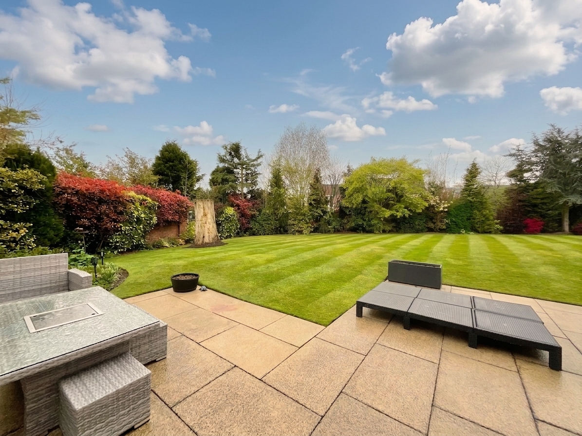 Externally, the property occupies a generous and private plot with a south-west facing rear garden that is not overlooked, enjoying a high degree of privacy from mature boundaries. There are two patio seating areas, ideal for both entertaining and family use, alongside a lawned garden. To the front, a driveway provides ample parking and leads to a detached double garage with power and lighting, with an electric vehicle charging point installed.