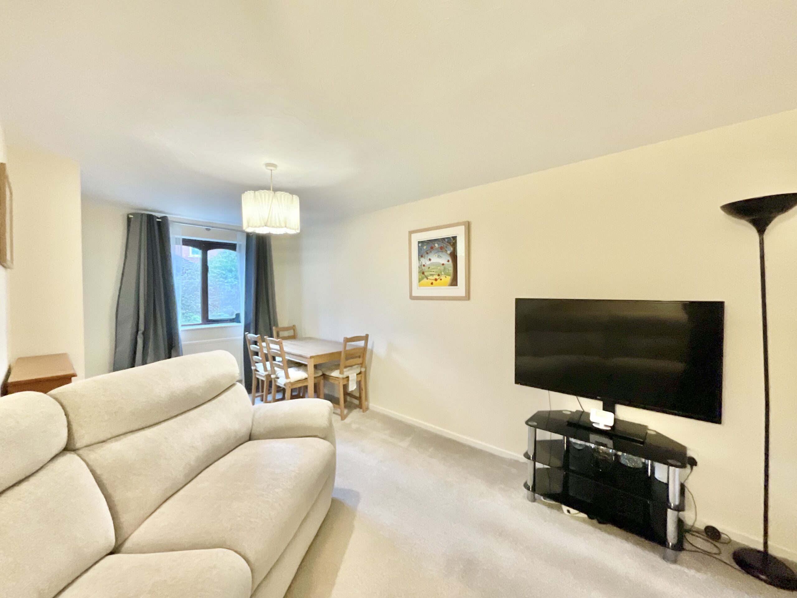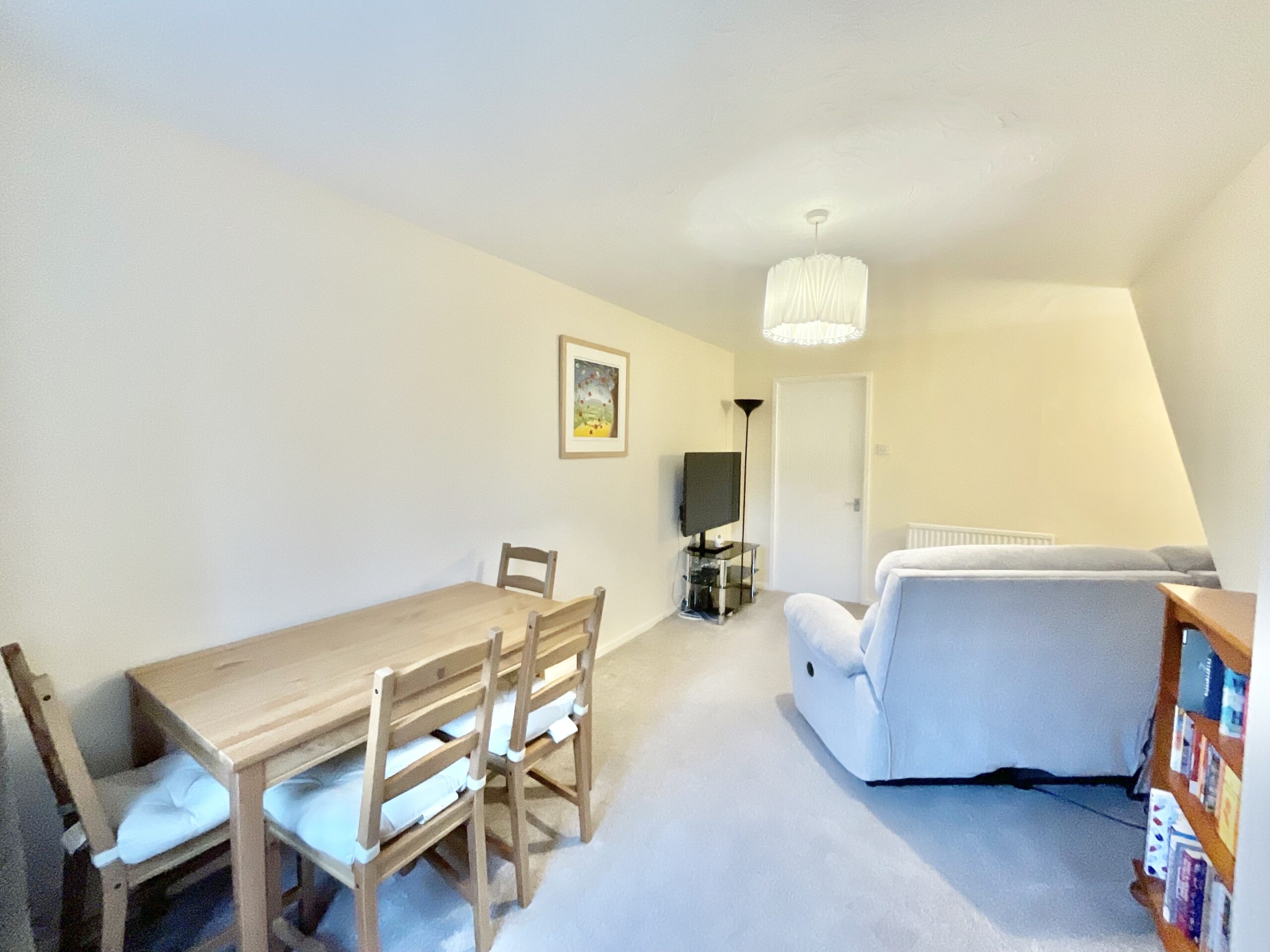 - Lounge/diner with plenty of room to relax and a practical U-shaped kitchen with white cabinetry, room for appliances, and a breakfast bar.