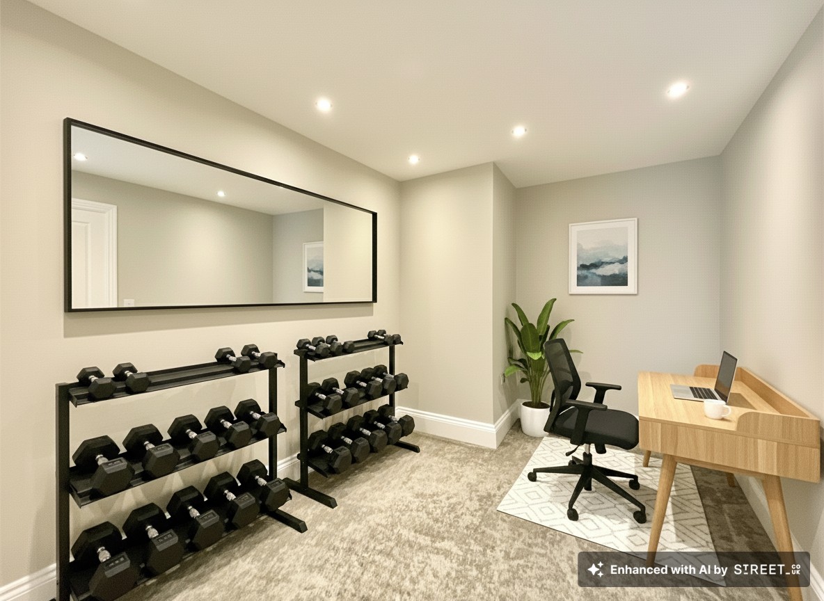 The interiors of this home boast an expansive living room with glazed sliding doors leading to the garden and an easy flow leading into the dining room, creating the perfect entertaining space for all to enjoy. The kitchen has been beautifully updated to offer sleek L-shaped beige cabinetry, room for appliances and a separate utility room that’s perfect for storing essentials. Off the living room sits a versatile space that could be perfect for a study, a playroom for little ones, a gym, or even a games room for friends. Completing downstairs is a storage space, W/C, and entry into the store at the front of the home.
