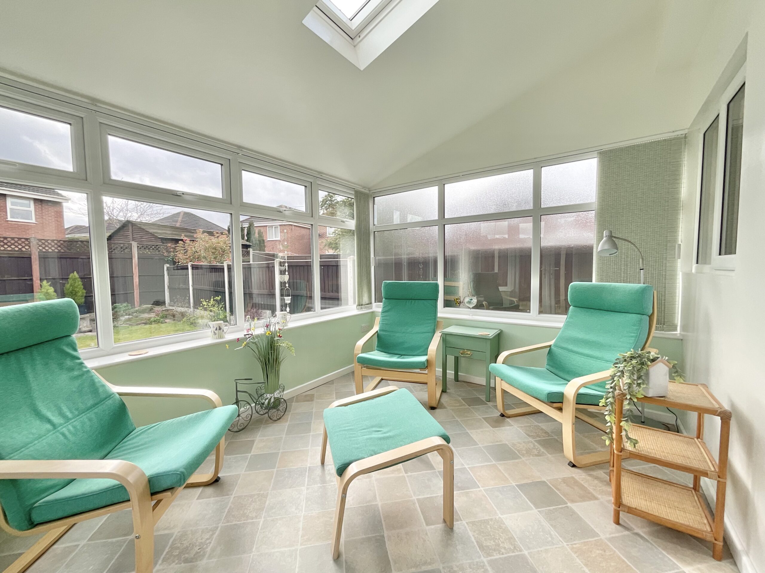 To the rear, the recently fitted kitchen is modern and well-designed, offering a great balance of style and practicality. It features a range of wall and base units providing ample storage, along with generous worktop space for food preparation. Integrated appliances include an induction hob and electric oven, as well as a slimline dishwasher, with additional plumbing for a washing machine and space for a fridge freezer. A pleasant dining area provides room for everyday meals, while the kitchen opens into a bright sun room overlooking the garden, creating a versatile and sociable space.