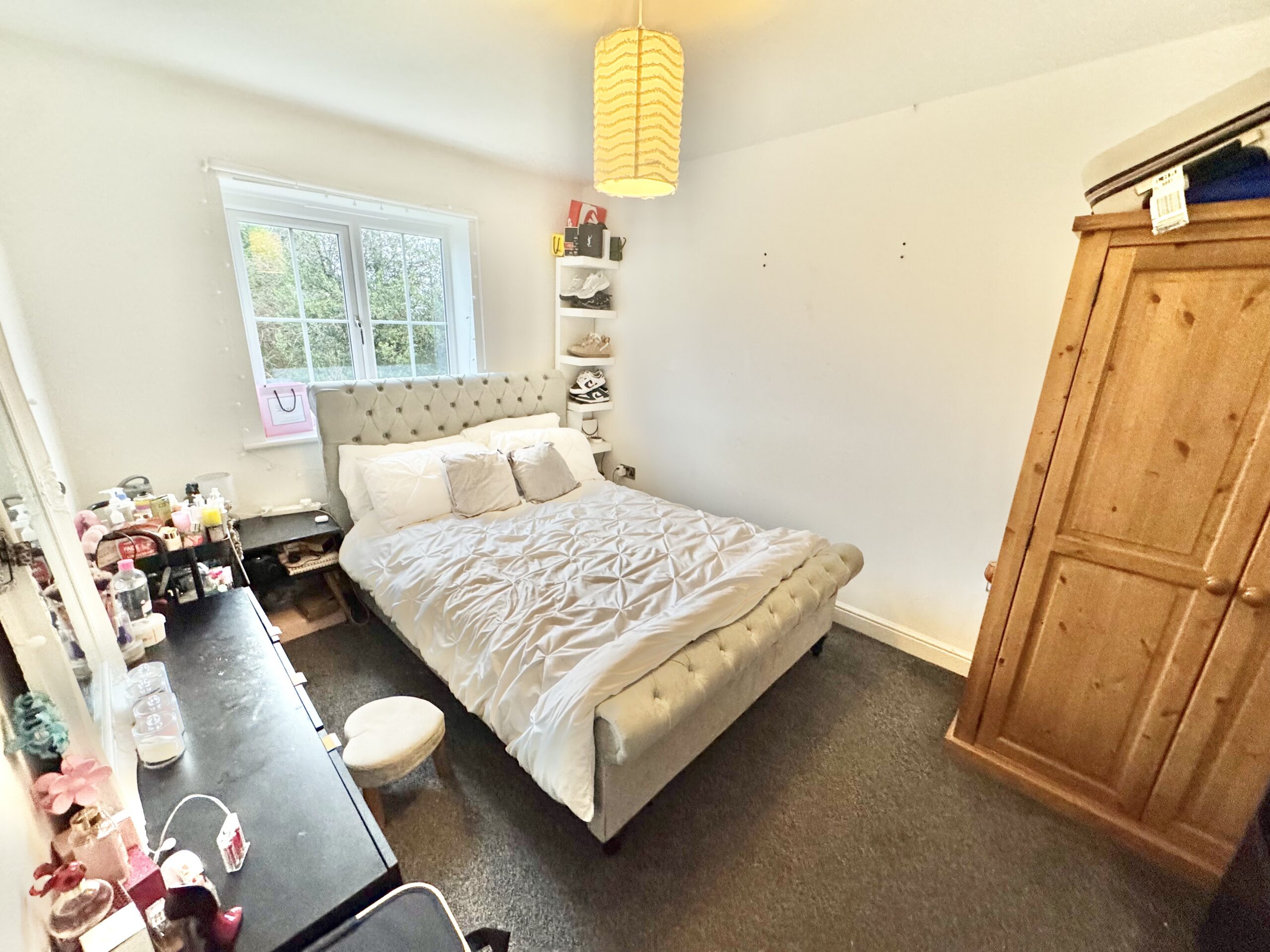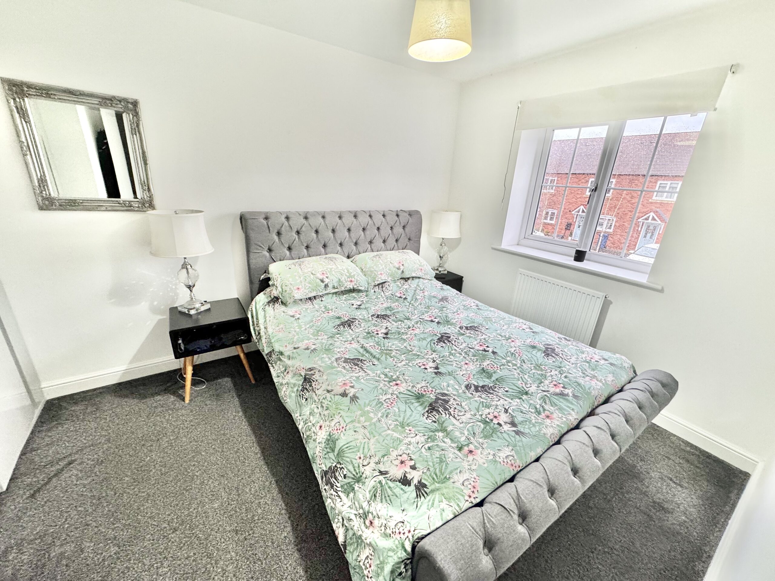This beautifully presented three-bedroom semi-detached house offers a harmonious blend of modern living and classic charm, perfect for families or professionals seeking comfort and style. The property welcomes you with a neatly maintained front garden and an attractive brick exterior, complemented by convenient off-road parking and a characterful porch. Inside, a bright and airy hallway with neutral decor and carpeted flooring leads to a spacious living room, which is bathed in natural light and features elegant modern furnishings. French doors open directly onto the lush rear garden, creating a seamless connection between indoor and outdoor spaces. The home’s modern kitchen is a true highlight, boasting sleek cabinetry, integrated appliances, a gas hob, and a dedicated dining area, all flooded with natural light from large windows. Upstairs, three generously sized bedrooms offer a variety of features, including built-in wardrobes, plush headboards, decorative wallpaper, and ample natural light, providing both functionality and a tranquil retreat. A contemporary family bathroom, complete with tiled walls, a shower over the bath, and a privacy-enhancing frosted window, adds further to the home’s appeal.