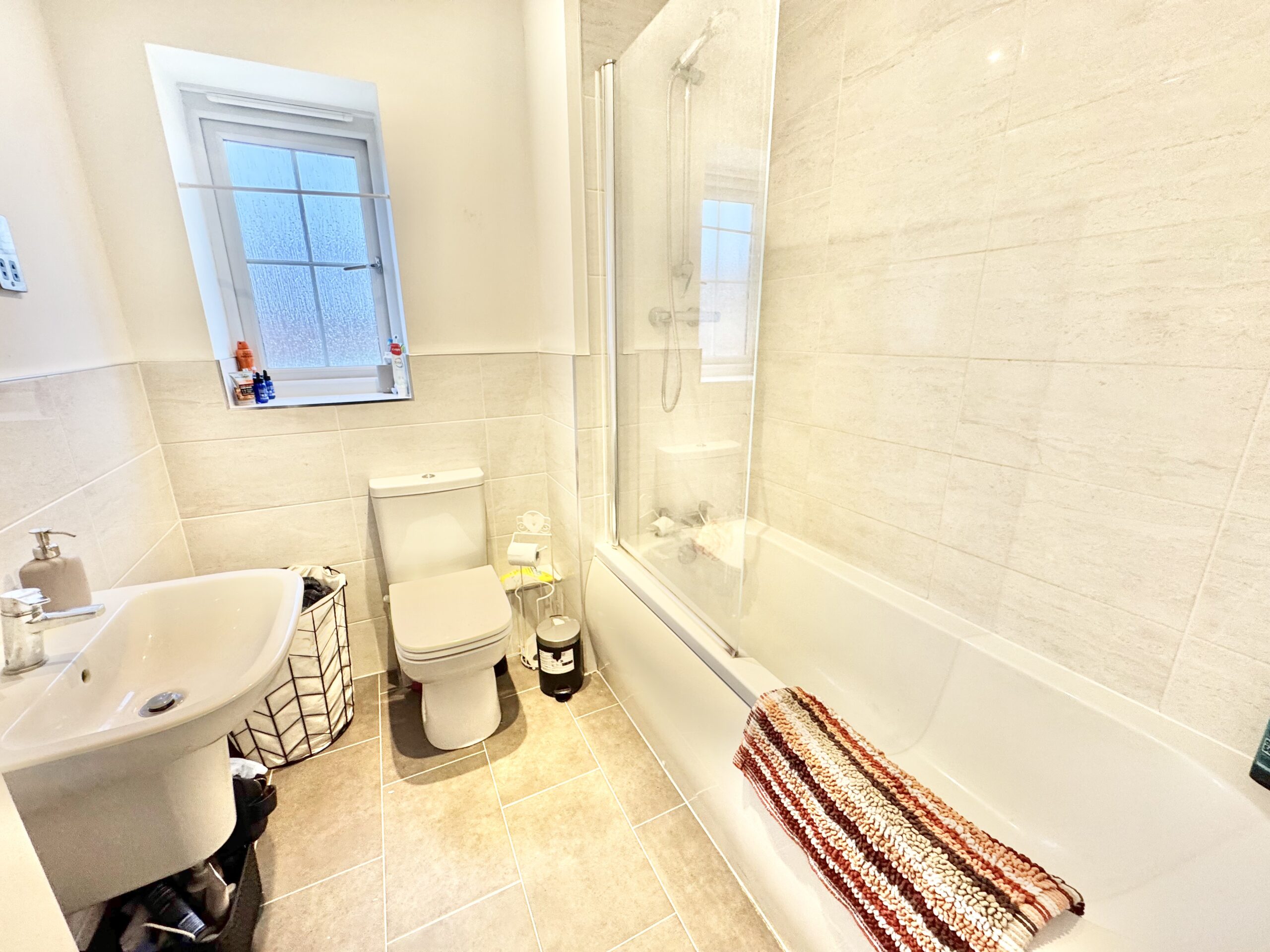 - Modern bathroom with shower over bath