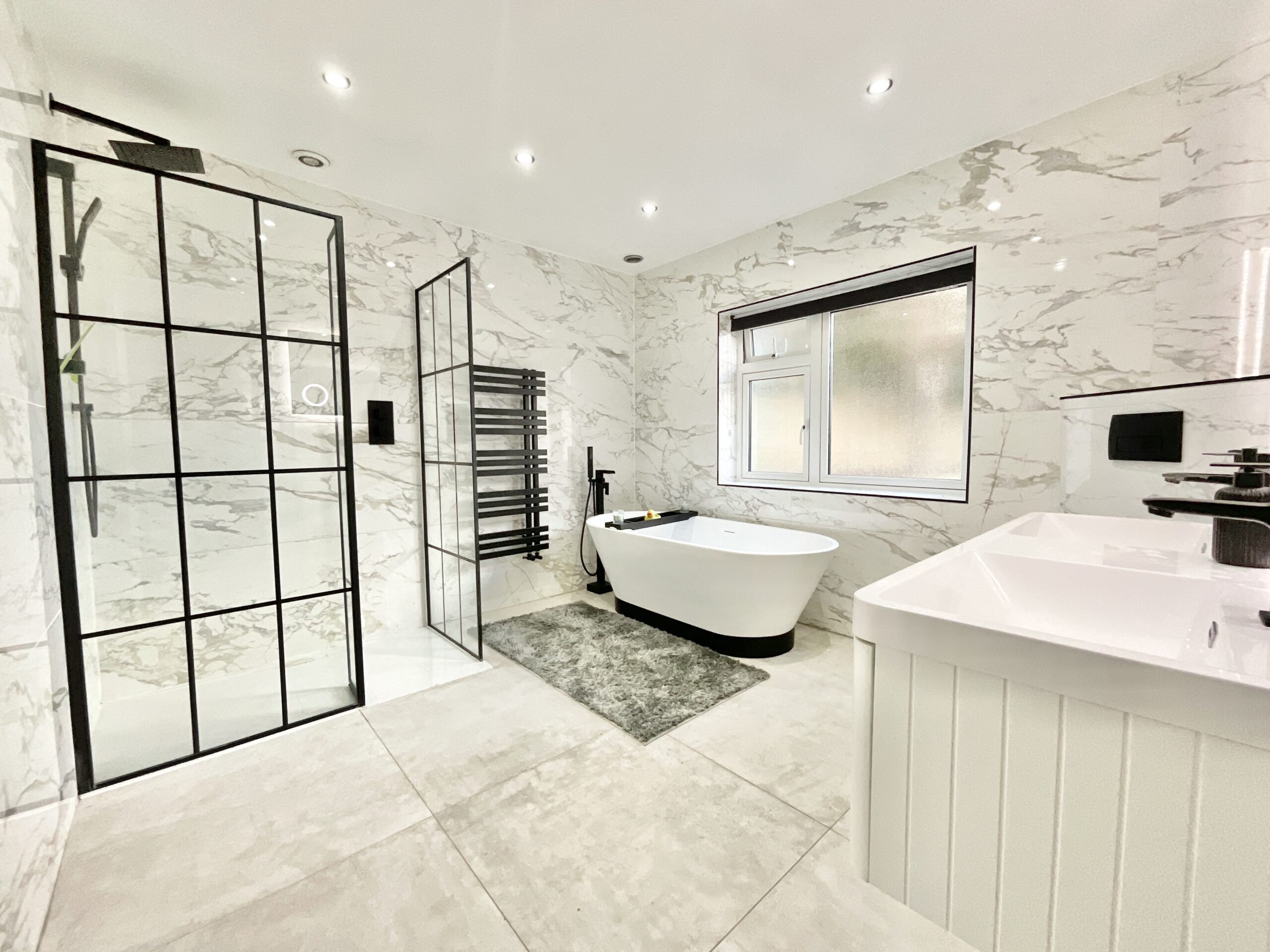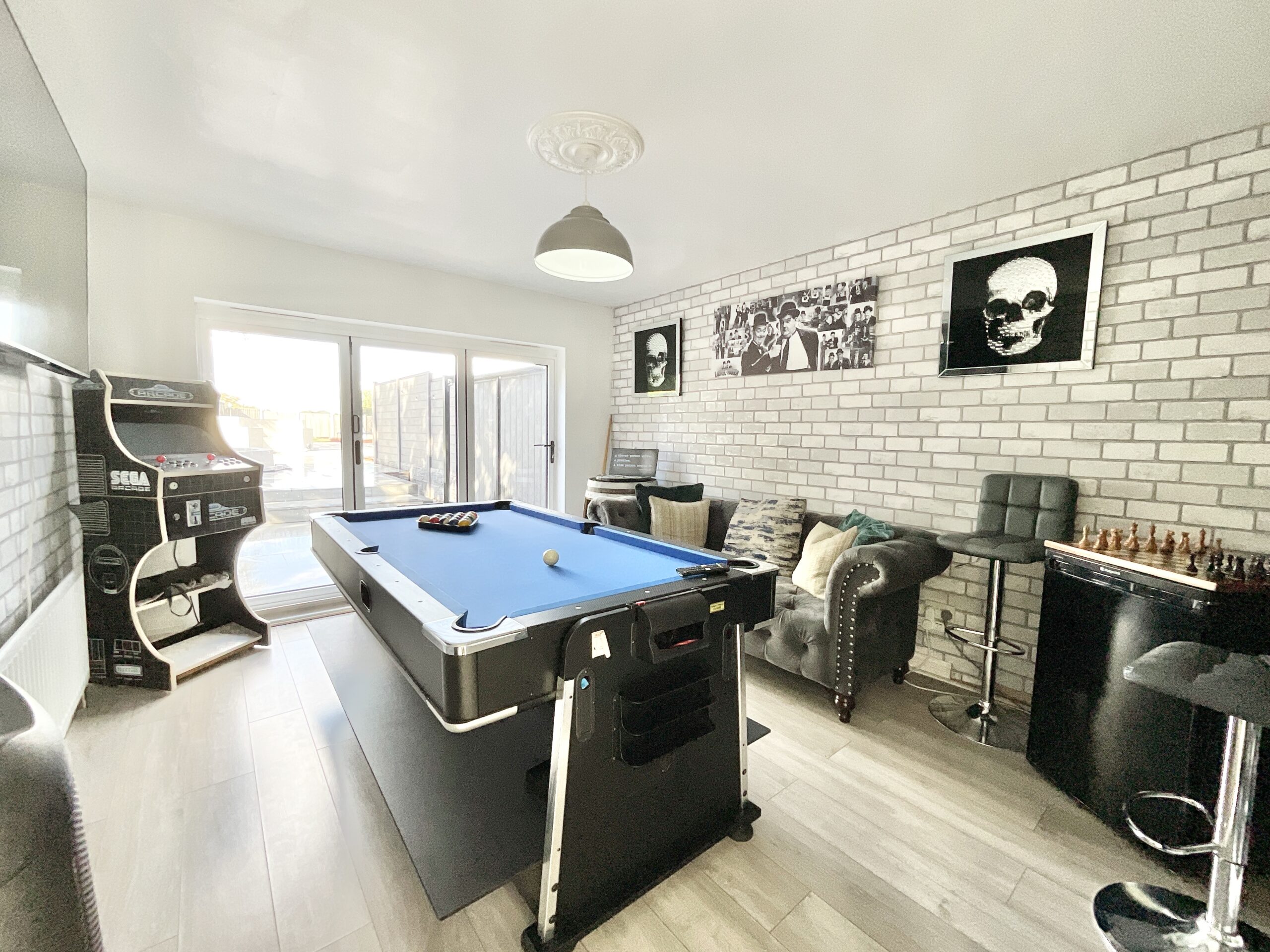Step inside and wade into the light-filled open-plan kitchen and dining area, complete with an array of cabinetry, integrated appliances and elegant finishes. With bifold doors opening straight to the front garden, indoor and outdoor living flow together seamlessly. A handy utility room and cloakroom keep things swimmingly practical. Head over to the living room, where a striking bay window shines a spotlight on a charming brick fireplace, the perfect perch for cosy evenings. Four bedrooms fan out on the ground floor, two with doors that open to the garden so you can hop straight outside. The family bathroom is a true splash of luxury, with marble-effect tiling, his-and-hers sinks, a walk-in shower and a freestanding tub fit for a lily pad soak. Upstairs, the loft room is a versatile catch whether it be a study, dressing room or hobby haven? Whatever floats your boat!