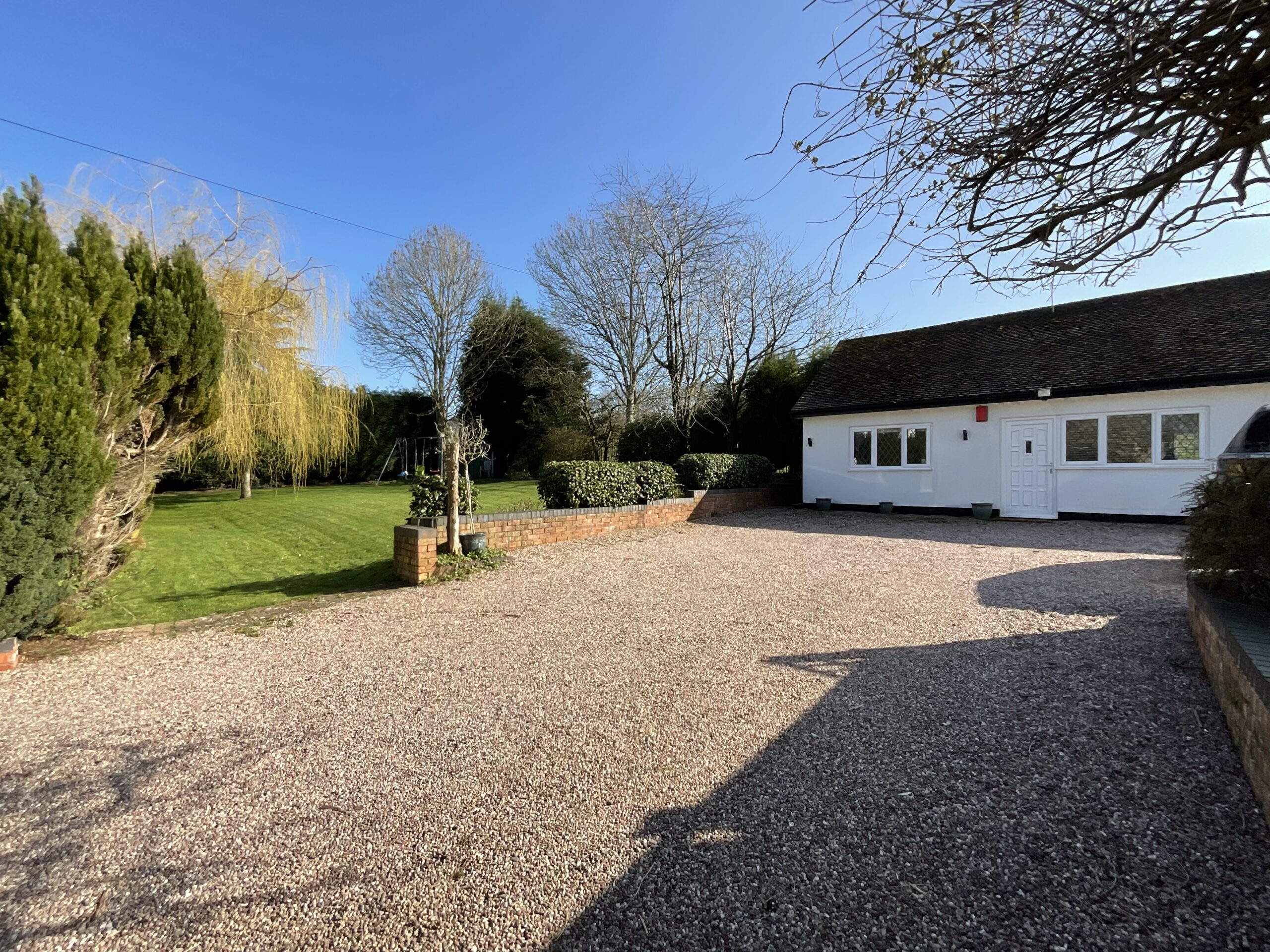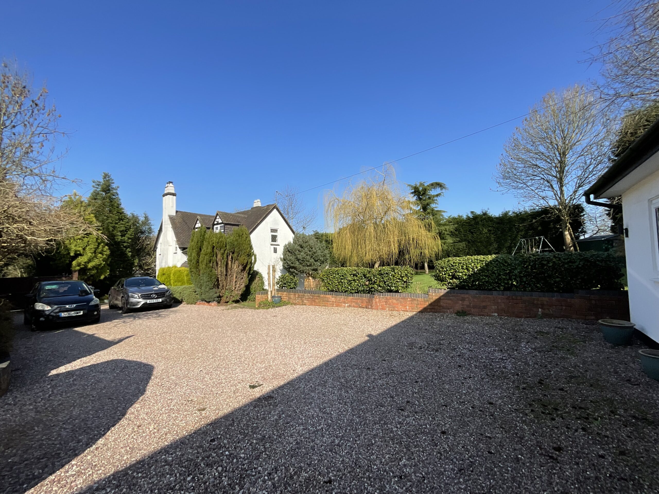 - Block-paved and gravel driveway with access through double gates, privacy hedging to the front, ample off-road parking for several vehicles and previously approved plans for additional spaces.