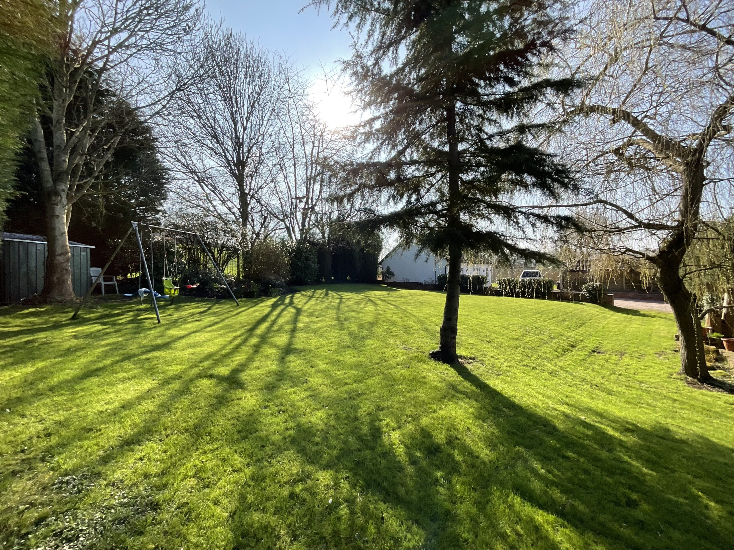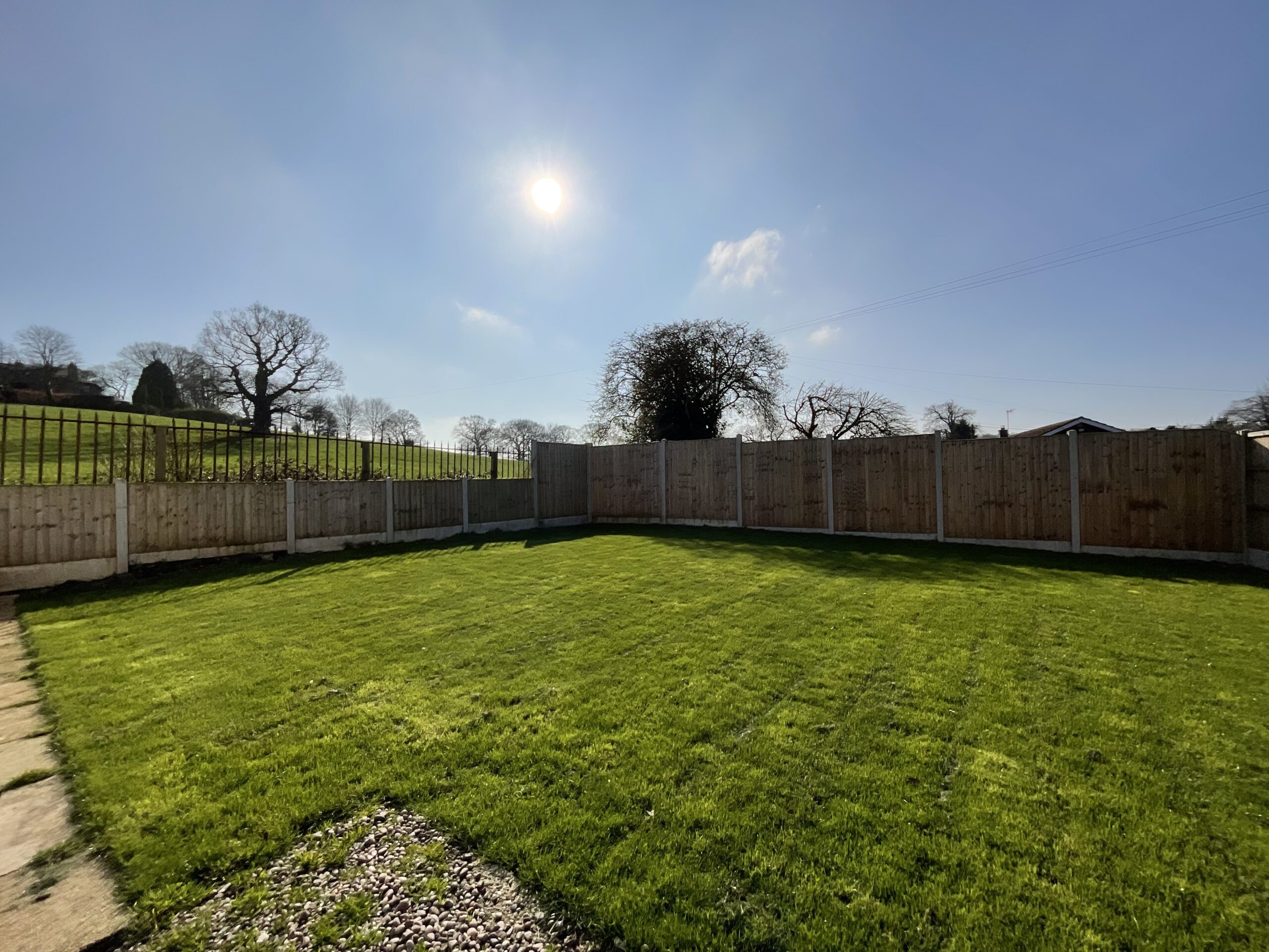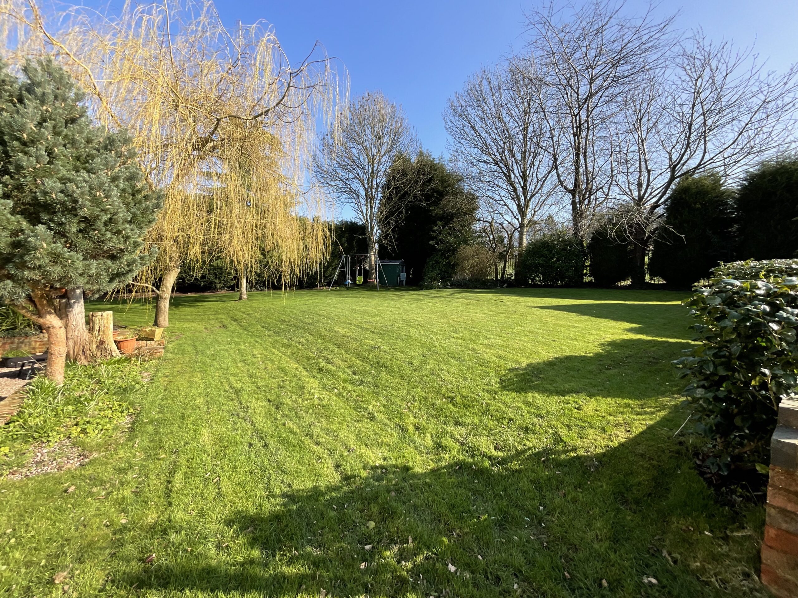 - Set within a sizeable 0.37-acre plot with expansive South-facing gardens. Boasting lush grass lawns, mature greenery and hedging, and a stunning view to the rear of Trentham Golf Club.