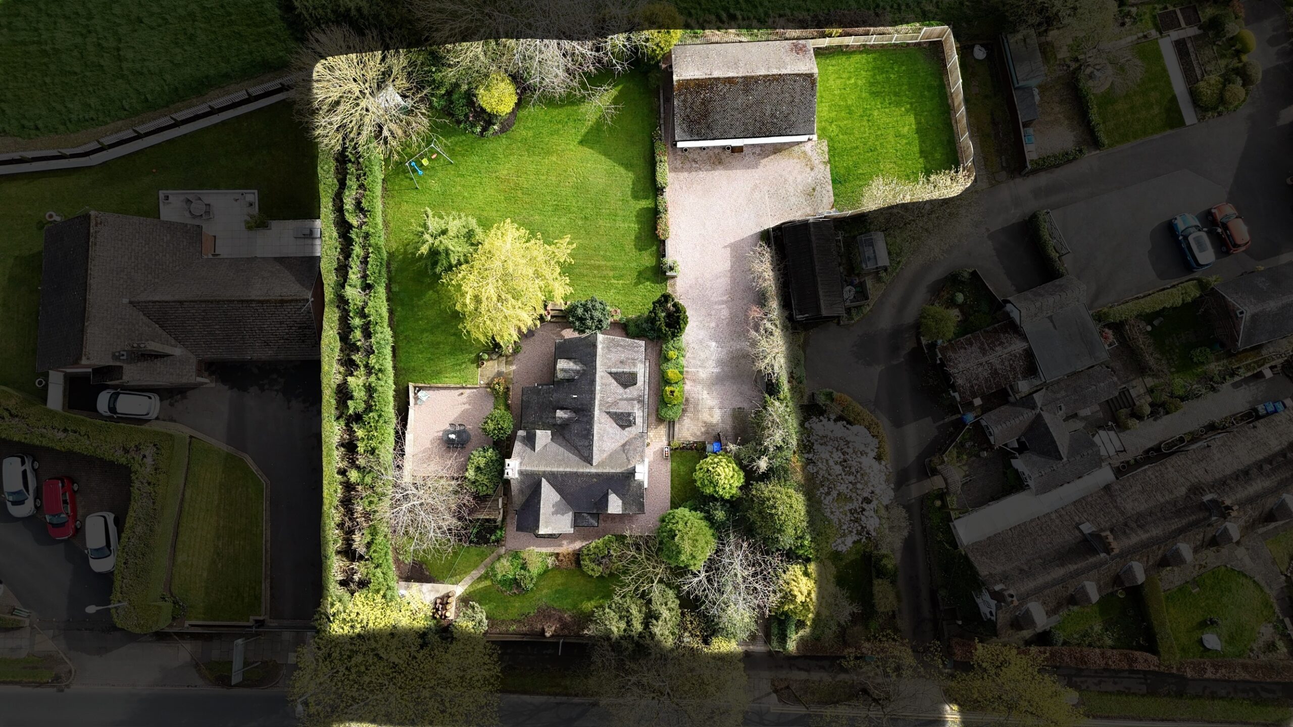 The home boasts 360° wraparound gardens in a South-facing orientation with a block-paved driveway with double-gated access leading to a further gravelled driveway with ample off-road parking for several vehicles. The gardens boast lush grass lawns, matured greenery and hedging that protect this home's privacy, along with gravelled seating spaces, perfect for soaking up the sun.