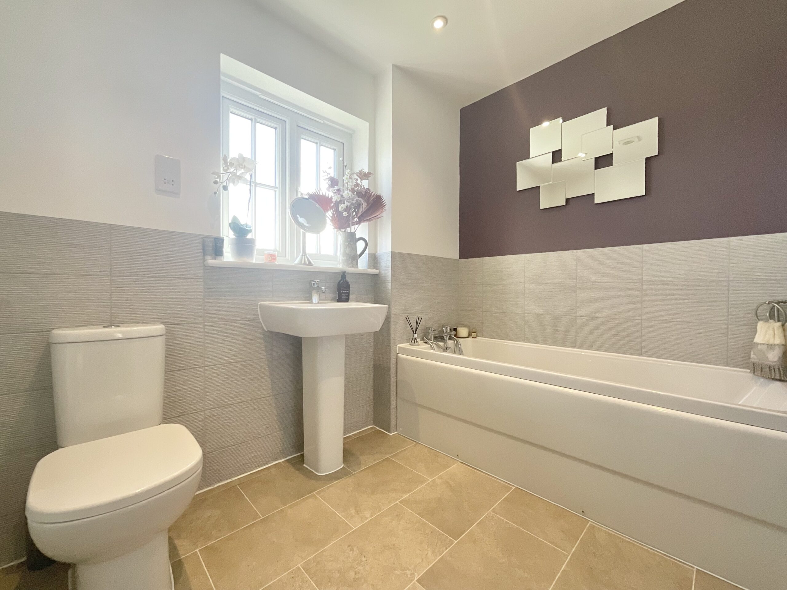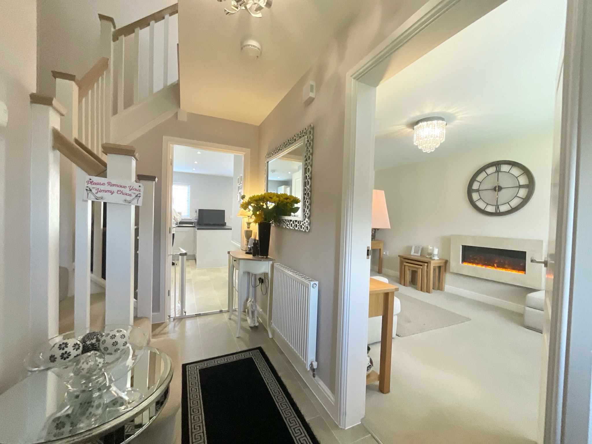 - Spacious lounge with large front window and stylish wall-mounted fire.