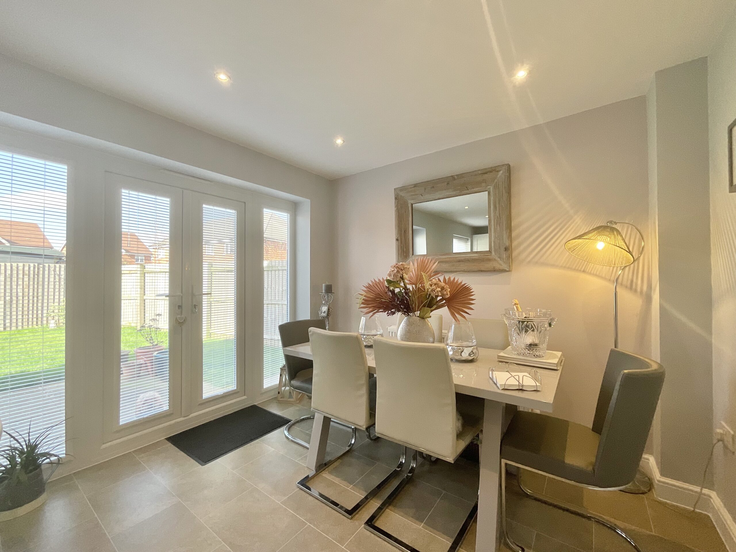 - Generous kitchen/diner with integrated appliances and French doors to the garden.