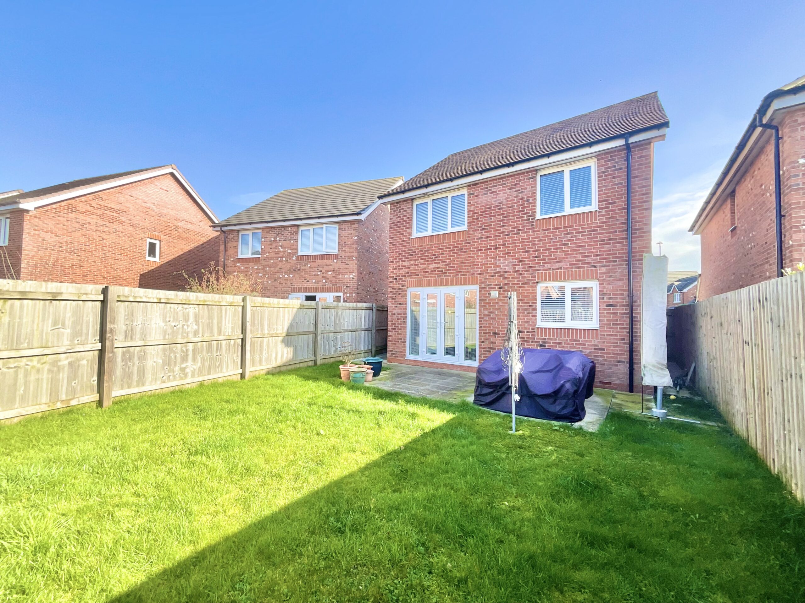 - Rear garden with patio and lawn plus driveway parking for two vehicles.
