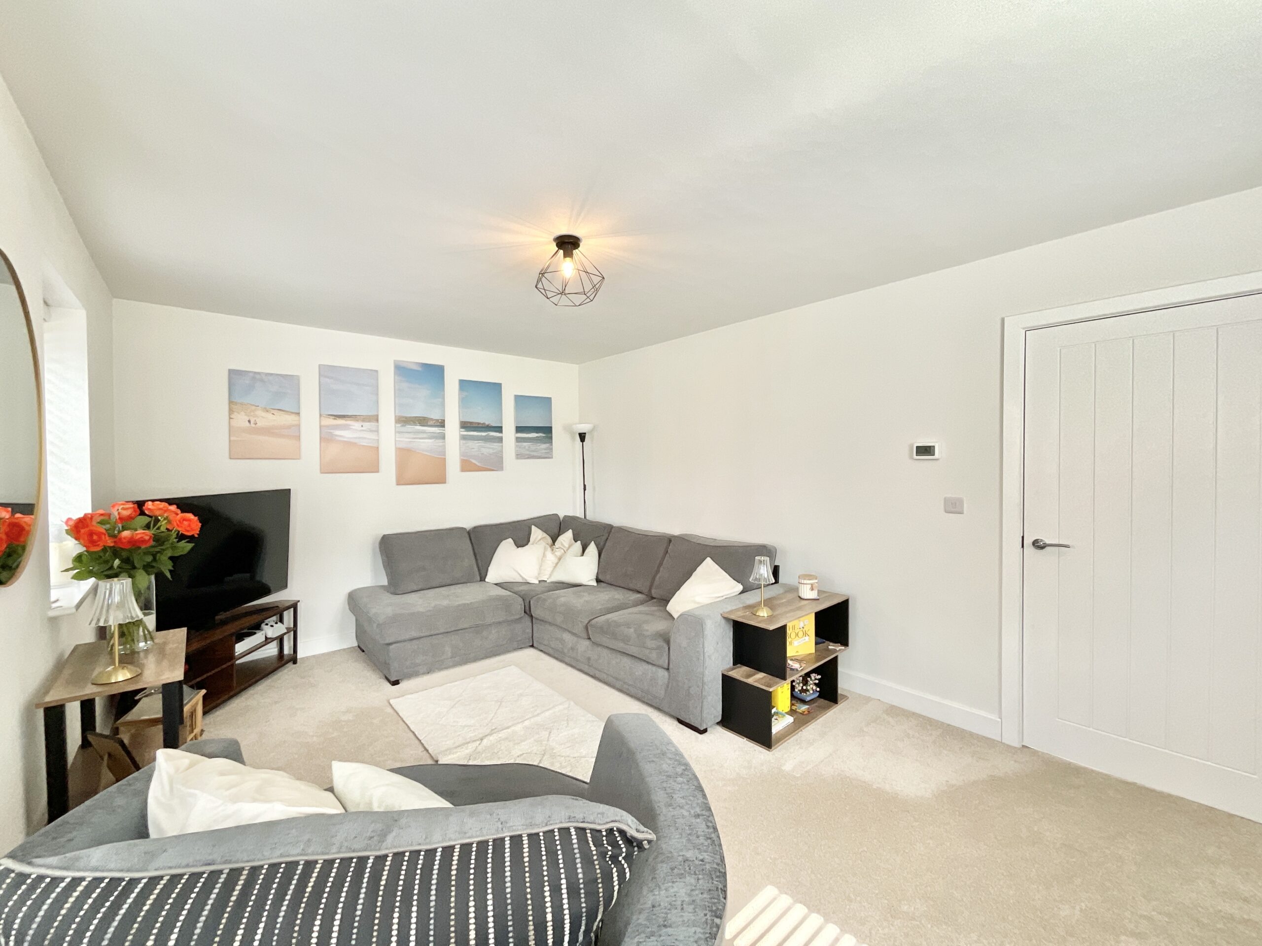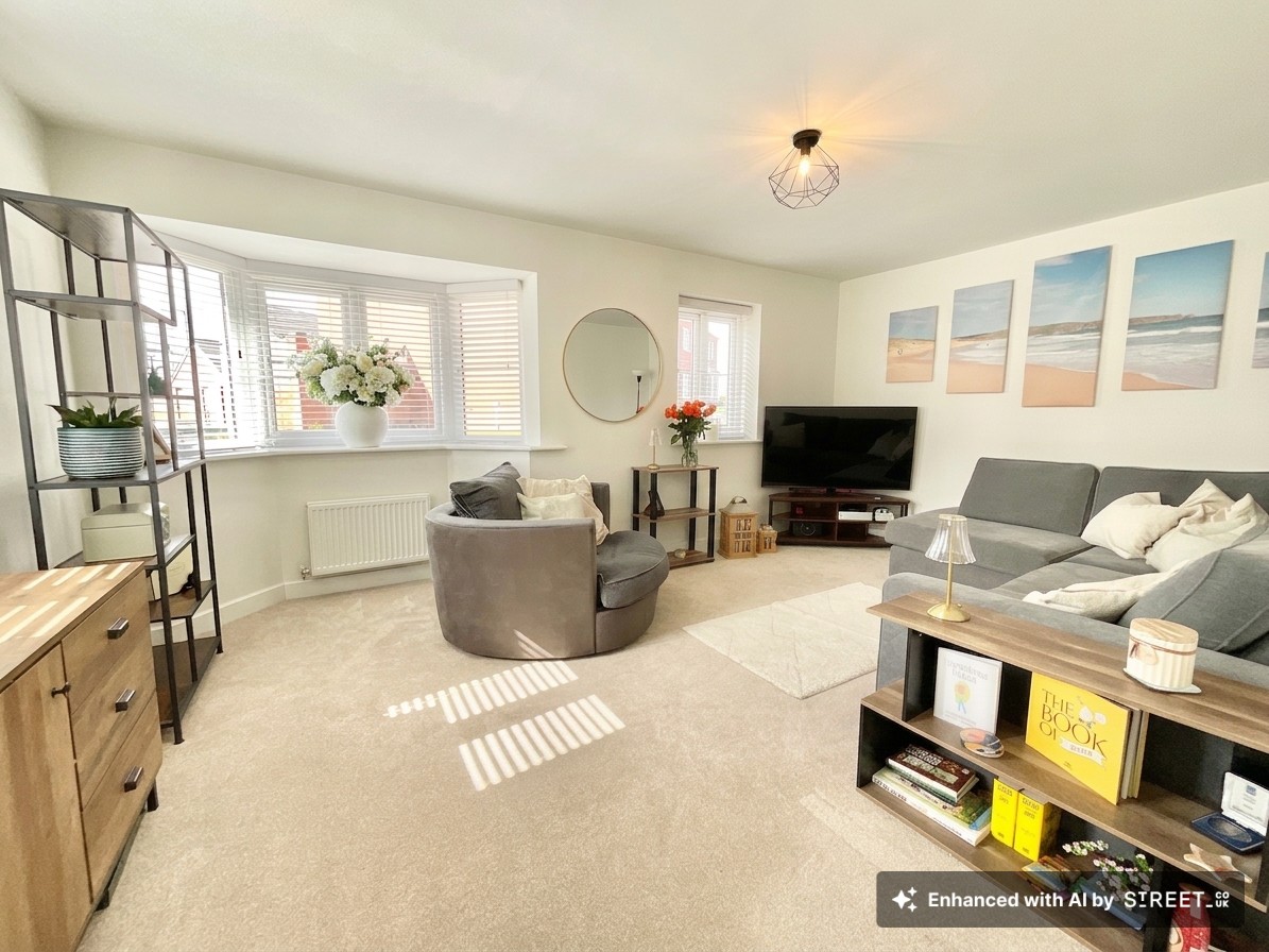 Step inside the entrance hall and you’re immediately welcomed by a bright, spacious living area, where elegant bay windows frame peaceful views across the estate’s park, filling the room with natural light and creating a warm yet contemporary feel. With convenient access to a ground floor W/C, perfect for guests and residents to use.