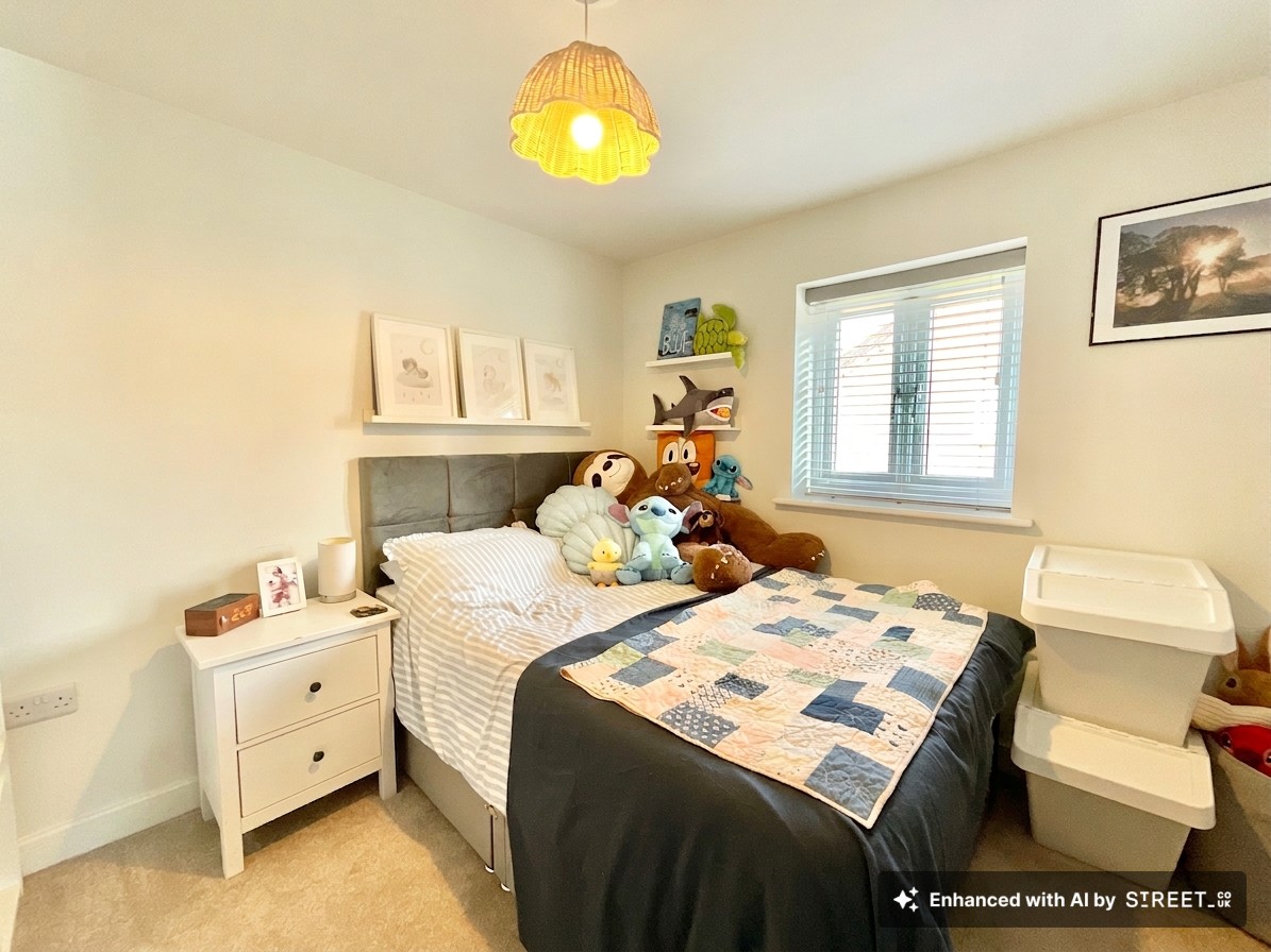 Completing the upper floor is an additional double bedroom, currently arranged as a children’s room, offering ample storage and plenty of room to grow.