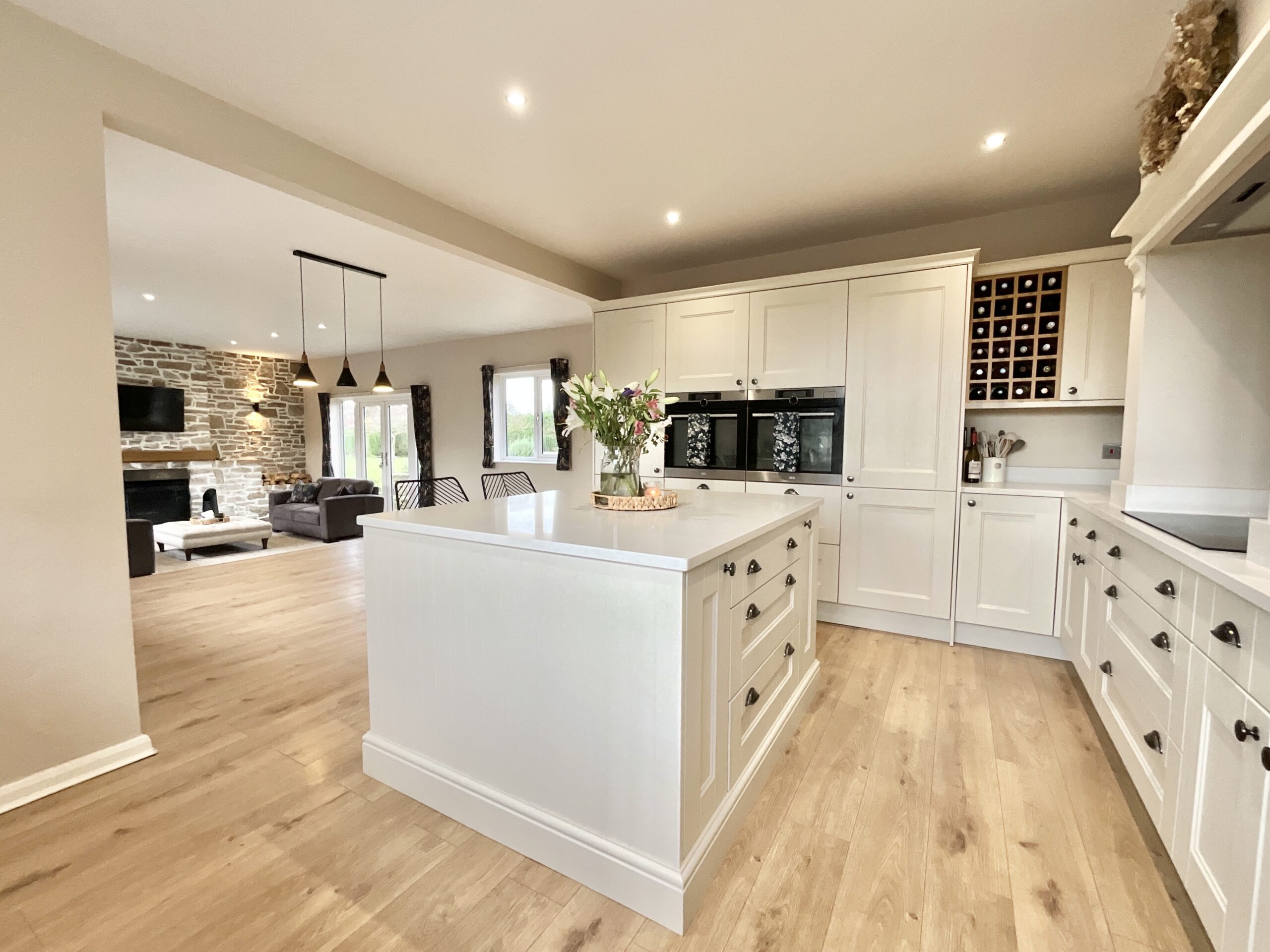Stunning renovated 4/5 bed detached bungalow on 0.5 acre. Open plan living, luxury kitchen, two bathrooms, versatile spaces, large gardens, garage, ample parking. Rural, tranquil location.