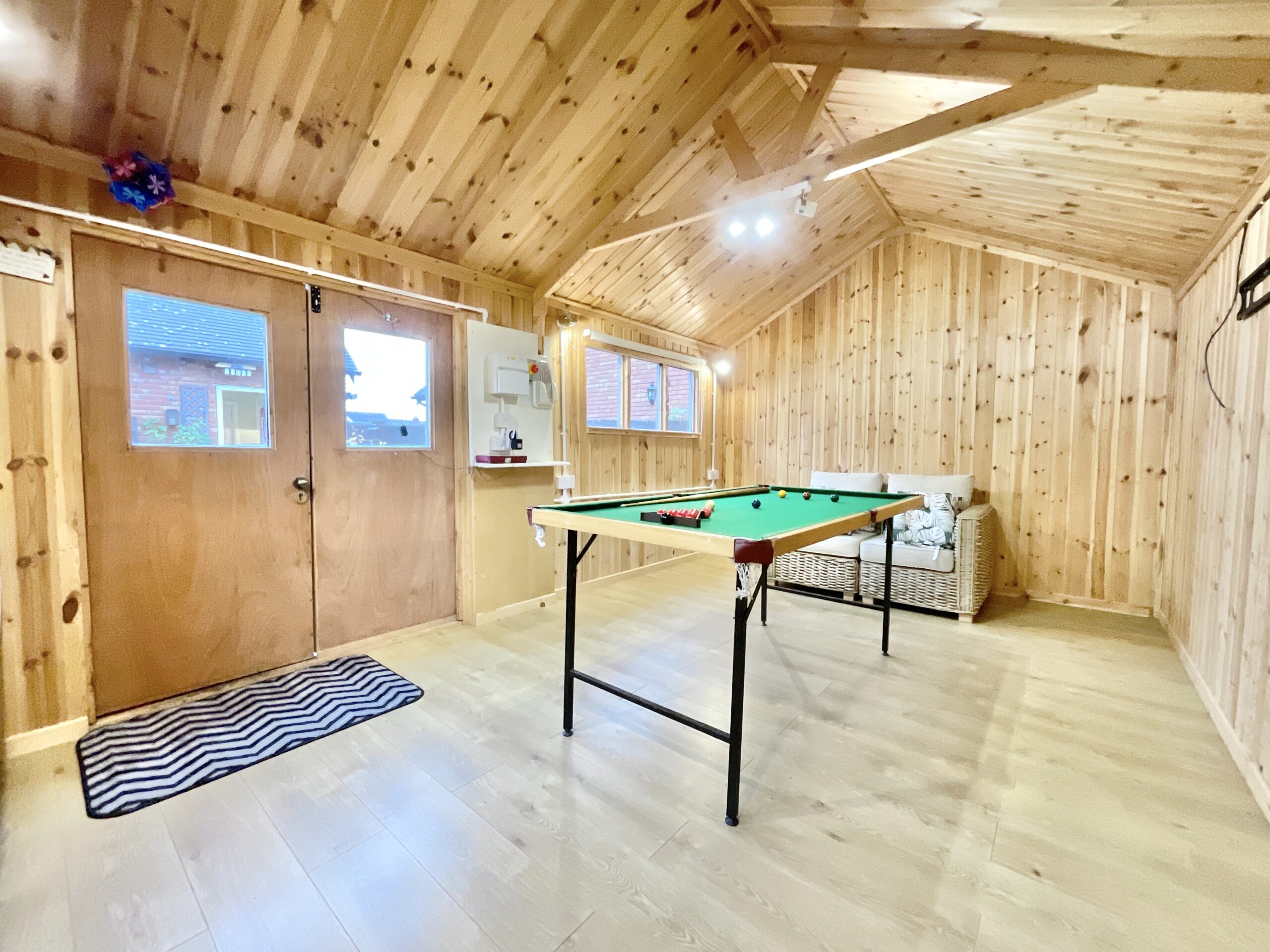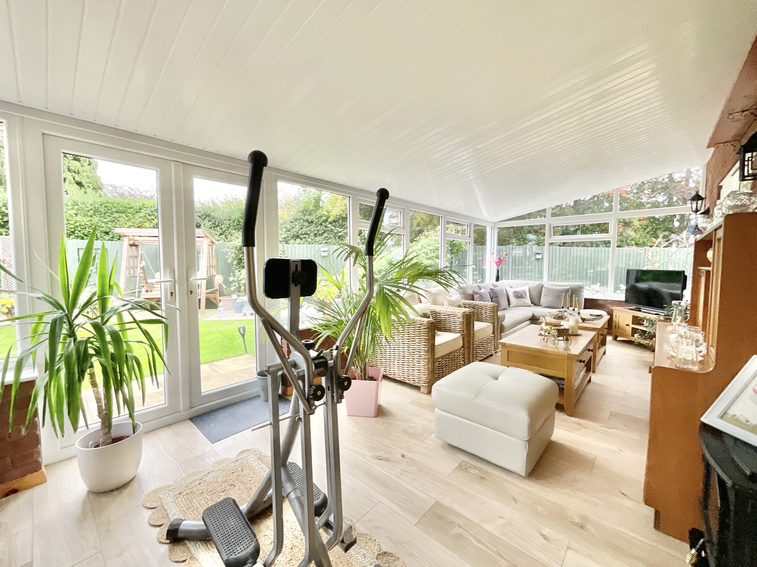 Outside, the expansive, landscaped garden is your personal willow grove with lush lawns, mature trees, vibrant flower beds, and multiple decked and patio areas make it perfect for lazy afternoons or lively gatherings. The conservatory, with its charming brick feature wall, lets you enjoy the greenery year-round. Practical touches abound too, from a double garage and driveway parking to a summerhouse and a fully-equipped garden room with electrics, lighting, and heating, ready to become your home gym, art studio or games den.