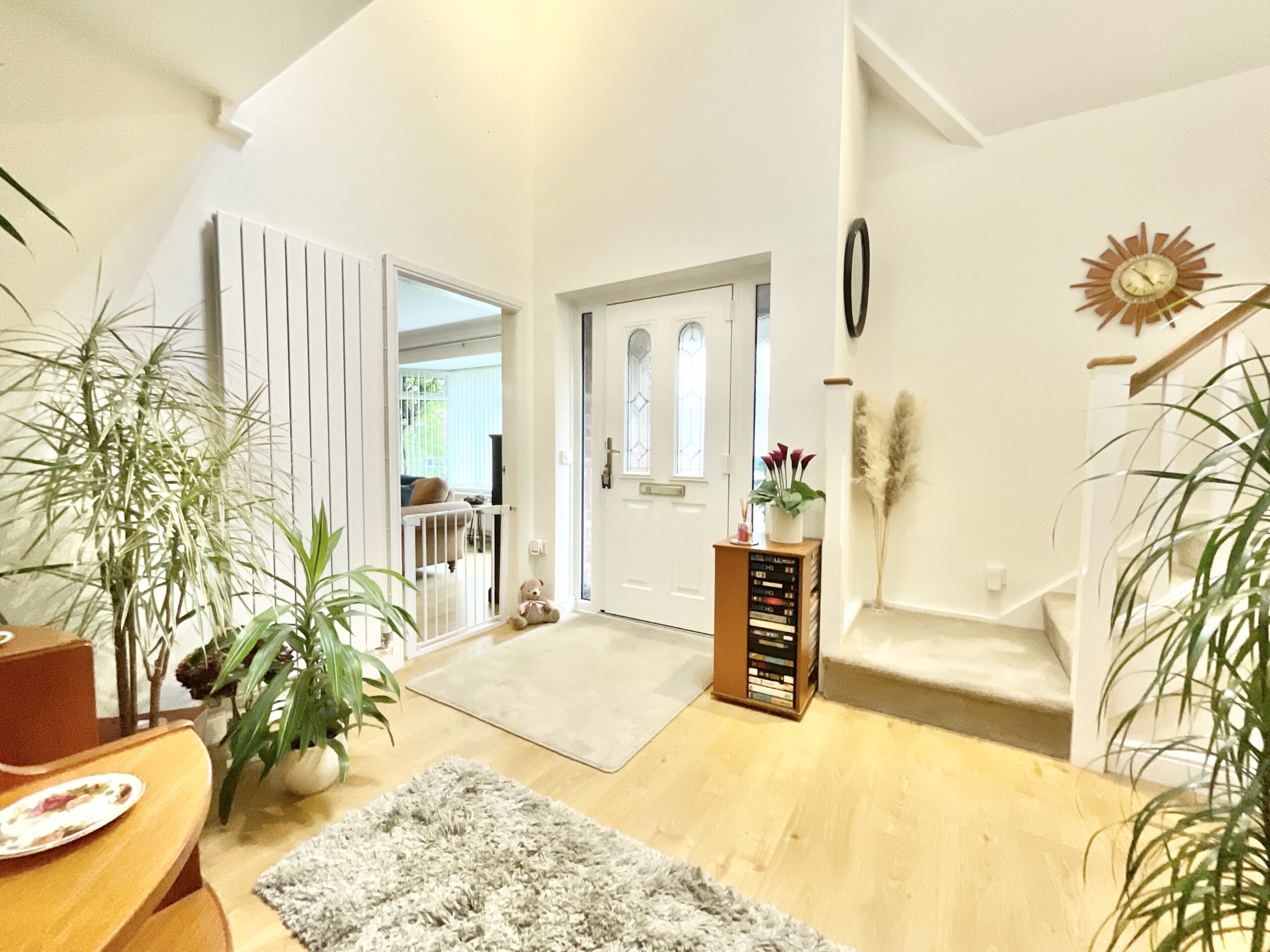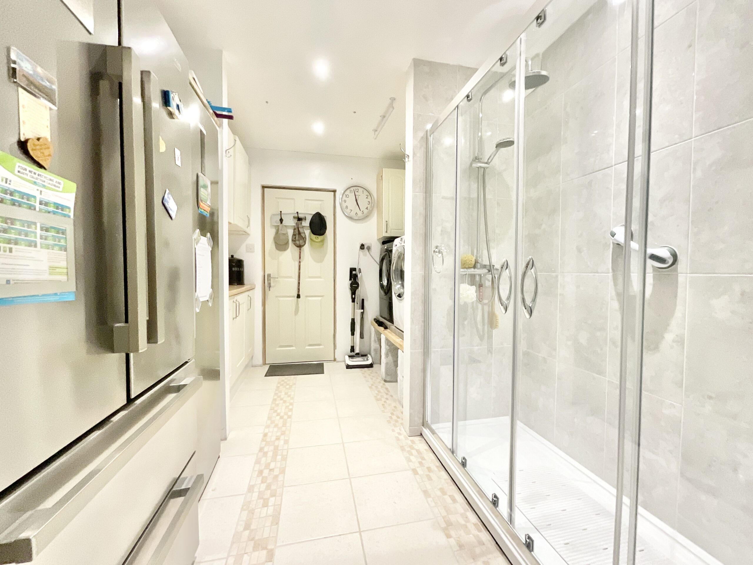 Step inside and you’ll be instantly swept away by the bright, airy entrance hall, where elegant wood flooring and a statement staircase set the tone for the stylish spaces beyond. Flowing branches of living areas unfold, from a spacious lounge with a cosy log burner and bay window, to a sun-soaked conservatory that spills effortlessly into the garden through French doors. At the heart of the home, the open-plan kitchen and dining area is where family and friends naturally gather, boasting an array of modern units, integrated appliances and generous prep space that makes entertaining a breeze. A utility room branches off the kitchen for ultimate convenience, complete with a second utility/wet room, perfect for muddy boots or pampered pups, and internal garage access.