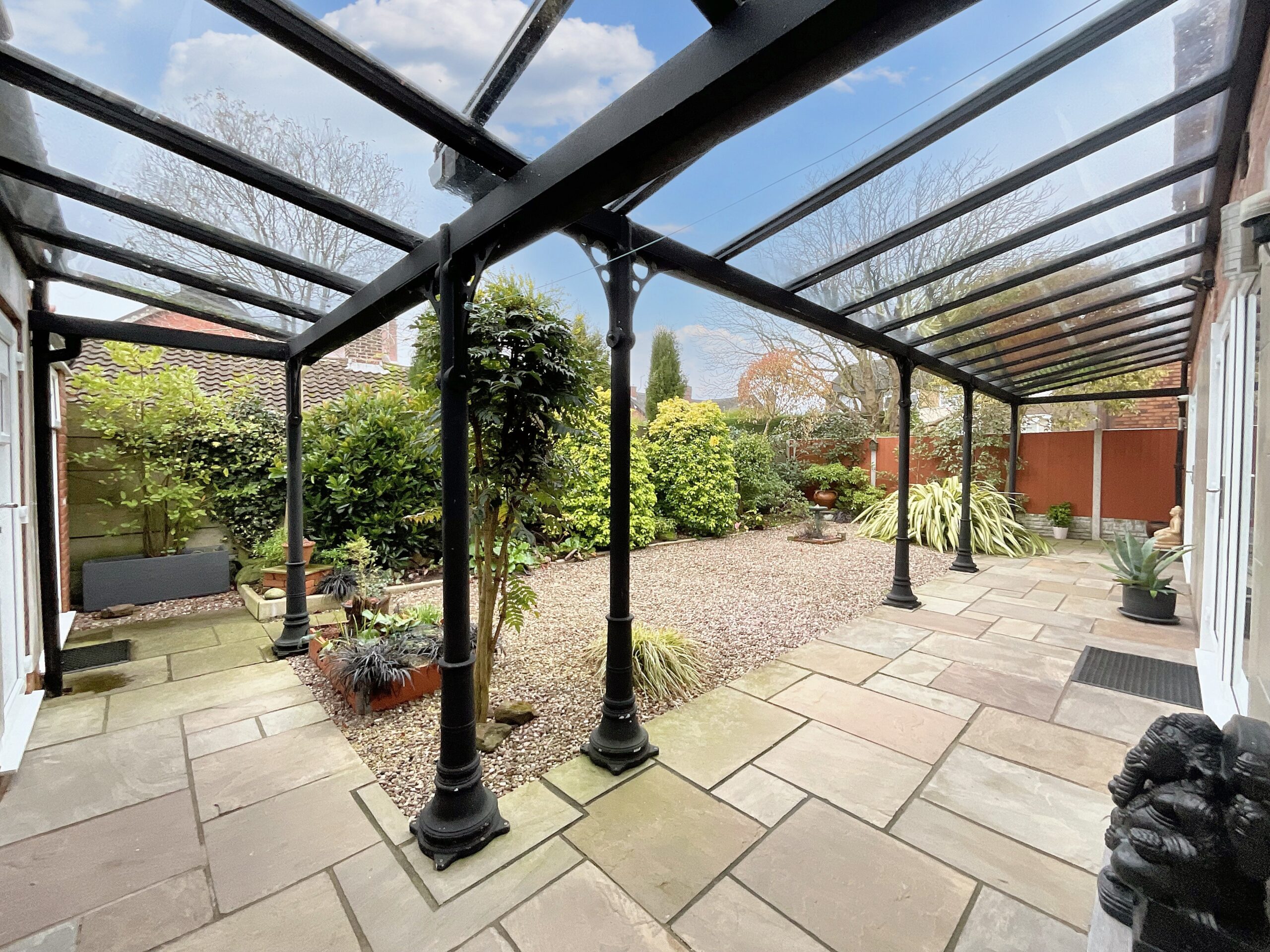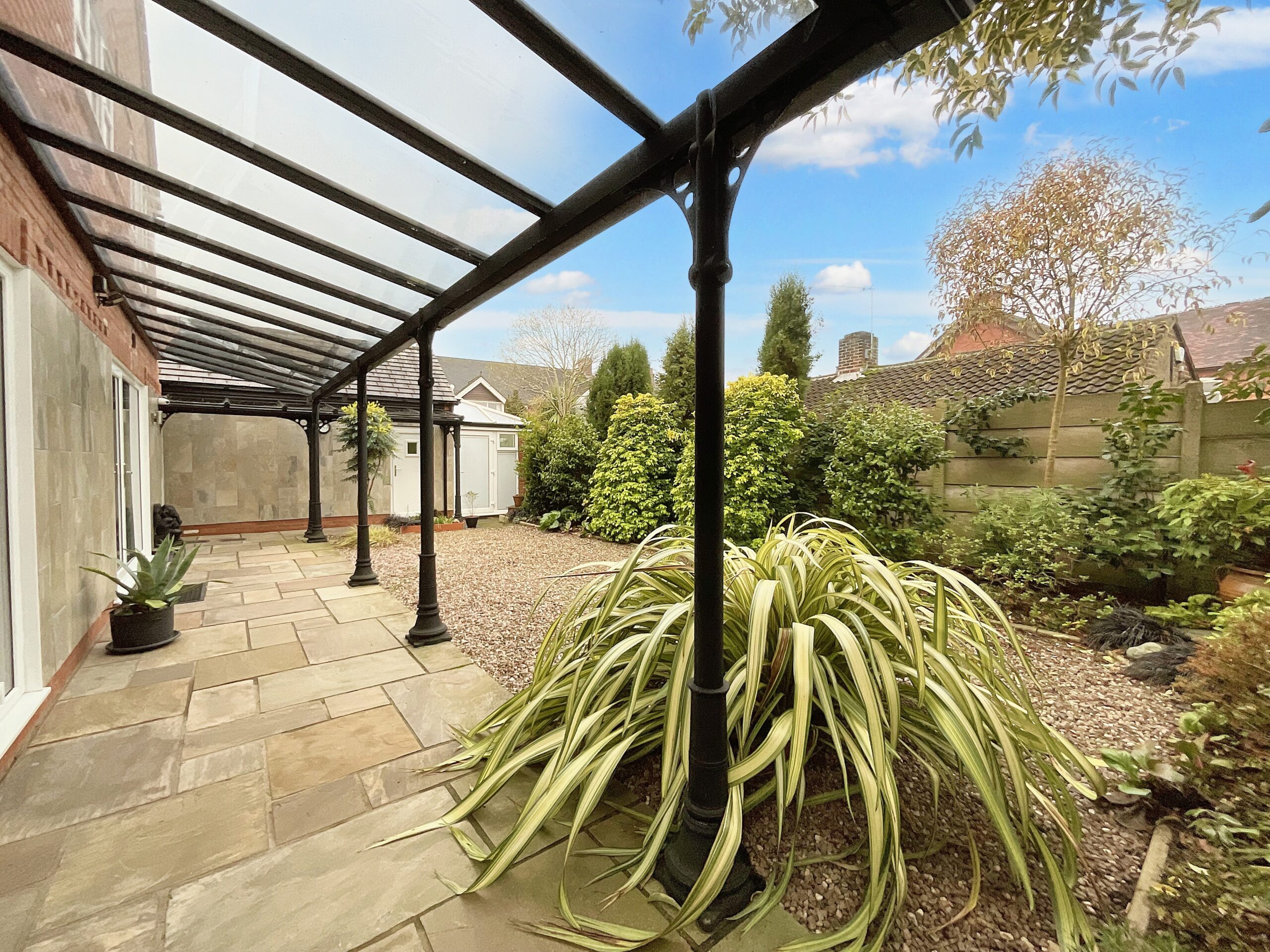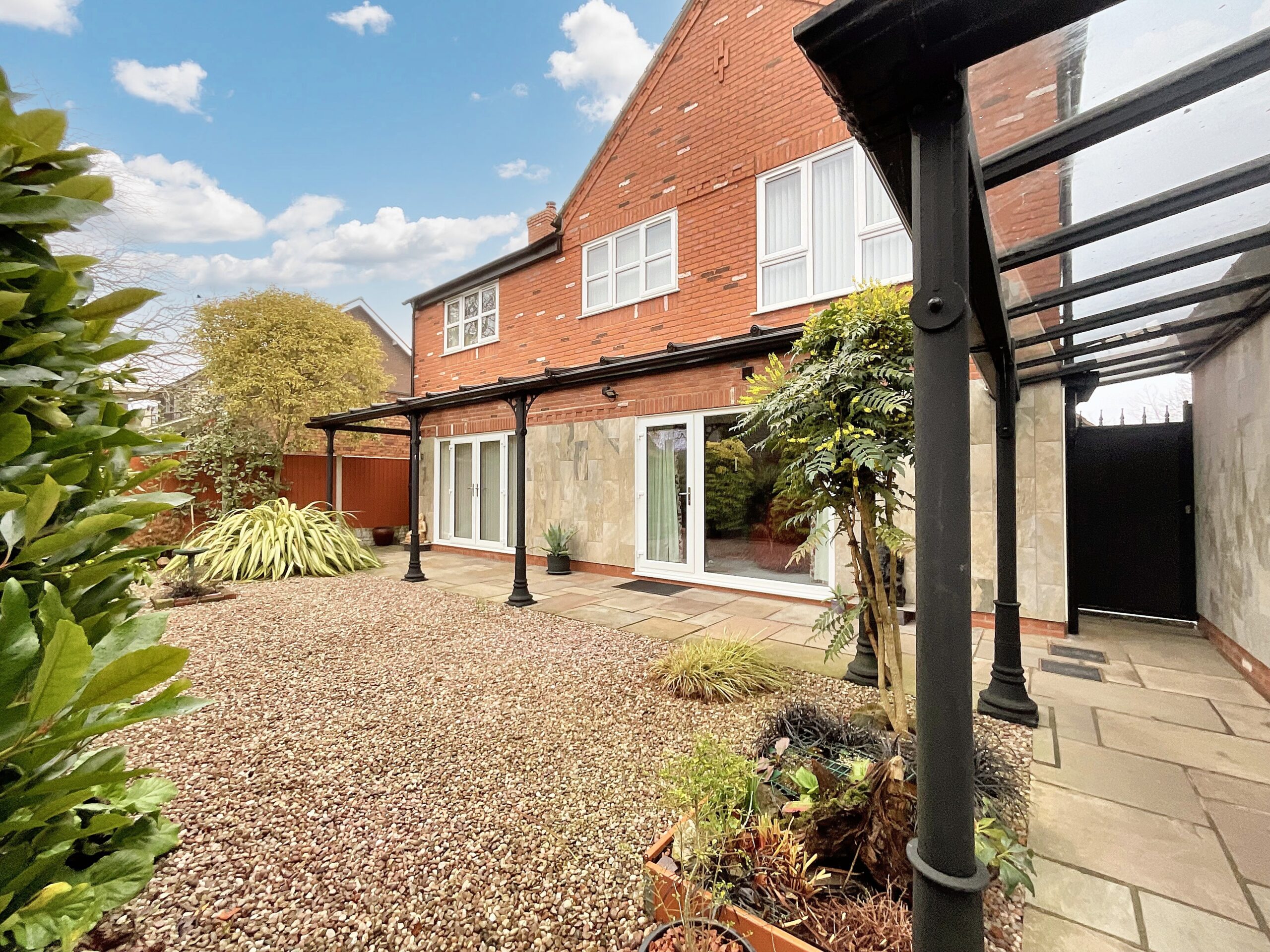 4. Low-maintenance rear garden with patio and gravelled seating space, and a wraparound verandah. Iron electric gated entrance leading to driveway and single garage.