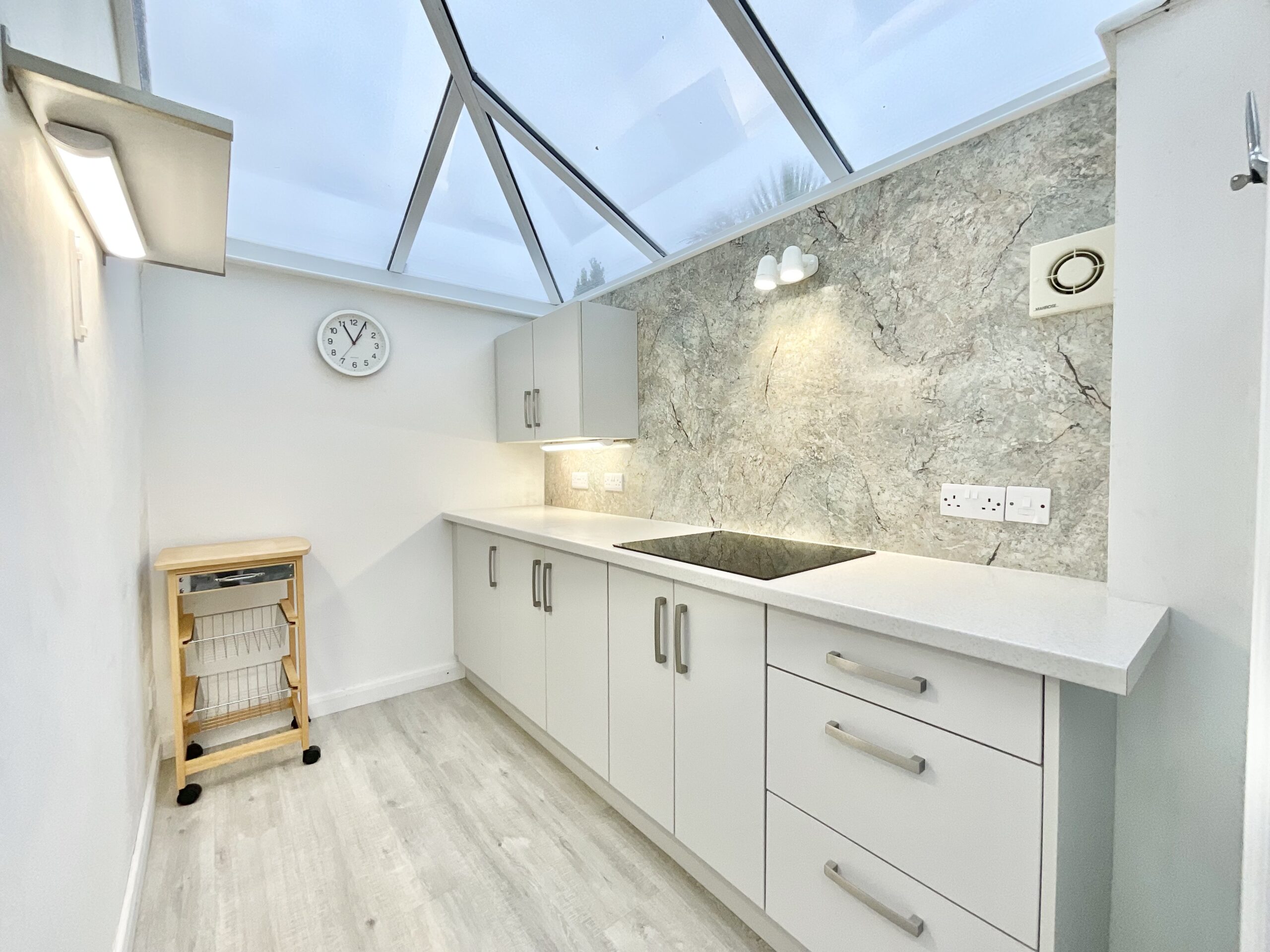 Externally, a South-West facing garden provides a home for all things entertaining. Perfectly designed for low-maintenance upkeep, this garden offers gravelled and patio seating space, along with a wraparound verandah and separate garden-kitchen to ensure you never have to cancel family BBQs. To the front, a further low-maintenance front garden, a driveway with off-road parking, a single garage that’s perfect for secure storage.
