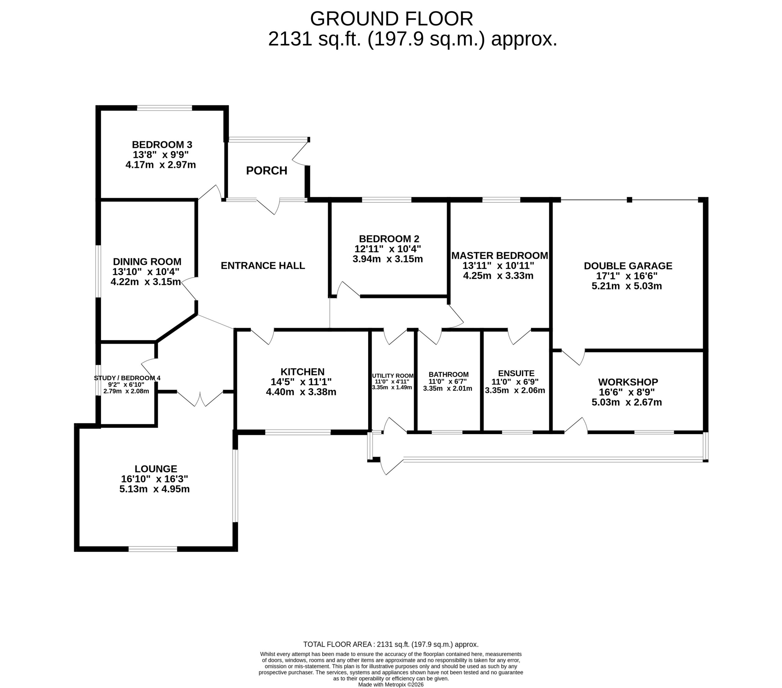 A major feature of the property is the substantial double garage and adjoining workshop, ideal for car enthusiasts, hobby use, storage, or those running a business from home.