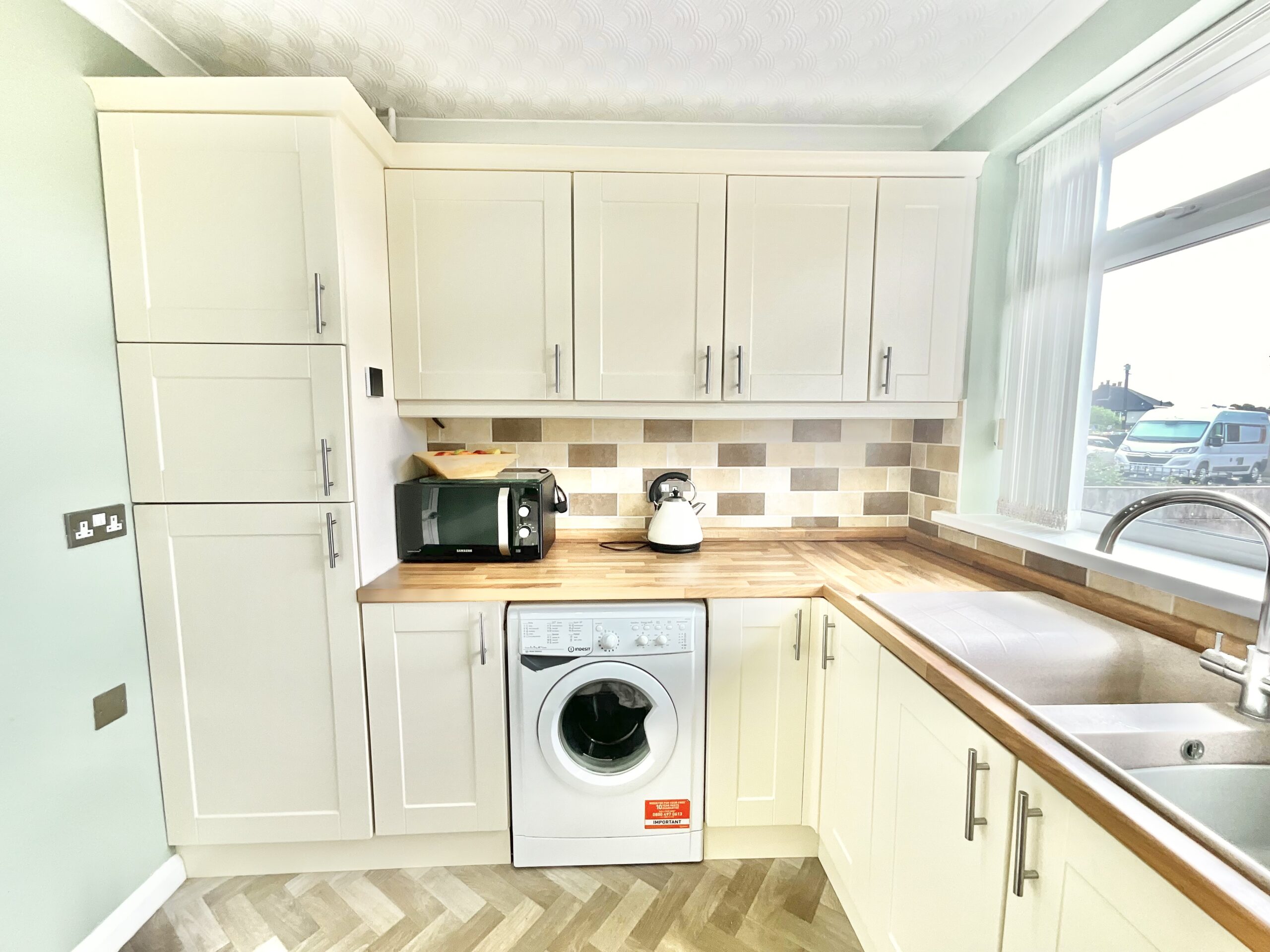 - A kitchen with classic cream shaker-style cabinets and a wood-effect worktop, it’s the perfect space for cooking up a storm. There’s even a built-in drinks rack for your favourite tipple.