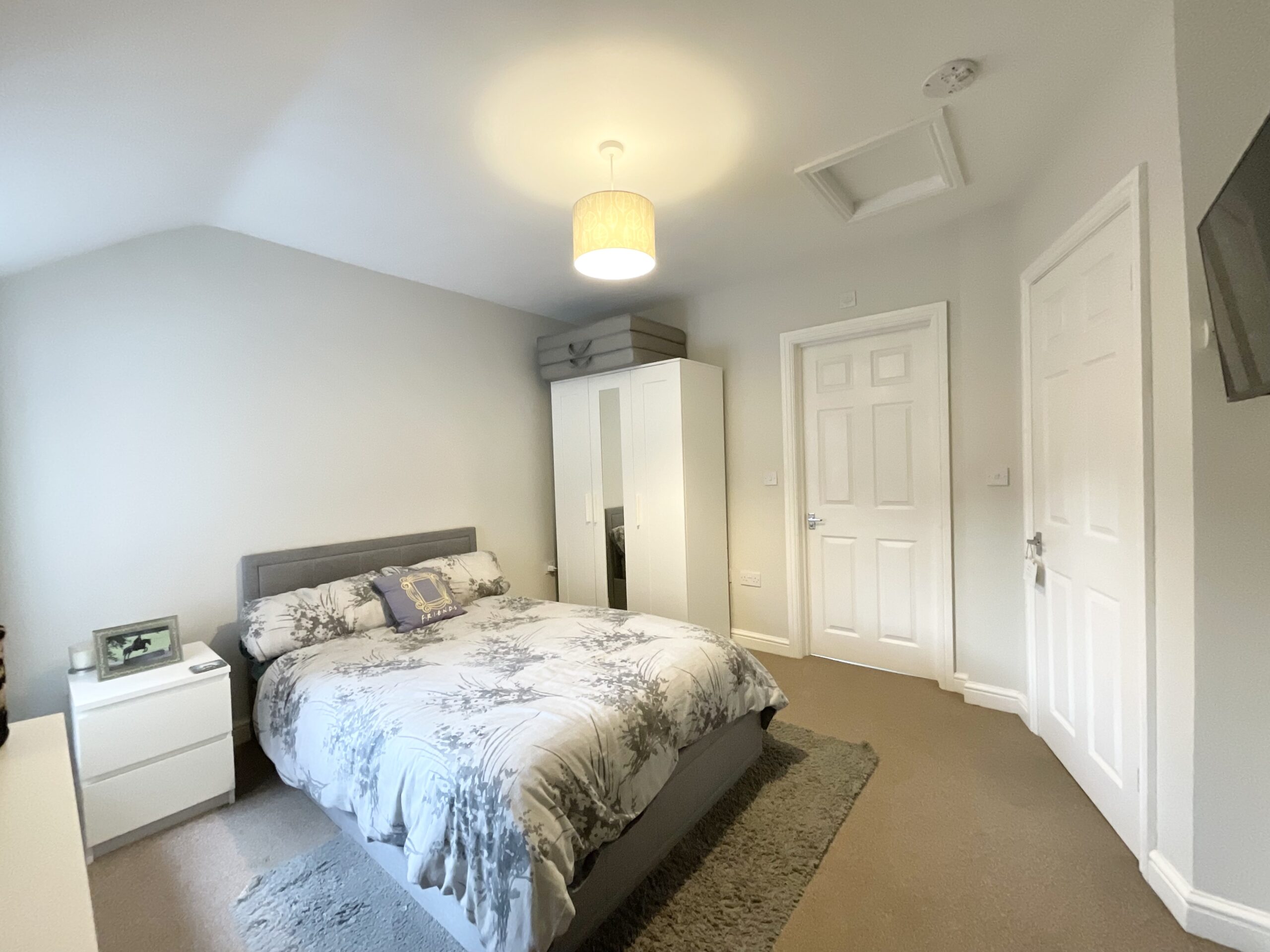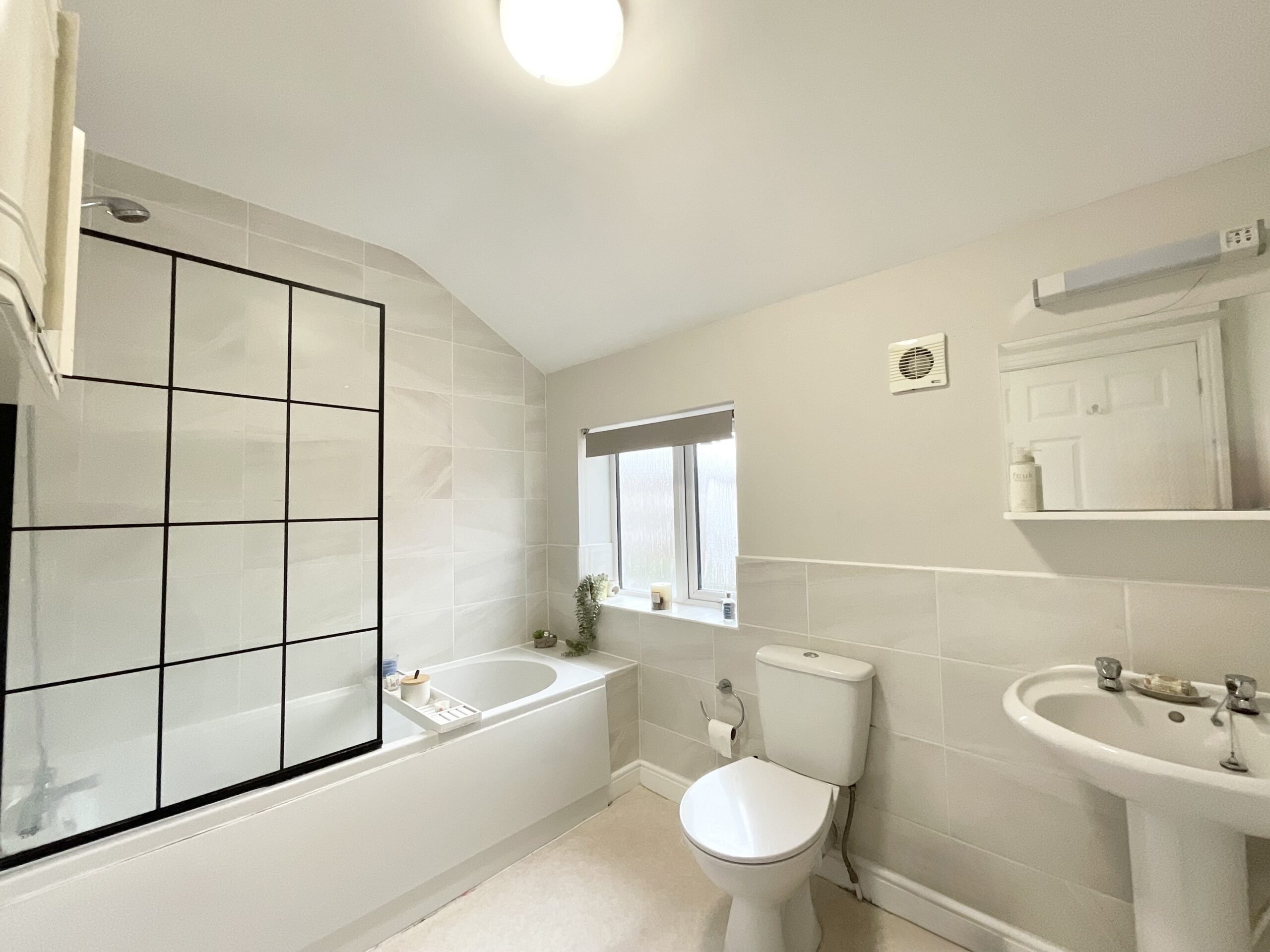 - Spacious yet snug bedroom upstairs with a convenient en-suite bathroom featuring a bath & shower combination, pedestal basin & WC.