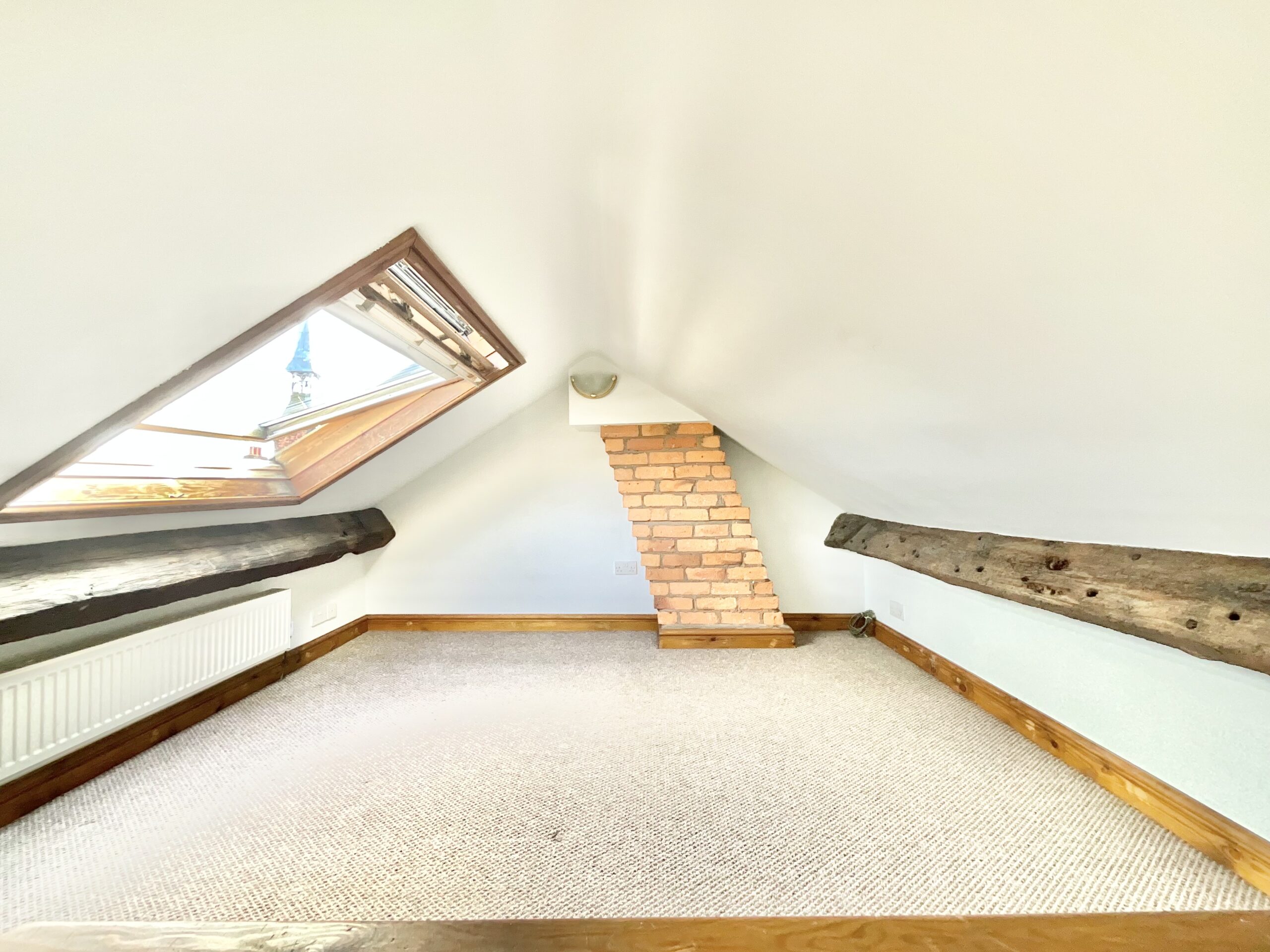 A timeless charmer! Plant the seed and watch your life begin to blossom. Oak Street holds sturdy routes with charm, character and modern touches throughout. Located in the beating heart of Cheadle, you will find supermarkets, shops and eateries. There’s some great schools in the area, with strong commuter links and angelic views of the church. Step inside your cosy living room, just inviting you to kick off those shoes and snuggle up under a blanket for the evening. Featuring character exposed brick walls and a fireplace surround topped with thick wooden beam giving a real cottage like feel. Then you have the heart of the home, the kitchen. Sleek white shaker cabinets with lots of storage topped with a grey stone effect work top. From there a door leads down to the cellar perfect as additional storage or a further living area. Upstairs you have two bedrooms, a master and a good sized single, perfect as a nursery, dressing room or home office. The master bedroom boasts a storage cupboard and stairs leading up to the attic conversion. A further versatile room that’s light and bright thanks to the large skylight with views of the church. Upstairs is complete with a family bathroom sporting a shower over bath combo. Outside there’s a neat low maintenance patio area perfect for reading a book with your favourite tipple. Could Oak Street provide you with some fresh routes? Book your viewing today.