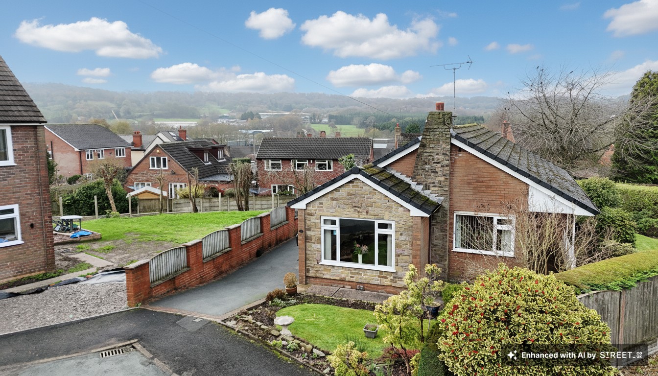 Tucked away like a delightful secret at the end of a quiet cul-de-sac, stunning countryside views set the scene at Patch Meadow. Located in Cheadle, here, you’re moments from supermarkets, shops, and eateries, yet just a stone’s throw from tranquil countryside. Step into the hallway, and to your immediate left is the bright and open plan lounge/diner. Wide windows flood the space with natural light, complementing the cosy fire surround and offering ample room for a large dining table. It’s the perfect setting for both entertaining and unwinding. At the heart of the home sits the kitchen, lined with vibrant sea green cabinetry topped with crisp white worktops. There’s plenty of room for a breakfast table; an ideal spot for morning coffee and croissants. This bungalow offers three generously sized double bedrooms, providing space and flexibility. A sleek wet room completes the interior. Outside, a large tandem tarmacked driveway and garage provide excellent parking and storage, particularly handy on frosty mornings. Surrounding the property are well-kept gardens to the front, side, and rear, thoughtfully landscaped with patio areas, lush lawn, mature shrubs, neatly clipped hedges, and a convenient pathway encircling the home. Could Patch Meadow be your next adventure? Book your viewing today.
