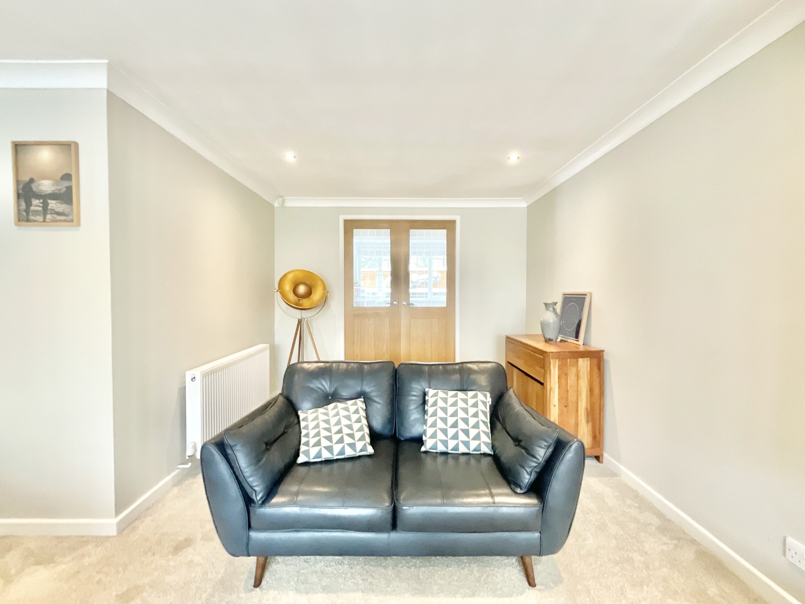 Step inside to a bright and spacious entrance hall leading you throughout this home, firstly to a generously sized living room with a complimenting bay window, feature media wall, and glazed oak French doors leading into a versatile second reception room that is currently used as a playroom and offers a seamless flow into the garden. The converted garage now offers a convenient office space. Continue to an open-plan kitchen/breakfast room with an L-shaped kitchen with shaker-style base and overhead cabinetry with plenty of storage, integrated appliances and a further storage space. Completing the ground floor is a W/C and access into a handy storage room.