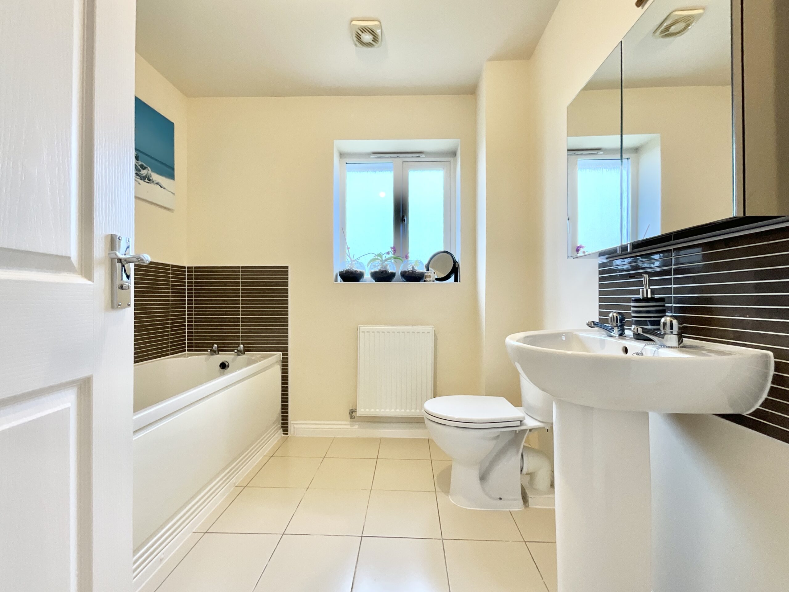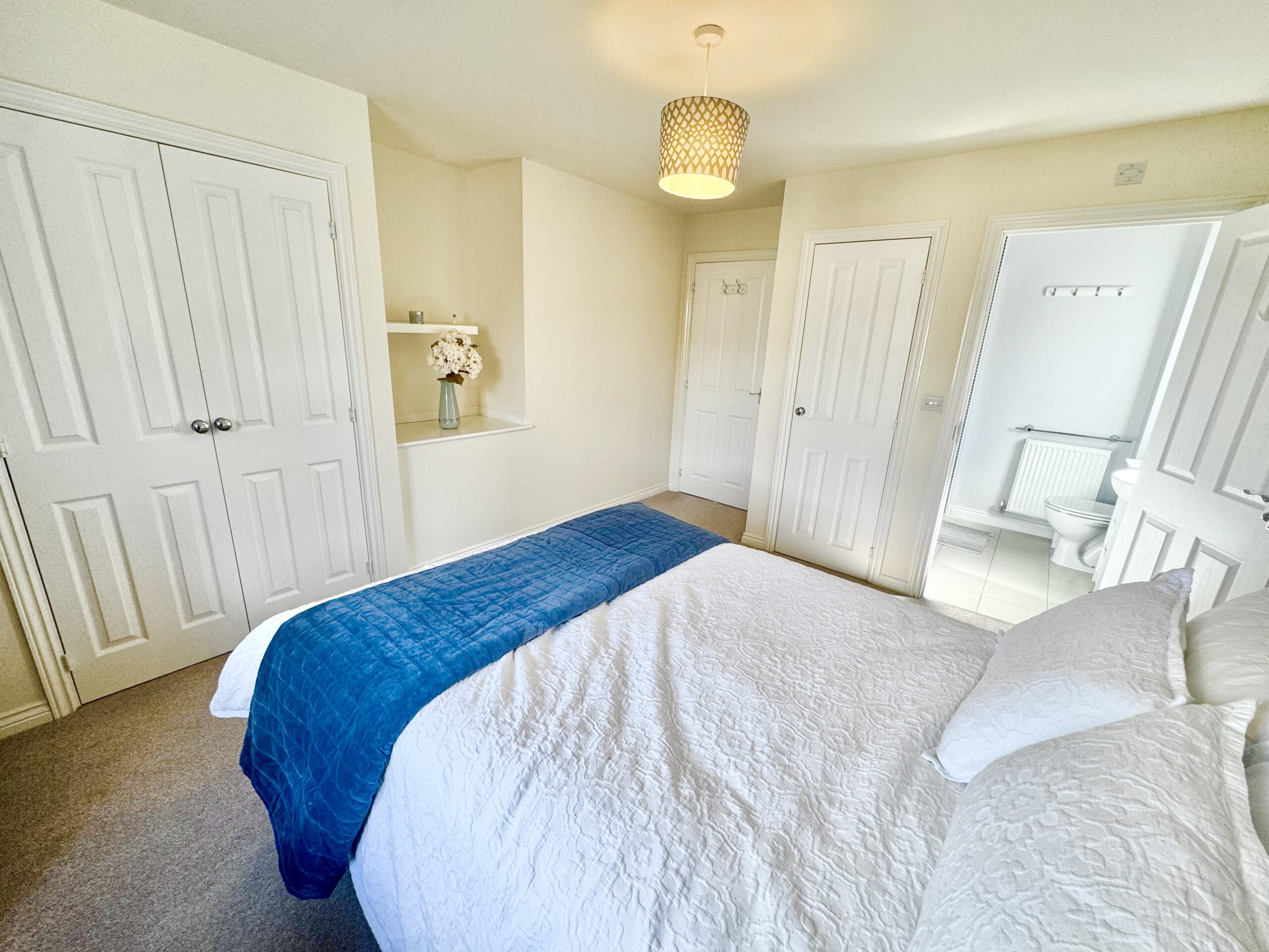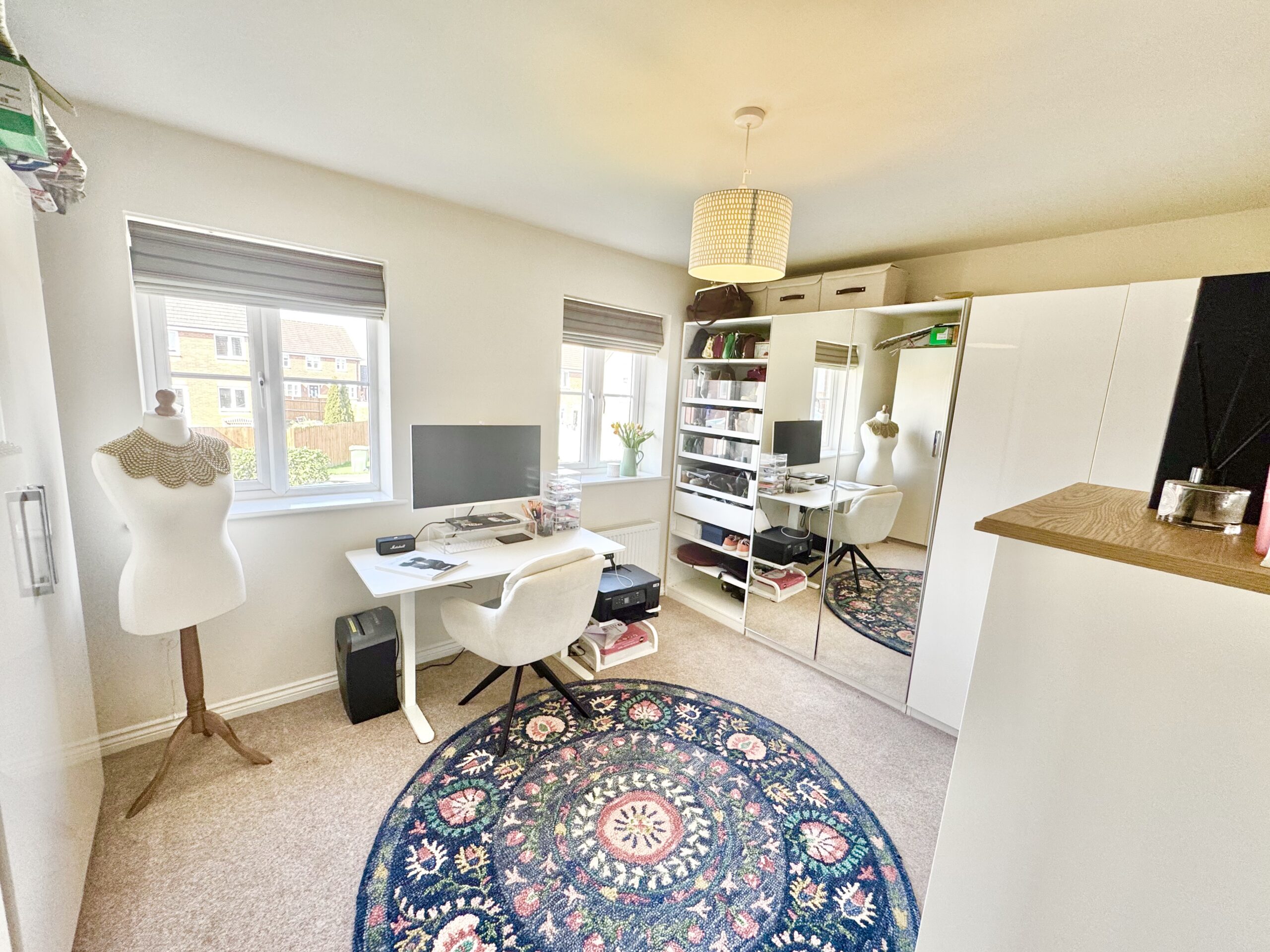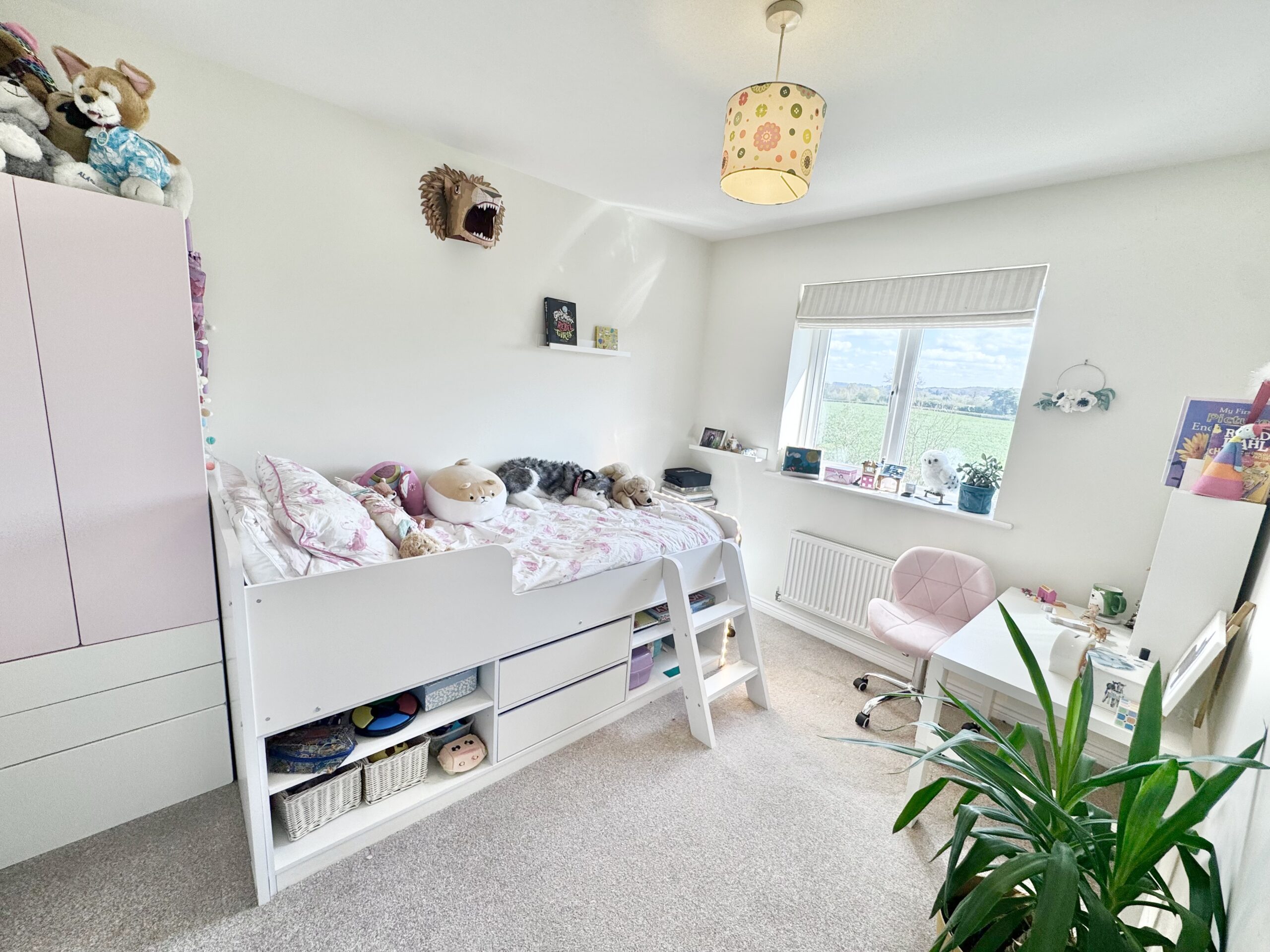 Upstairs, the landing provides access to all principal rooms. The master bedroom is a well-proportioned sanctuary with built-in wardrobes, additional storage, and a private en suite. Bedroom two is equally spacious, featuring dual front-facing windows and access to a Jack and Jill en suite, shared with bedroom three. Bedroom three enjoys a rear aspect with truly breathtaking, far-reaching countryside views, an outlook that stretches as far as the eye can see. The family bathroom is fitted with a modern three-piece suite, while a versatile fourth bedroom or office also benefits from elevated panoramic views.
