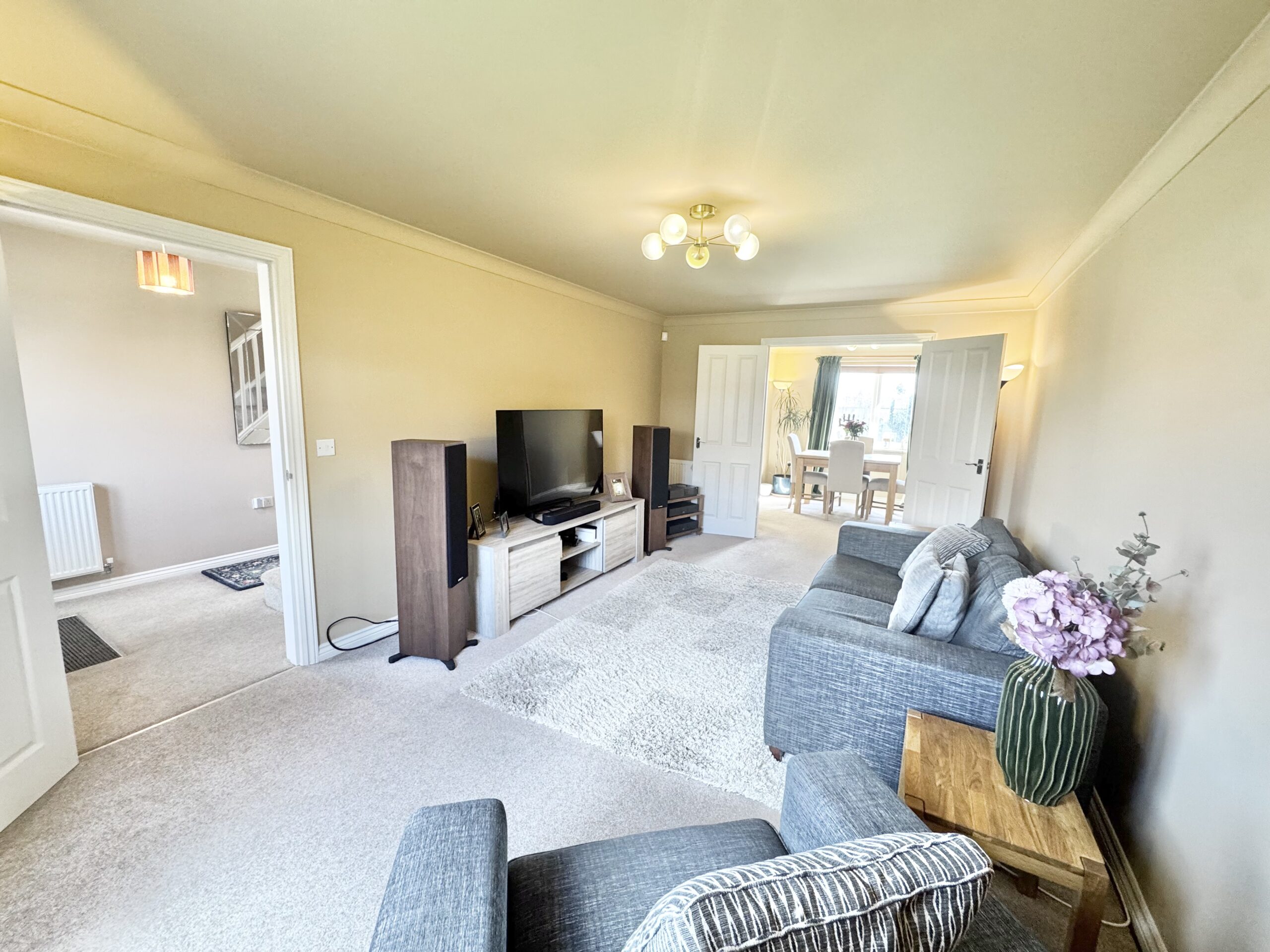 - The spacious lounge is perfect for movie nights with the kids or socialising with friends, connected by double doors to the dining room, which would also make a great play room.