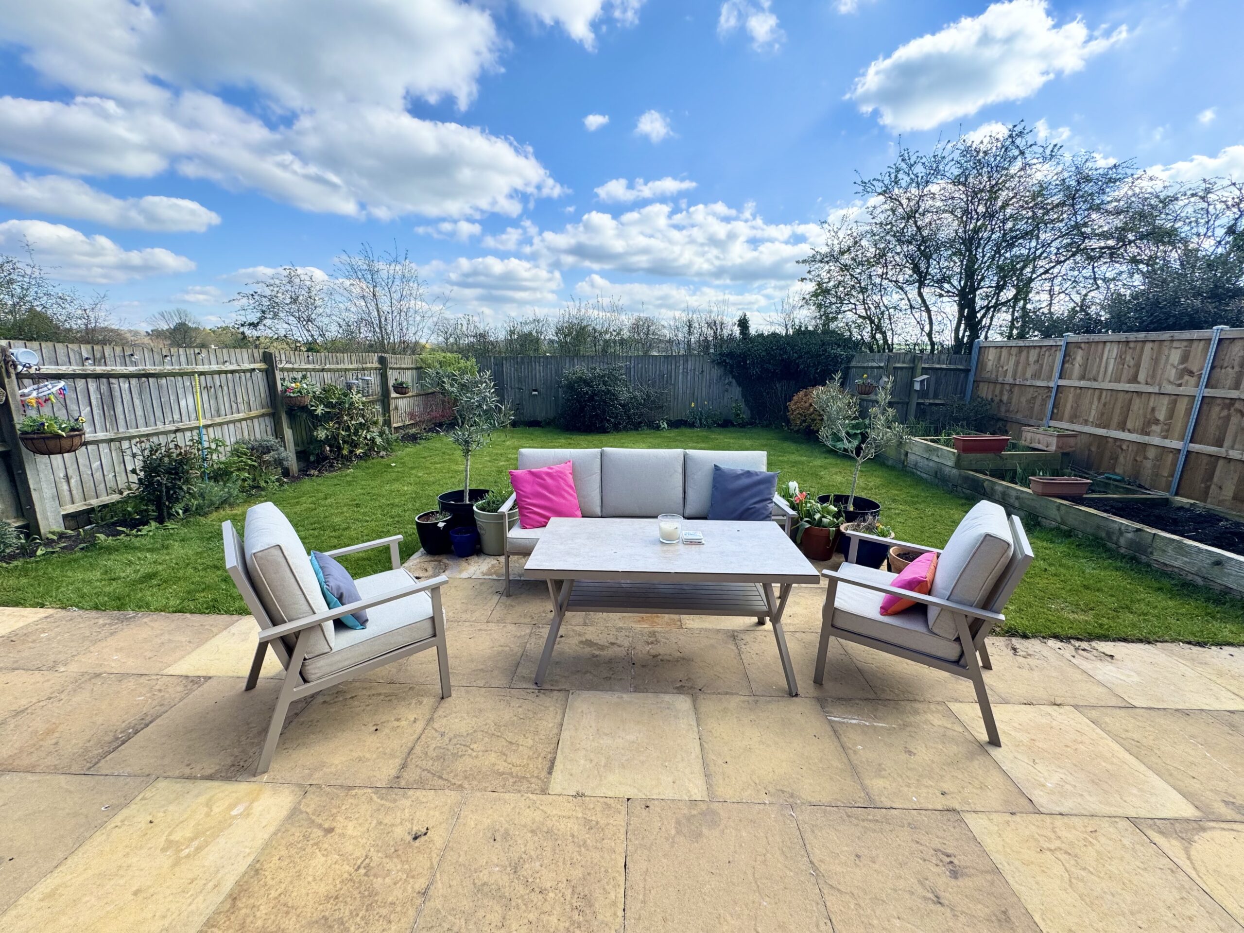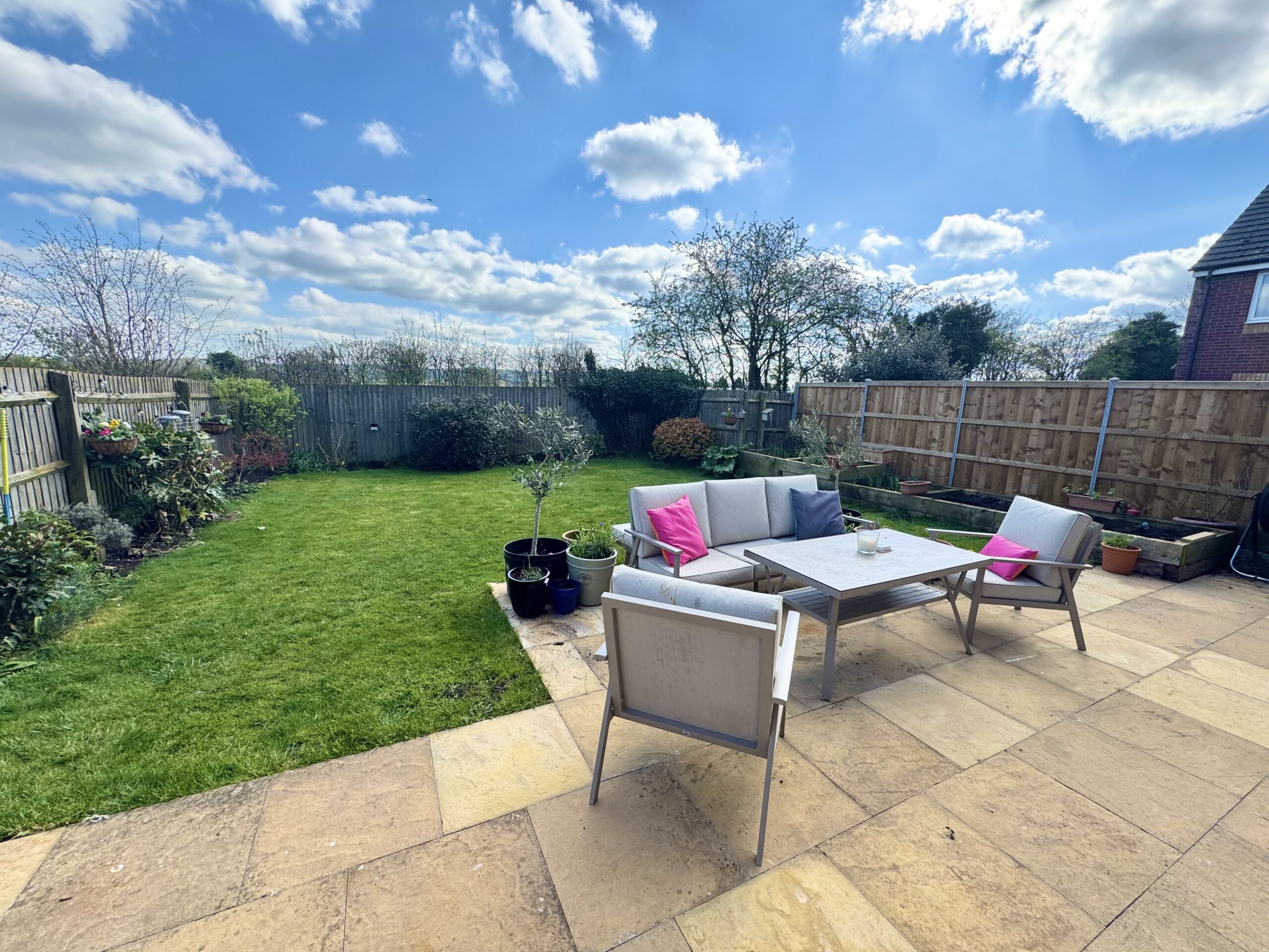 Outside, the property truly comes into its own. The rear garden is a sun-drenched, south-facing haven, perfect for relaxing or entertaining. A paved patio provides an ideal setting for long summer evenings, barbecues, and gatherings with friends and family, all framed by wood panel fencing. Beyond the boundary lies uninterrupted rolling countryside, offering a stunning and ever-changing backdrop that brings a real sense of peace and openness.