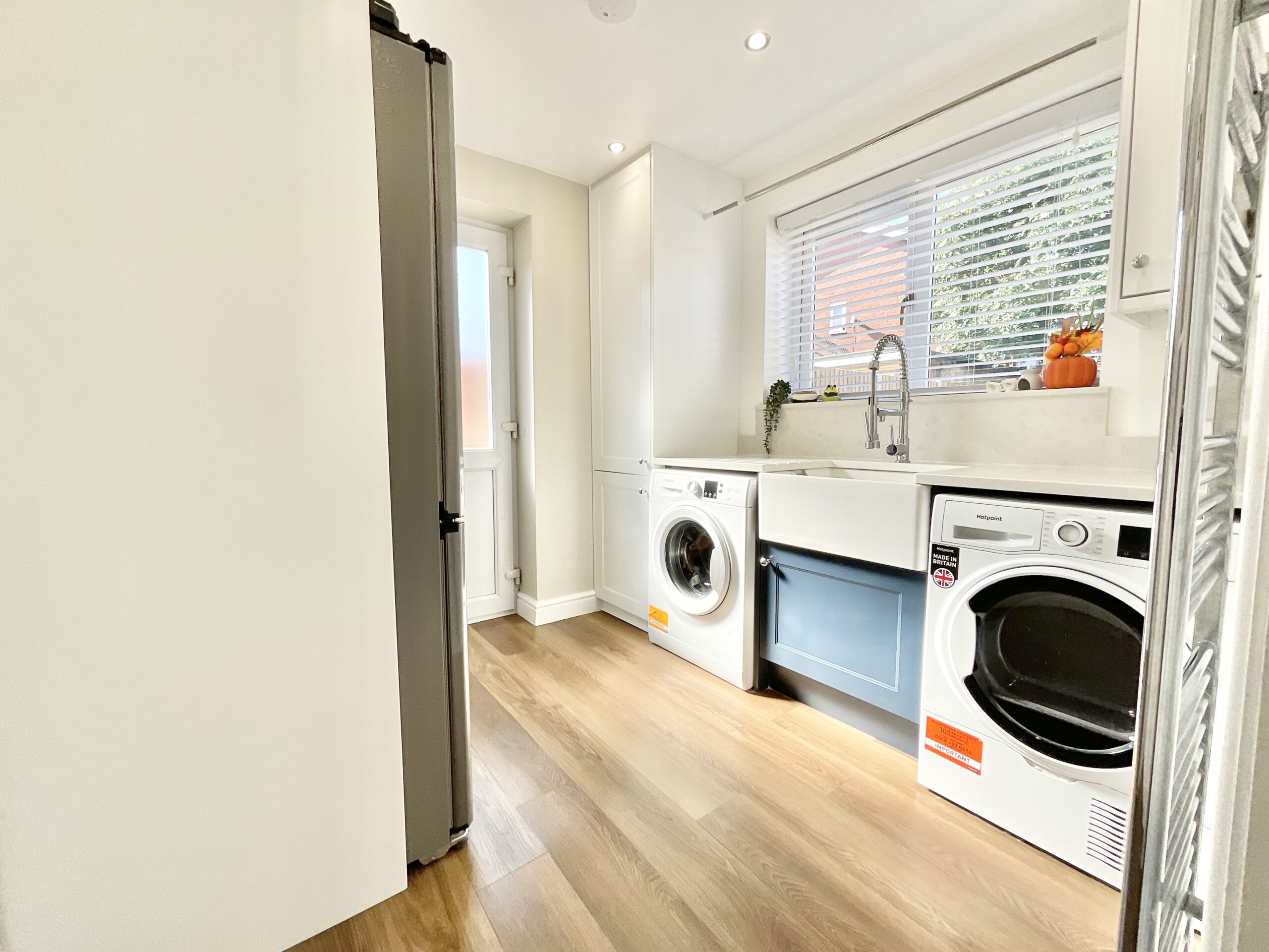 Step through the front door and into a bright entrance hall with elegant wooden flooring and modern lighting, the perfect start to your magical tour. Two spacious reception rooms await, ideal for family Quidditch match recaps, cosy evenings or entertaining fellow witches and wizards. At the heart of the home lies an open-plan kitchen and dining area worthy of feasts straight out of Hogwarts. Sleek cabinetry, gleaming countertops and integrated appliances make whipping up Butterbeer or pumpkin pasties a breeze. Bi-fold doors from the sunny garden room open directly to a beautifully landscaped garden and patio, perfect for outdoor banquets under the stars. A glowing sky lantern pours in natural light, while a handy utility room keeps the everyday chores tucked away. Need a study, a guest room or a place to brew potions in peace? The versatile ground-floor study/bedroom has you covered.