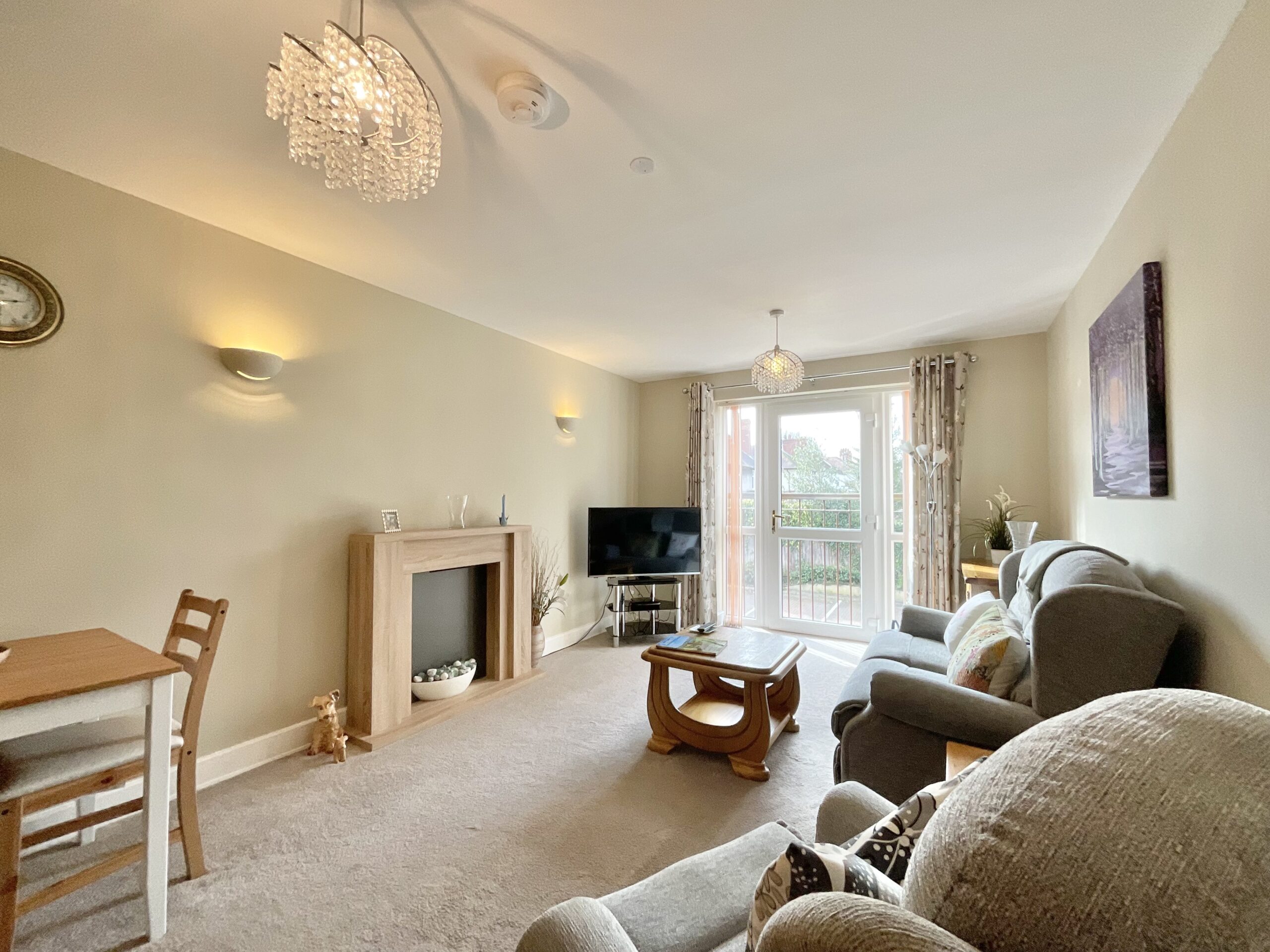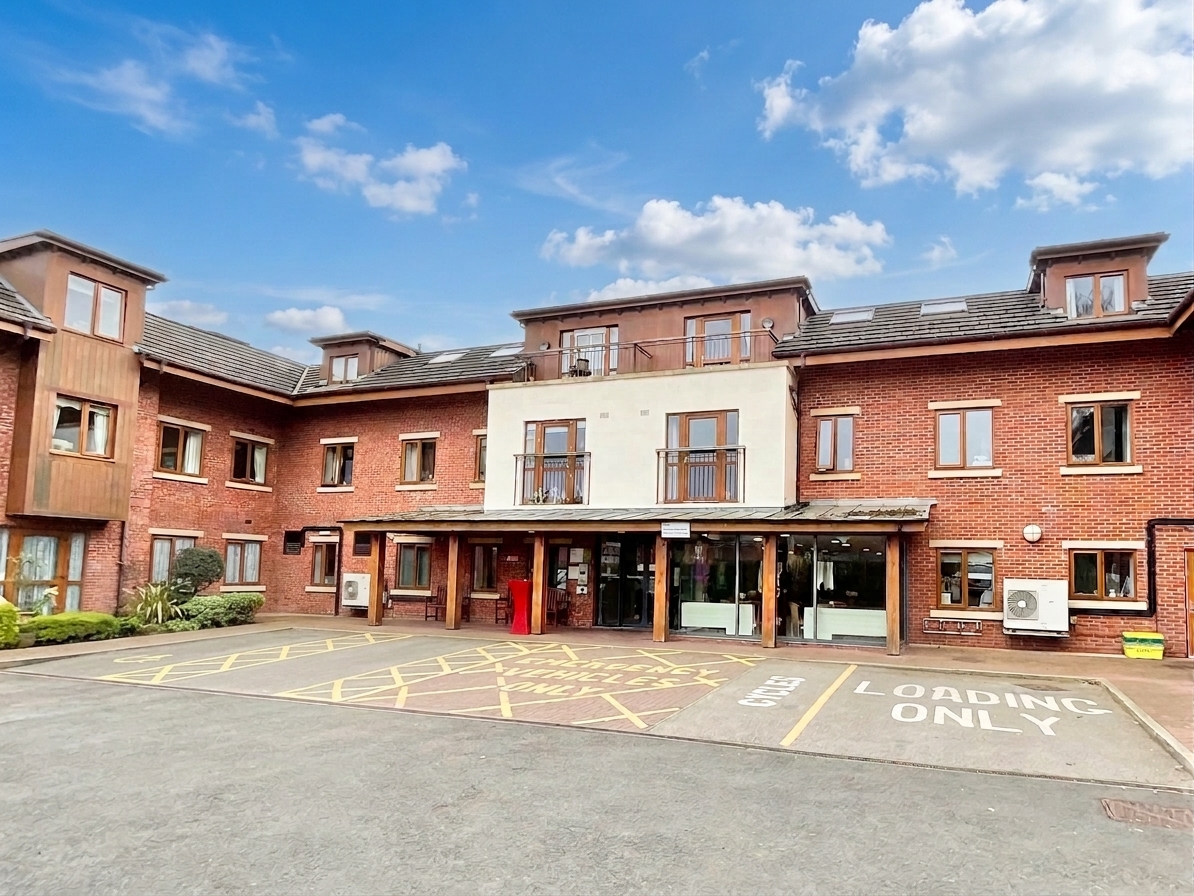 Spacious 2-bed first-floor apartment for over-55s in Nantwich. Open-plan living, Juliette balcony, wet room, communal lounge, bistro, lift, parking, no chain.