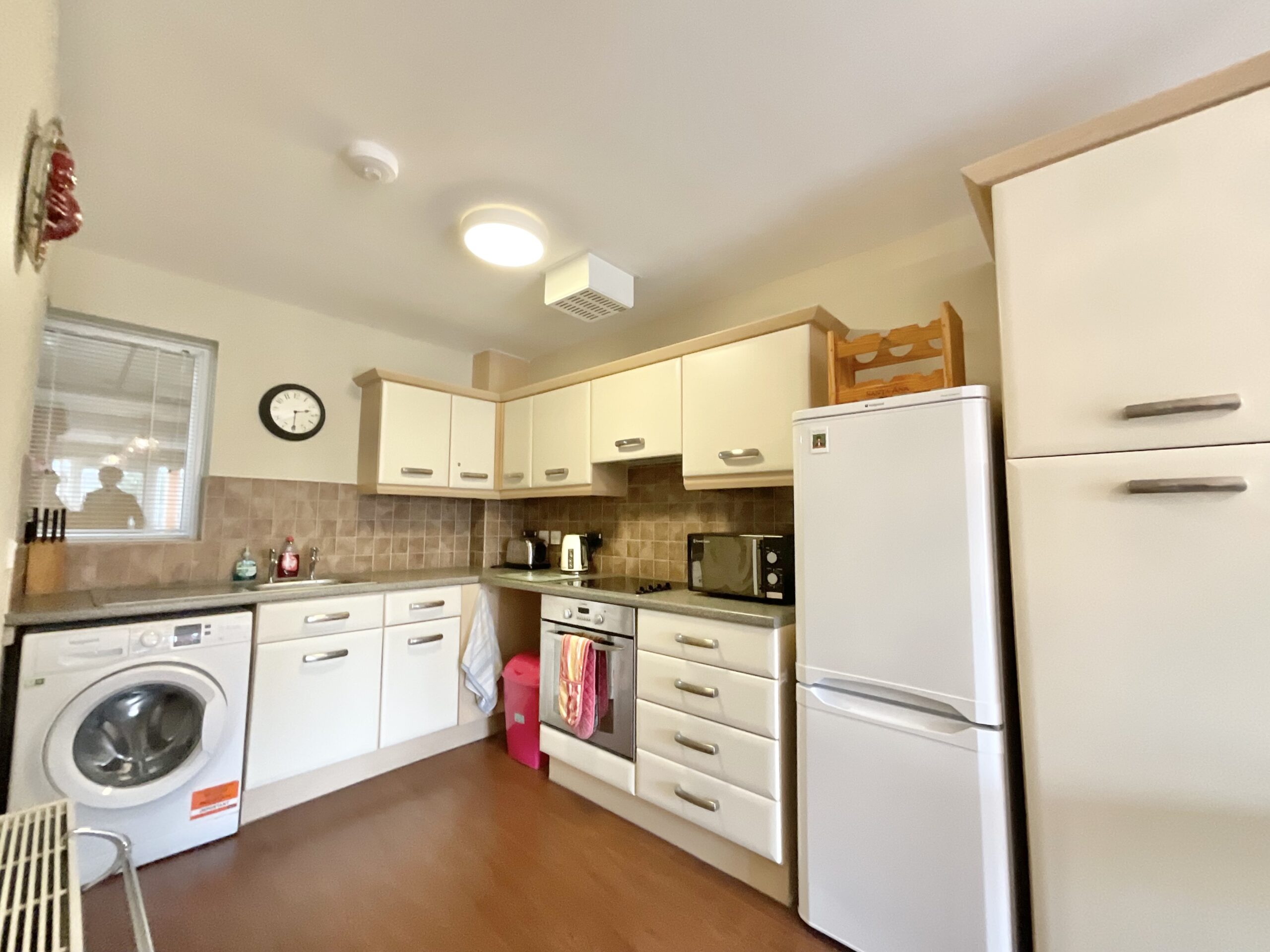 - Modern fully fitted kitchen with integrated appliances and space for white goods