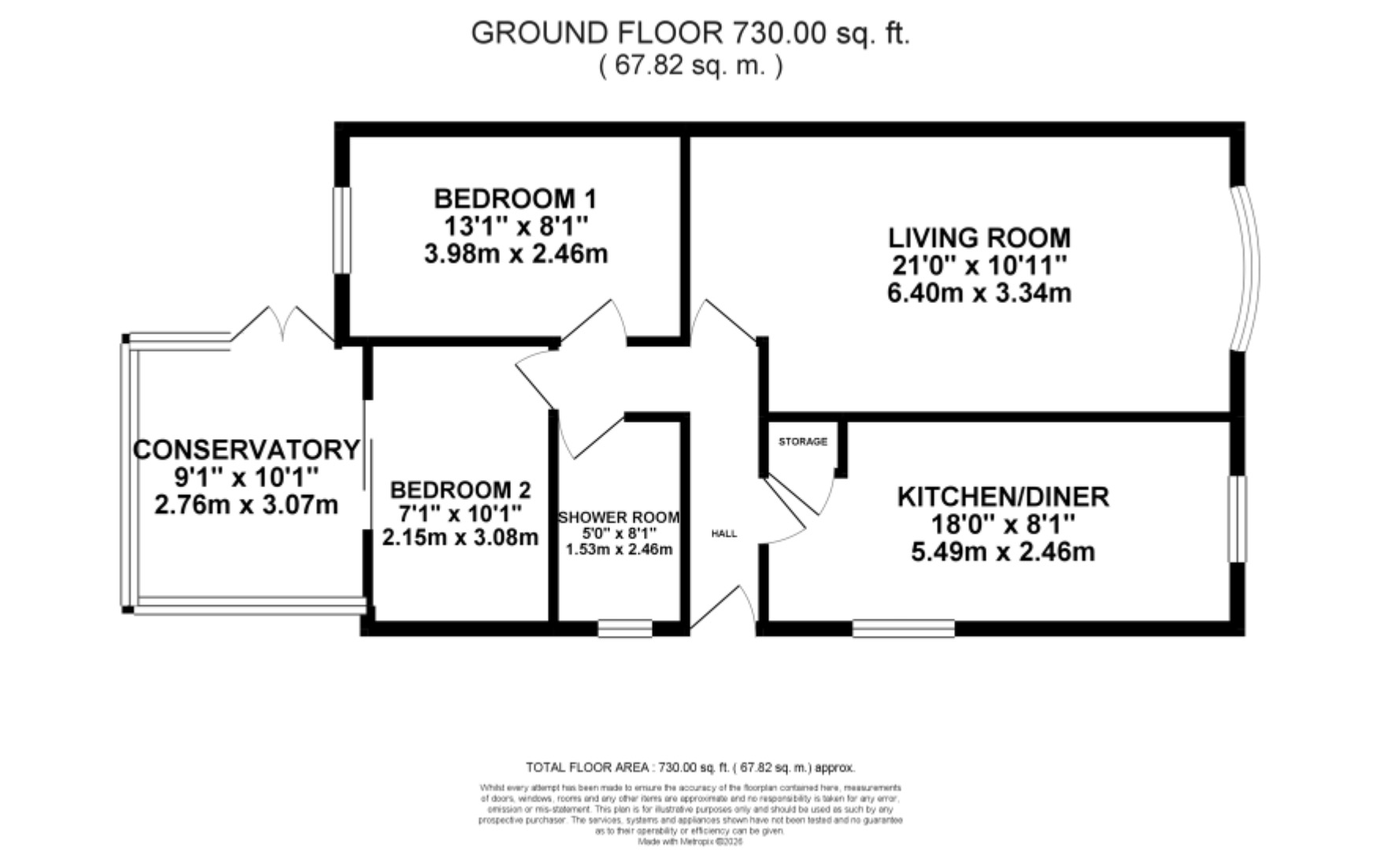2. Two generously sized double bedrooms, one of which offering bright access into the conservatory through glazed sliding doors. Upgraded shower room with walk-in rainfall shower.