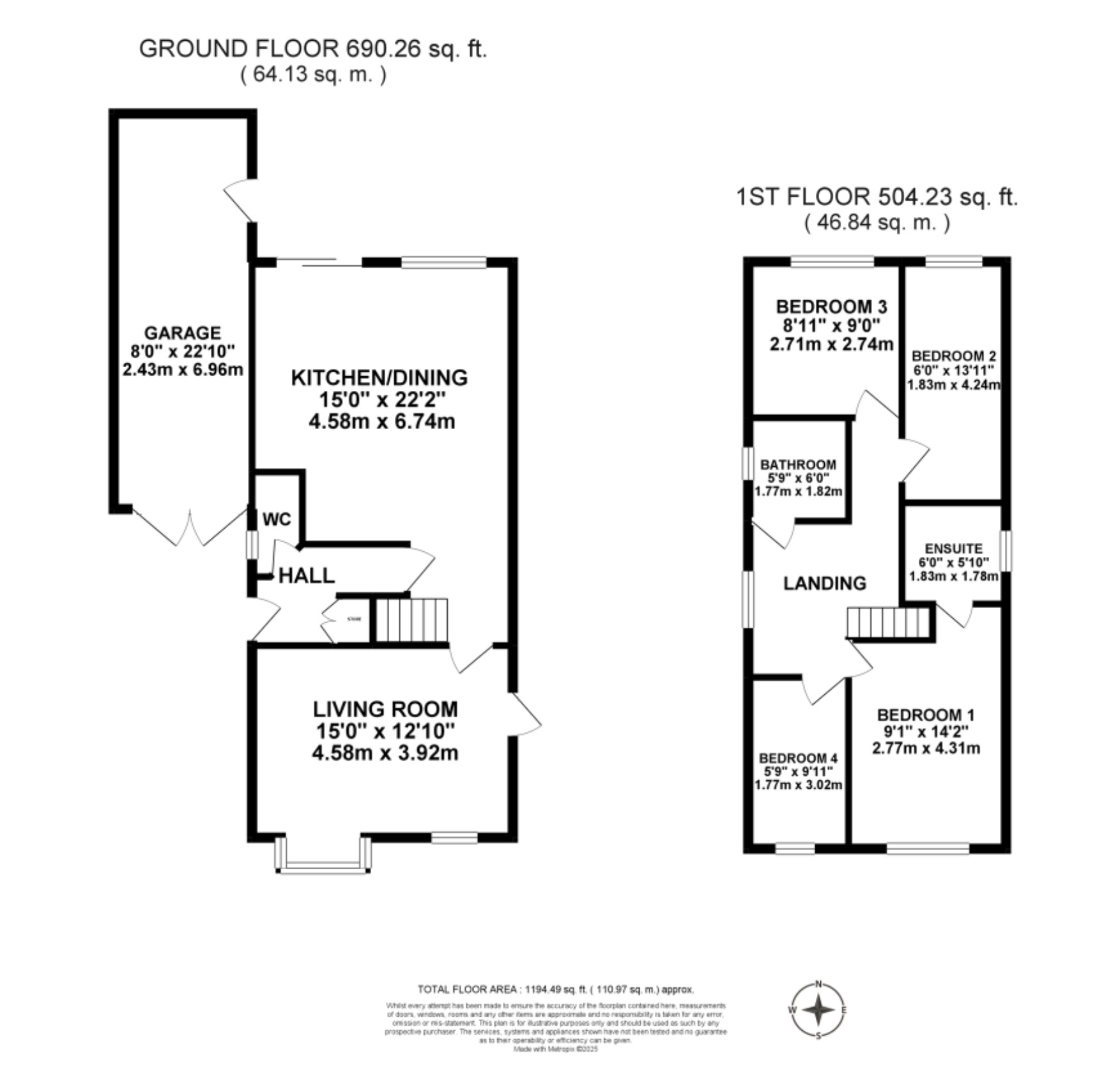 - Four bedrooms including a master with en suite shower room, two further doubles and a single - perfect for growing families. The family bathroom offers a bath/shower, sink, and W/C.